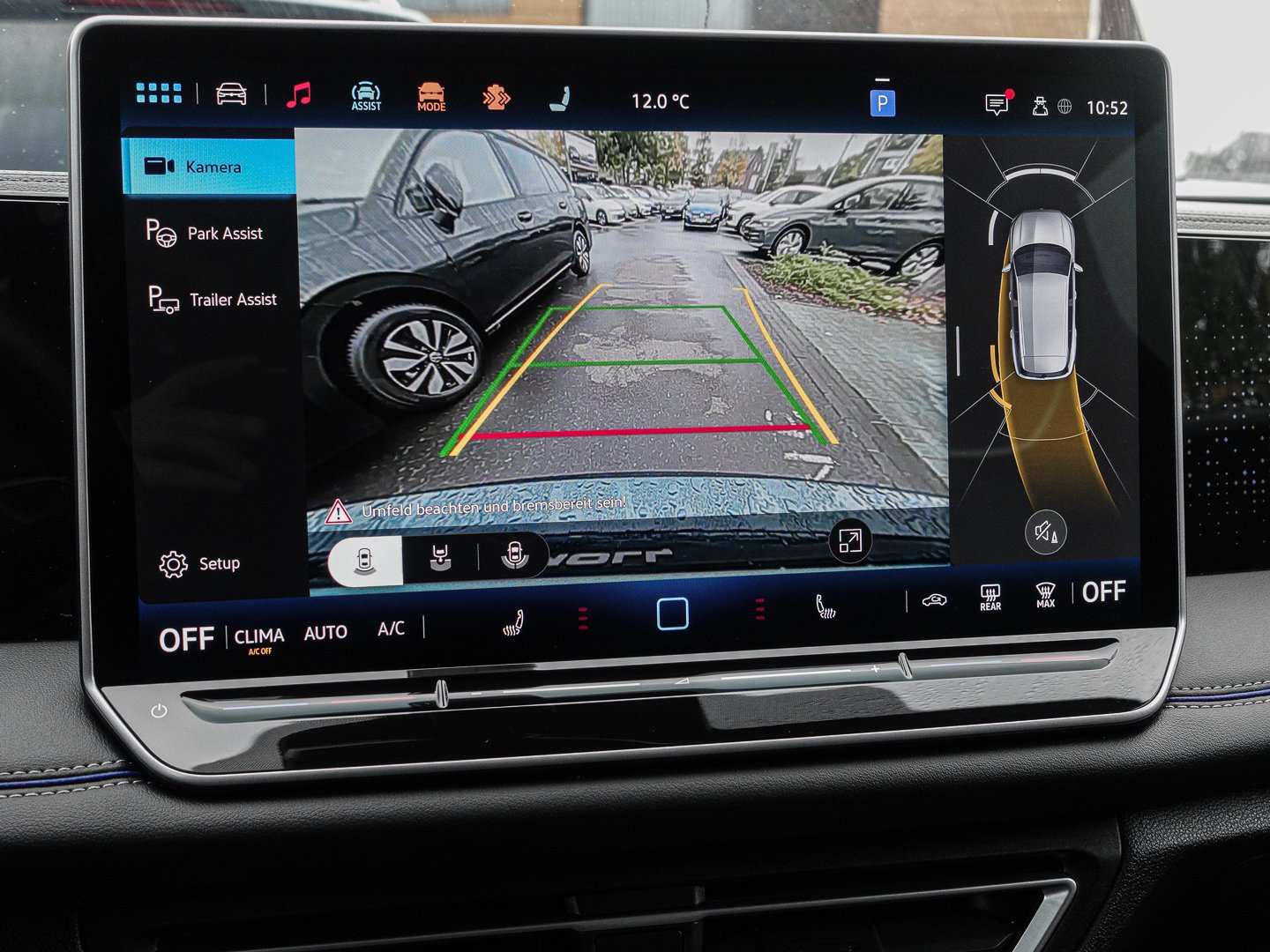Klimaautomatik, QR9 Verkehrszeichenerkennung, 6I1 Spurhalteassistent Lane Assist, KA2 Rückfahrkamera Rear View, 8G1 Fernlichtassistent Light Assist, 8T3 Automatische Distanzregelung ACC stop & go, 79H Spurwechselassistent Side Assist Ausparkassistent und Ausstiegswarnung, 8Q5 Leuchtweitenregulierung dynamisch mit dynamischem Kurvenfahrlicht, UH2 Elektronische Parkbremse inkl. Auto-Hold-Funktion, 7K1 Reifenkontrollanzeige, 8J5 Notbremsassistent Front Assist mit Fußgänger- und Radfahrererkennung, FT4 Memory-Funktion für Parkassistent, LT2 Geschwindigkeitsbegrenzer mit vorausschauender Regelung, 9I5 Fahrlichtschaltung automatisch mit LED-Tagfahrlicht sowie Begrüßungs- und Verabschiedungslicht