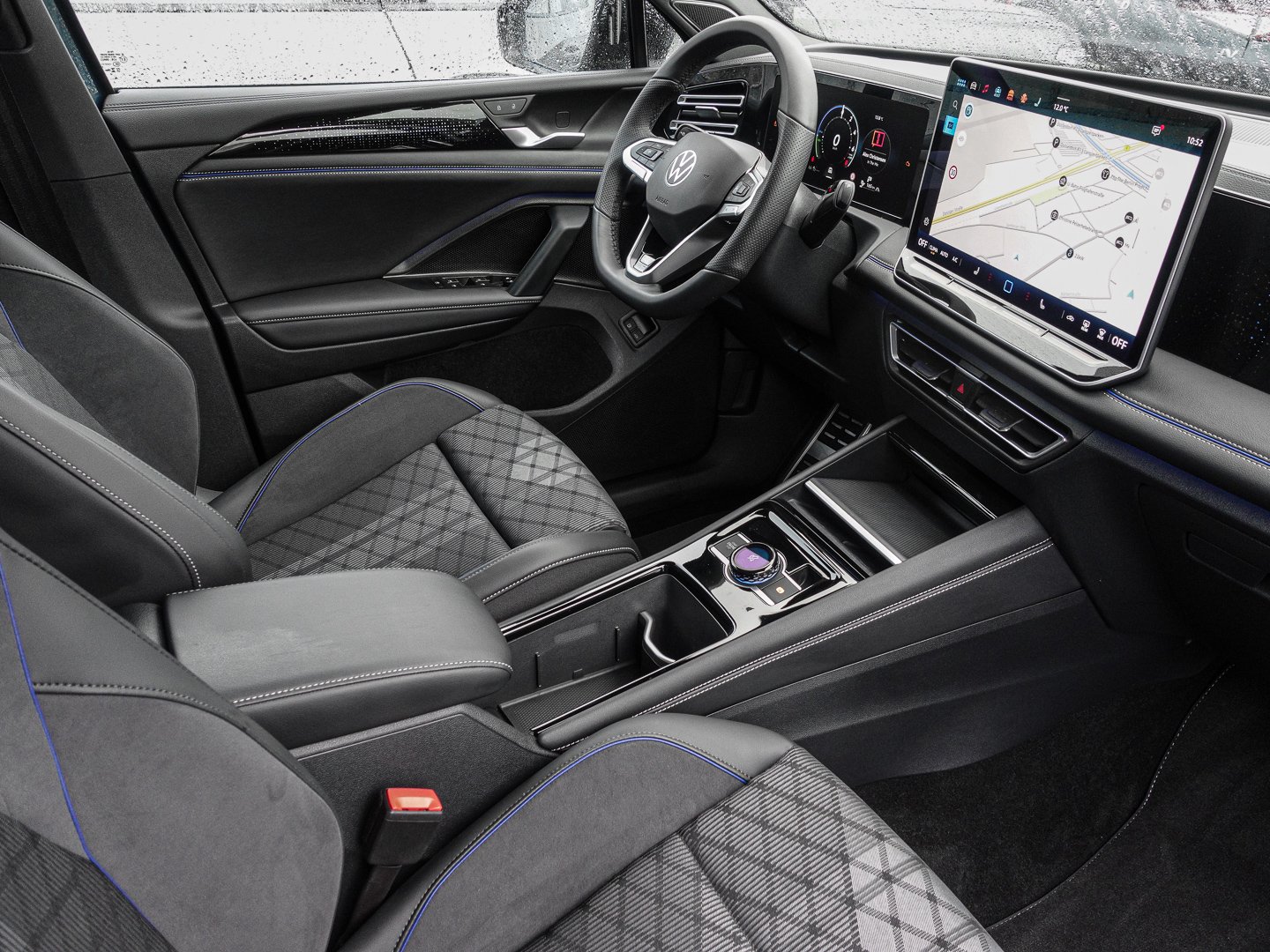 5TT Dekor-Set R-Line durchleuchtet, QQ9 Ambientebeleuchtung 30-farbig in der Instrumententafel sowie in den Türen Dekoreinlagen vorn durchleuchtet, 3GD Gepäckraumboden ebene Ladefläche mit Verzurrösen, 4A4 Vordersitze und äußere Rücksitze beheizbar Sitzfläche und -lehne getrennt einstellbar, F42 4 Leichtmetallräder Coventry 8.5 J x 19 in Schwarz Volkswagen R, 6C4 Kopf- und Seitenairbags vorn und hinten, DE3 4-Zylinder-Ottomotor 1.5 L/110 KW TSI Hybrid Grundmotor ist: T5F/T1C/T2Y/TU6/T2N/T0C, 6XQ Außenspiegel elektrisch einstell- anklapp- und beheizbar mit Memory-Funktion, PE8 Komfortpaket inkl. Park Assist Pro