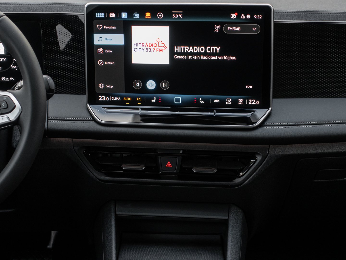 9WJ App-Connect Wireless für Apple CarPlay und Android Auto, QV3 Digitaler Radioempfang DAB+, 7UX Vorbereitet für spätere Freischaltung: Navigationssystem, 8DG Infotainment-System mit 32.7 -cm-Display (12.9 Zoll), 9ZX Telefonschnittstelle, YOS Vorbereitet für VW Connect und VW Connect Plus, U9G 2 USB-C-Schnittstellen vorn, NZ4 Notruf-Service