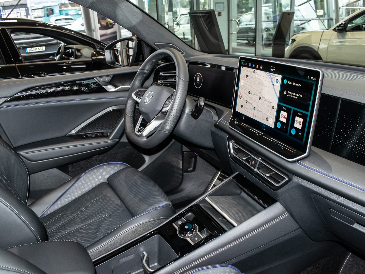 Kunstleder, L0L Linkslenker, Q4H Sport-Komfortsitze vorn, 3CX Netztrennwand, 4L6 Innenspiegel automatisch abblendend, 8I6 Lendenwirbelstützen vorn pneumatisch einstellbar, VL1 Fußgängerschutzmaßnahmen erweitert, 2PT Multifunktions-Sportlenkrad in Leder beheizbar mit Schaltwippen, 4ZD Zierleisten in Schwarz hochglänzend an den Seitenfenstern, 6E3 Mittelarmlehne vorn, QQ9 Ambientebeleuchtung 30-farbig, 4D8 Vordersitze mit Massageprogrammen und aktiver Klimatisierung, 3D2 Mittelkonsole gepolstert, -lehne asymmetrisch geteilt umklappbar, 7J2 Digital Cockpit Promehrfarbig, KH7 Klimaanlage Air Care Climatronic mit Aktiv-Kombifilter, Insert in Kunstleder, 2J2 Stoßfänger im R-Line -Styling