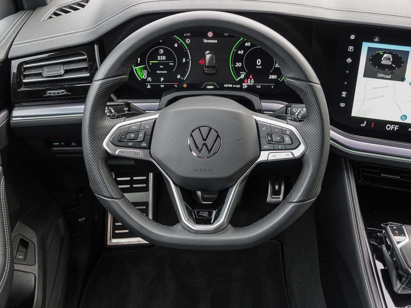 9WJ App-Connect Wireless für Apple CarPlay und Android Auto, EM2 Ablenkungs- und Müdigkeitserkennung, NZ4 Notruf-Service Laufzeit 10 Jahre ab Erstauslieferung Voraussetzung: Verfügbarkeit benötigter Mobilfunknetze, 4ZD Zierleisten in Schwarz hochglänzend an den Seitenfenstern, 0JK Gewichtsklasse Vorderachse Gewichtsbereich 10, 4F2 Schlüsselloses Schließ- und Startsystem Keyless Access mit SAFE-Verriegelung, YOS Vorbereitet für VW Connect und VW Connect Plus, 0P6 Abgas-Endrohr links und rechts, 3D3 Mittelkonsole in Schwarz hochglänzend Einfassung in Aluminium Dark Anodized, 7IG Fahrzeugklassen-Differenzierung -760, 7TL Dekoreinlagen in Aluminum dunkel gebürstet 45 für Instrumententafel und Türverkleidungen, 8VQ LED-Rückleuchten dunkelrot mit Begrüßungs- und Verabschiedungslicht Volkswagen Logo hinten beleuchtet, I8Z Navigationssystem Discover Pro Max, N5V Sitzmittelbahnen und -wangen der Vorder- und äußeren Rücksitzplätze in Leder Varenna R-Line-Logo vorn, PCE Connectivity-Paket inkl. App-Connect Wireless, U9E 3 USB-C-Schnittstellen vorn 2 USB-C-Ladebuchse an der Mittelkonsole hinten Ladeleistung bis zu 45 W, WLH Lederpaket Varenna für R-Line, 8IV IQ.LIGHT - HD-Matrix-Scheinwerfer mit Schlechtwetterlicht Begrüßungs- und Verabschiedungslicht, PF8 Assistenzpaket IQ.DRIVE, 1NE Radabdeckung Mitte Einsatz Dark Graphit, 3NS Rücksitzbank und -lehne asymmetrisch geteilt umklappbar längs verschiebbar Lehnenneigung einstellbar, 3GM Gepäckraumboden für ebene Ladefläche mit Verzurrösen und auf Schienen verschiebbarem Fixierband und -stange, F61 4 Leichtmetallräder Leeds 9.5 J x 21 in Schwarz Volkswagen R, PG1 Reisepaket, PJ6 Leeds 9.5 J x 21 in Schwarz Volkswagen R Reifen 285/40 R 21