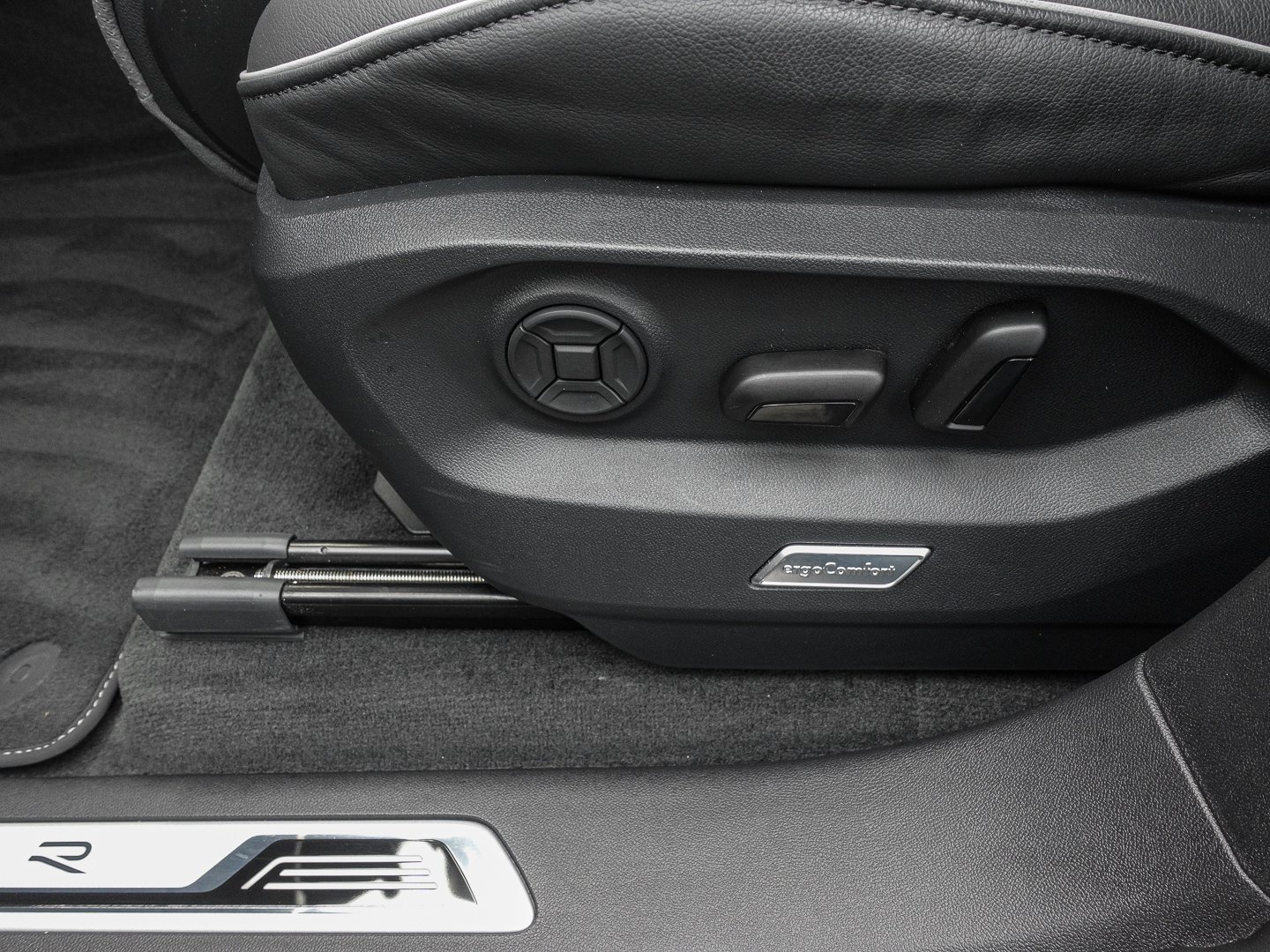 3CX Netztrennwand, L0L Linkslenker, VL1 Fußgängerschutzmaßnahmen erweitert, 8I6 Lendenwirbelstützen vorn pneumatisch einstellbar, 6E3 Mittelarmlehne vorn, 2PT Multifunktions-Sportlenkrad in Leder beheizbar mit Schaltwippen, 3PN Vordersitze elektrisch einstellbar mit Memory-Funktion und längs verschiebbarer Oberschenkelauflage, 3U7 Gepäckraumabdeckung mit elektrischer Öffnung, 9S8 Active Info Display mehrfarbig verschiedene Info-Profile wählbar, 6D1 Mittelarmlehne hinten mit 2 Becherhaltern, 9AD Klimaanlage Air Care Climatronic mit Aktiv-Kombifilter und 2-Zonen-Klimatisierung, PA5 Ambientepaket für R-Line, QQ2 Ambientebeleuchtung 30-farbig, WB3 Memory-Paket Premium