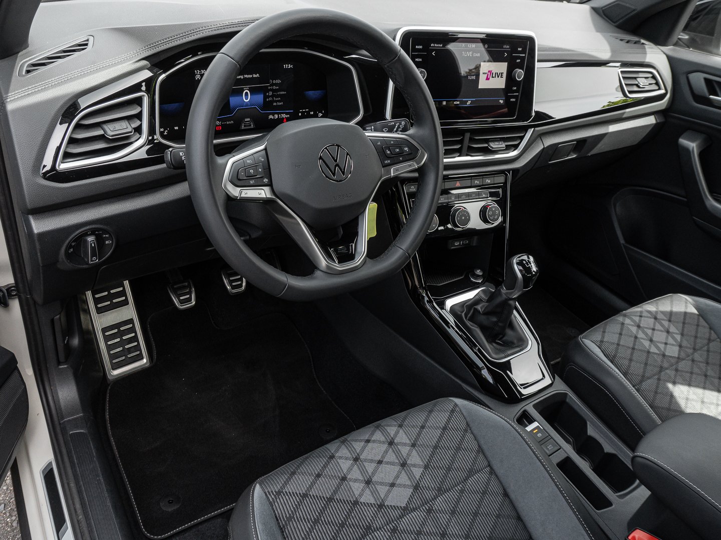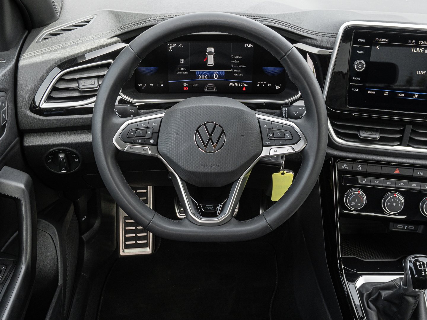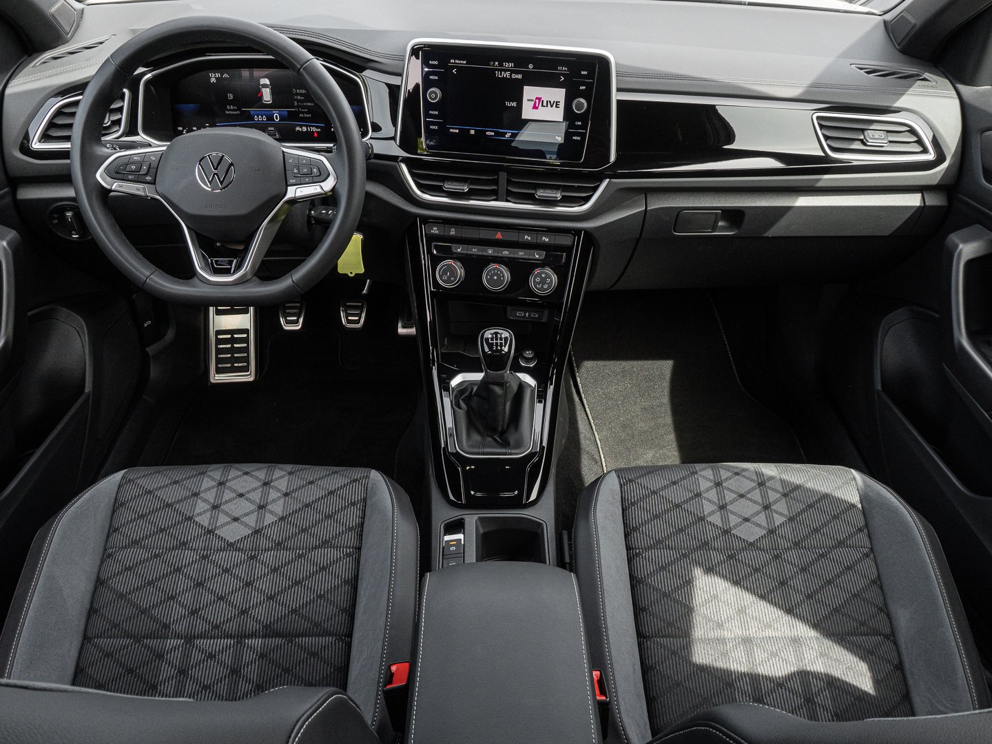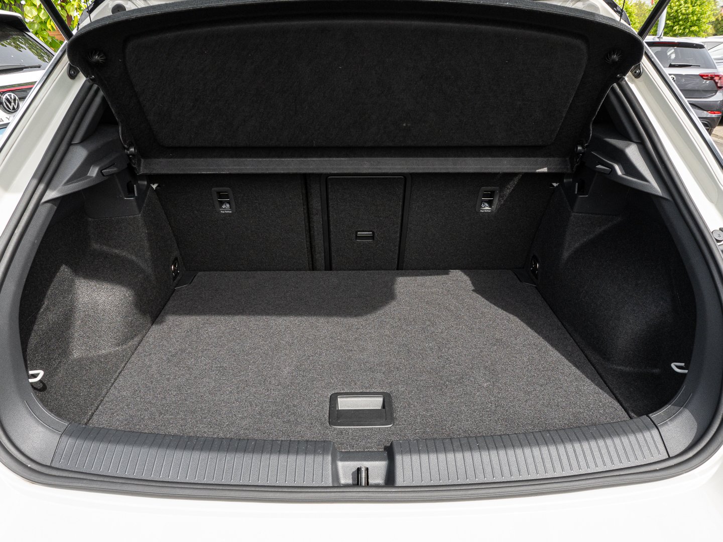 L0L Linkslenker, Q4H Sport-Komfortsitze vorn, 4L6 Innenspiegel automatisch abblendend, 4GF Frontscheibe in Verbundsicherheitsglas wärmedämmend, 7P4 Lendenwirbelstützen vorn, A9I R-Line Ausstattung, 7J1 Digital Cockpit mehrfarbig verschiedene Info-Profile wählbar, 2FD Multifunktionslenkrad in Leder, 3NU Rücksitzlehne asymmetrisch geteilt umklappbar mit Mittelarmlehne, 6E3 Mittelarmlehne vorn, QQ3 Ambientebeleuchtung weiß, 3H2 Beifahrersitzlehne komplett umklappbar, 5MY Dekoreinlagen Lava Stone Black für Instrumententafel Mittelkonsole und Türverkleidungen vorn, KH6 Klimaanlage mit Aktiv-Kombifilter, 4KC Wärmeschutzverglasung grün seitlich undhinten, 2JX Stoßfänger im R-Line -Styling, N0V Sitzmittelbahnen der Vordersitze und deräußeren Rücksitzplätze in Stoff R-Line -innenwangen in ArtVelours