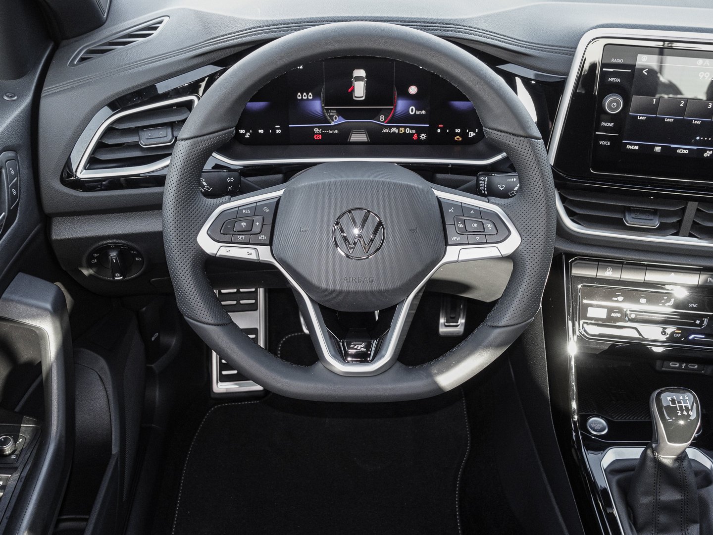 L0L Linkslenker, Q4H Sport-Komfortsitze vorn, 4L6 Innenspiegel automatisch abblendend, 3GN Gepäckraumboden in 2 Höhen einstellbar für ebene Ladefläche, 7P4 Lendenwirbelstützen vorn, 9AK Klimaanlage Air Care Climatronic mit Aktiv-Kombifilter und 2-Zonen-Temperaturregelung, 3NU Rücksitzlehne asymmetrisch geteilt umklappbar mit Mittelarmlehne, 6E3 Mittelarmlehne vorn, QQ3 Ambientebeleuchtung weiß, 2JX Stoßfänger im R-Line-Styling, 3H2 Beifahrersitzlehne komplett umklappbar, N0V Sitzmittelbahnen der Vordersitze und deräußeren Rücksitzplätze in Stoff R-Line, 7J1 Digital Cockpitmehrfarbig, wärmedämmend, Mittelkonsole und Türverkleidungen vorn, 2PD Multifunktions-Sportlenkrad in Leder
