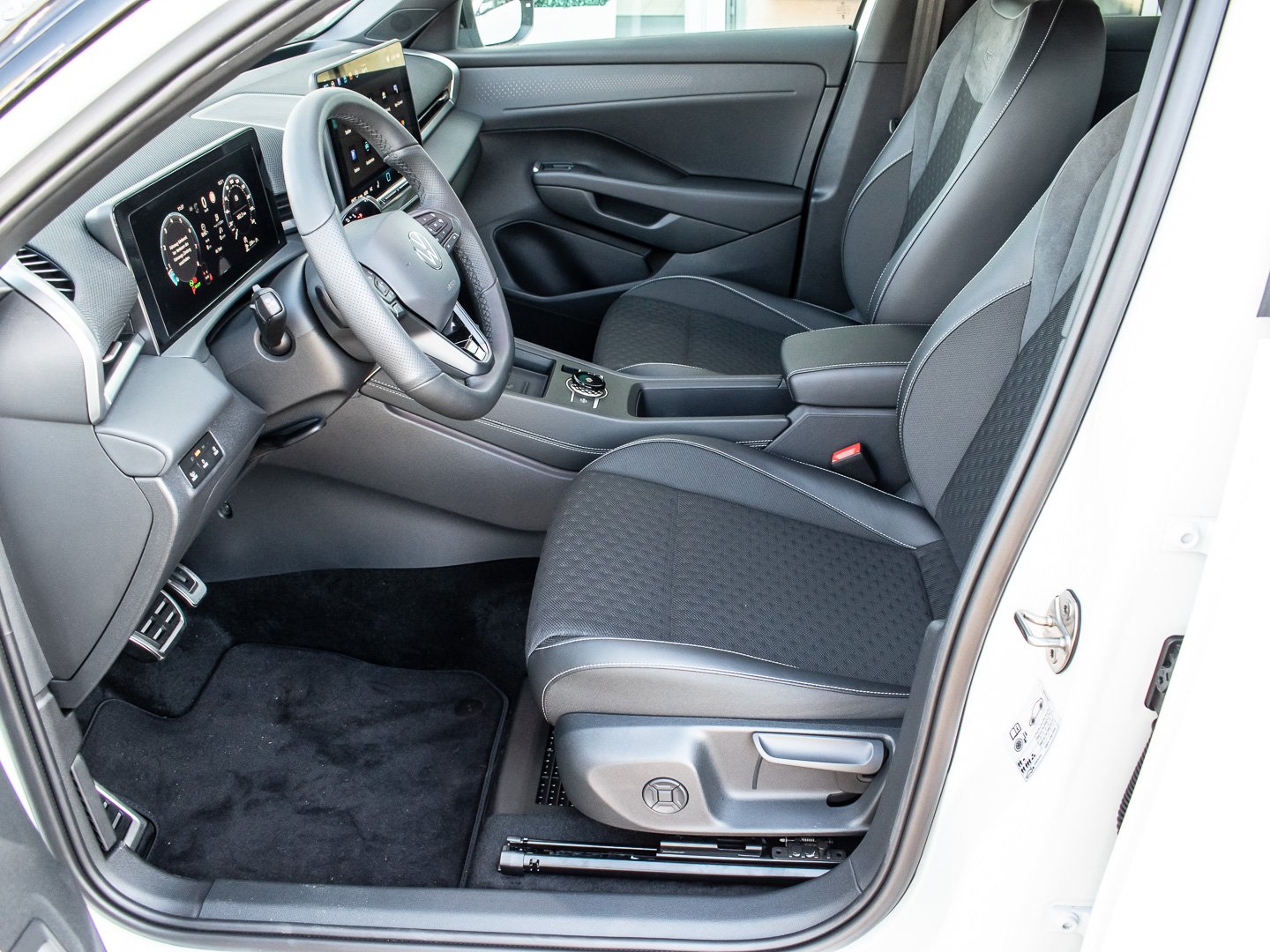 Kunstleder, L0L Linkslenker, Q4H Sport-Komfortsitze vorn, 4L6 Innenspiegel automatisch abblendend, 8I6 Lendenwirbelstützen vorn pneumatisch einstellbar, 3GN Gepäckraumboden in 2 Höhen einstellbar für ebene Ladefläche, 2PT Multifunktions-Sportlenkrad in Leder beheizbar mit Schaltwippen, 6E3 Mittelarmlehne vorn, QQ9 Ambientebeleuchtung 30-farbig, 7J2 Digital Cockpit Promehrfarbig, KH7 Klimaanlage Air Care Climatronic mit Aktiv-Kombifilter, wärmedämmend, 3NT Rücksitzbank ungeteilt, Insert in Kunstleder, 2JX Stoßfänger im R-Line -Styling