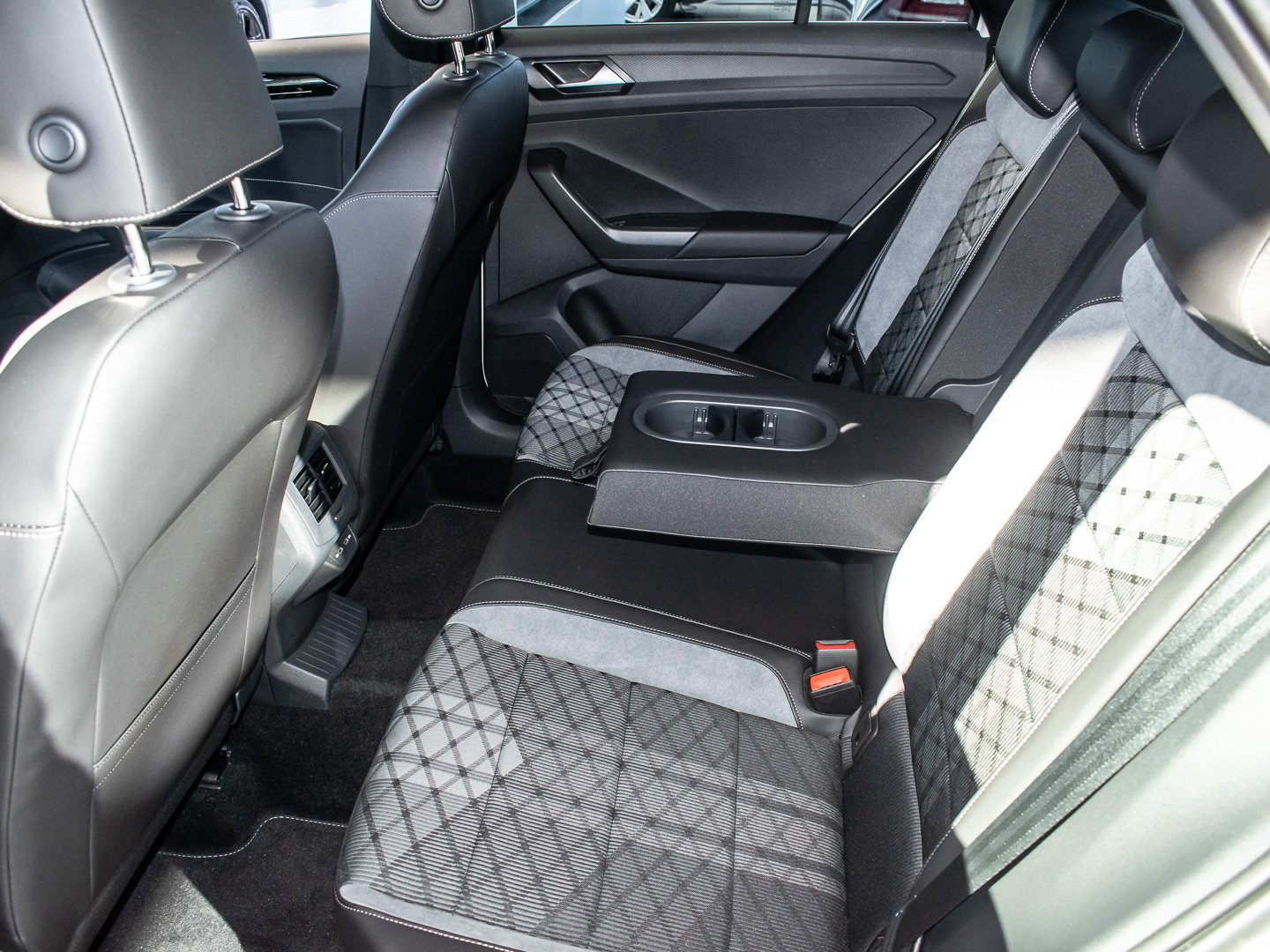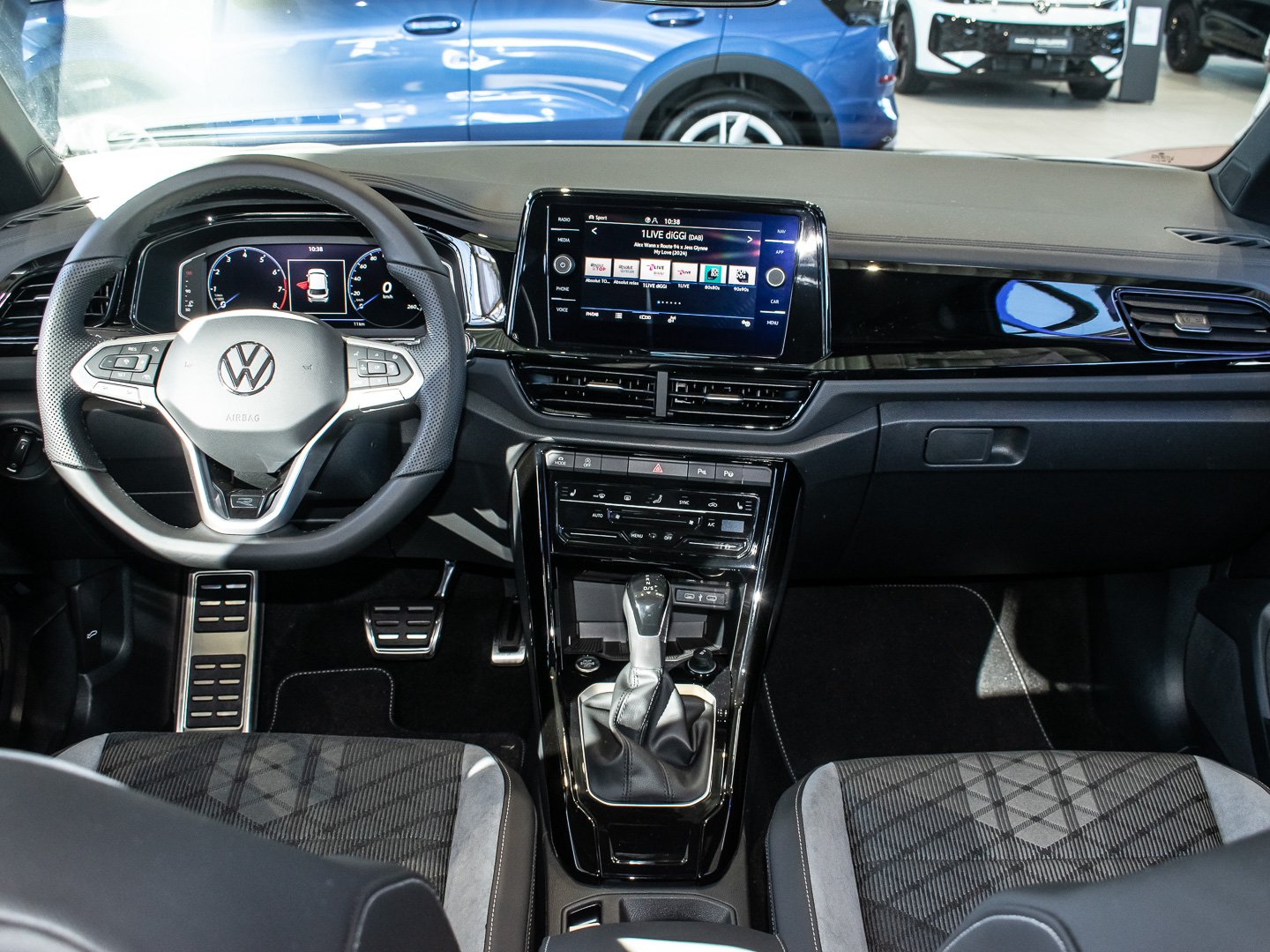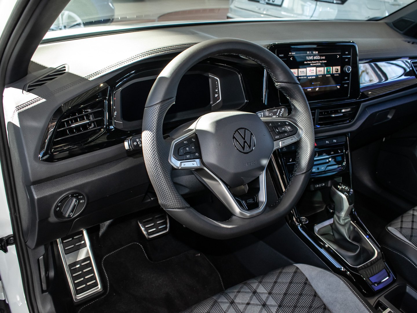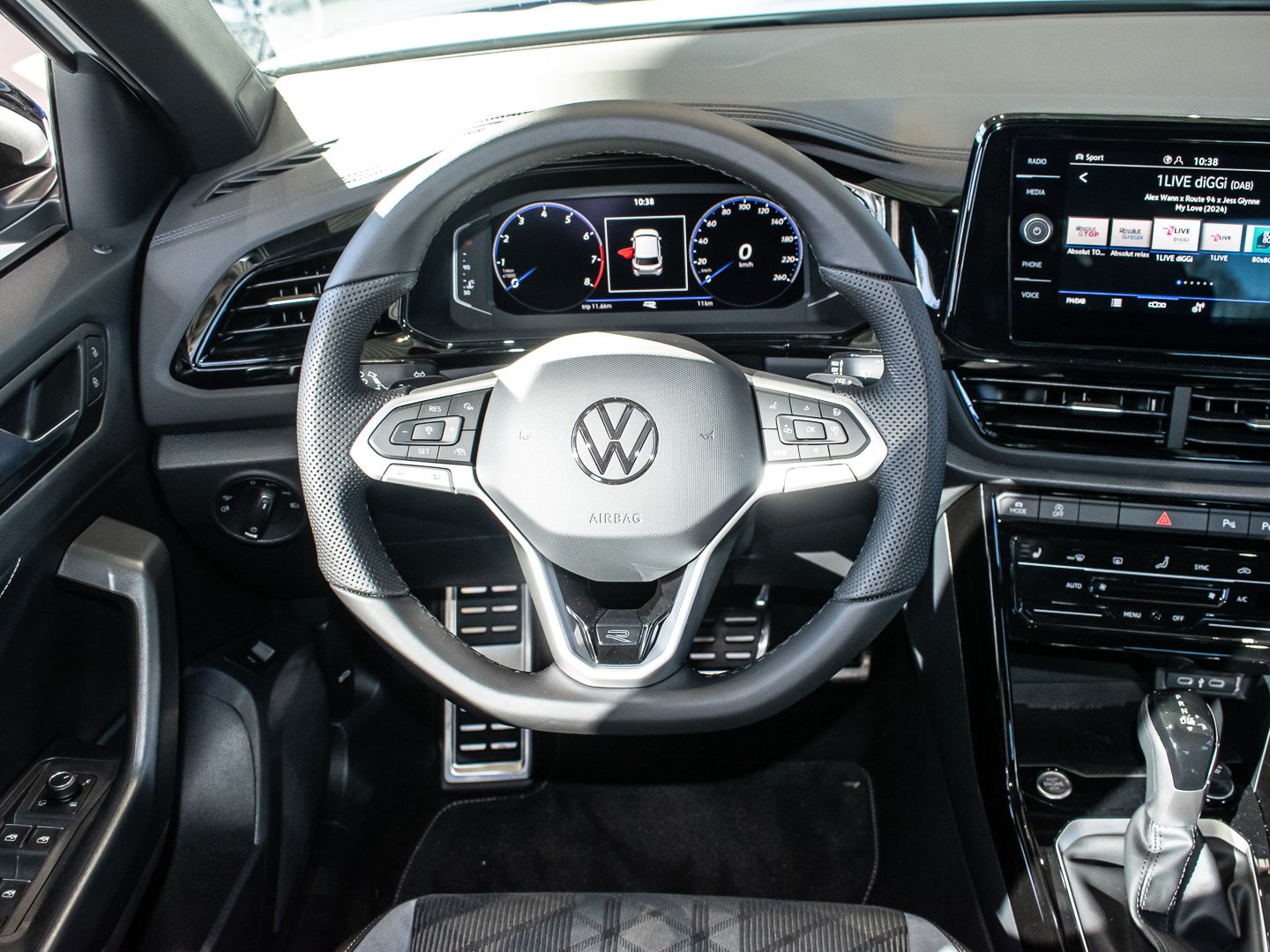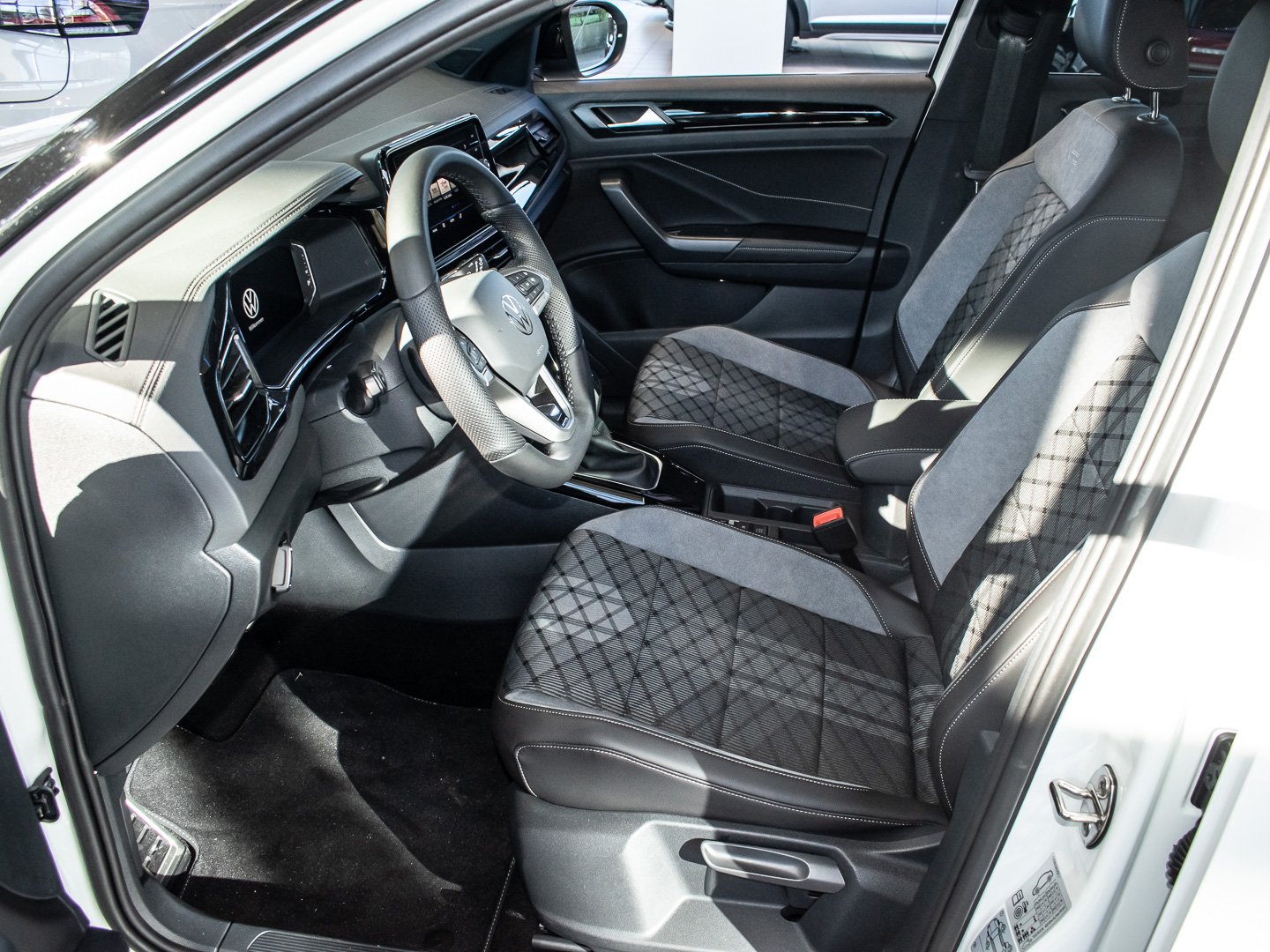 Kunstleder, L0L Linkslenker, Q4H Sport-Komfortsitze vorn, 4L6 Innenspiegel automatisch abblendend, 3GN Gepäckraumboden in 2 Höhen einstellbar für ebene Ladefläche, 7P4 Lendenwirbelstützen vorn, 2PT Multifunktions-Sportlenkrad in Leder beheizbar mit Schaltwippen, 9AK Klimaanlage Air Care Climatronic mit Aktiv-Kombifilter und 2-Zonen-Temperaturregelung, 3NU Rücksitzlehne asymmetrisch geteilt umklappbar mit Mittelarmlehne, 6E3 Mittelarmlehne vorn, QQ3 Ambientebeleuchtung weiß, 3H2 Beifahrersitzlehne komplett umklappbar, wärmedämmend, Mittelkonsole und Türverkleidungen vorn, 9S0 Digital Cockpit Promehrfarbig, Insert in Kunstleder, 2JX Stoßfänger im R-Line -Styling