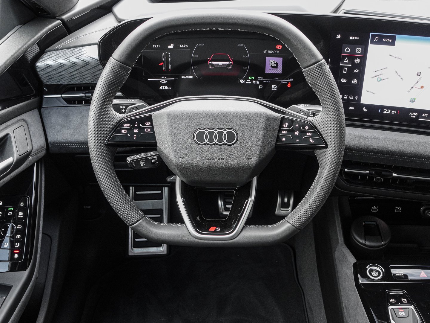 1J2 Projektionsleuchte in den Außenspiegeln, 1XY Sportlederlenkrad 3-Speichen oben und unten abgeflacht mit Multifunktion und Schaltwippen, 2F1 Digitaler Schlüssel, 4G3 Ausweichassistent und Abbiegeassistent vorn, 4GQ Wärmeschutz- und Akustikverglasung Frontscheibe, 4ZP Fensterzierleisten und Anbauteile dunkel, 5JJ Außenspiegel Fahrerseite asphärisch Beifahrerseite asphärisch, 5MV Dekoreinlagen Aluminium matt gebürstet mit Linearprägung anthrazit, 5P2 Insassenerkennung im Fond, 79H Spurwechsel- und Ausstiegswarnung Querverkehrassistent hinten und Abbiegeassistent hinten, 7W7 Proaktiver Insassenschutz Front Seite und Heck, 8G4 Matrix-Funktion, 99I Assistenzpaket Schutz- und Warnsysteme plus, 9X0 Einparkhilfe plus mit Distanzanzeige, 9ZE Telefonablage mit induktiver Ladefunktion und Mobilfunk-Koppelantenne, EM2 Aufmerksamkeits- und Müdigkeitserkennung, FP1 FOD Funktionen online verfügbar, GJ6 Adaptiver Fahrassistent plus, GS5 Akzentflächen und Bedientasten schwarz glänzend, JH1 MMI Beifahrerdisplay, JX1 Querverkehrassistent vorn, LT2 Verkehrszeichenbasierter Geschwindigkeitsbegrenzer, PAH Exterieurpaket schwarz, PY2 Exterieur S line, PYH MMI experience pro, U9E USB-Schnittstellen mit erhöhter Ladeleistung, 2C5 Lenkradeinstellung manuell, 8VP LED-Heckleuchten pro, GA2 Komfort-Standklimatisierung, 275/35 R21, 7HB Instrumententafel-Oberseite schwarz mit Kontrastnaht, 8IY LED-Scheinwerfer plus, 98G Klimatisierungspaket Winter, J9G Hochvolt-Batterie 100 kWh (brutto), LH3 Maximal mögliche Ladeleistung (DC), LW1 Digitale Lichtsignaturen, PYE Klimatisierungspaket Winter, Q11 Reifen 245/40 R21 100Y XL vorn Reifen 275/35 R21 103Y XL hinten, UD7 Leuchtende Audi Ringe hinten, VS1 Vorbereitung intelligente Ladefunktion, PQB Tech plus, 3FP Panorama-Glasdach mit schaltbarer Transparenz, PWN Interieur S mit Sportsitzen Mikrofaser Dinamica/Leder-Kombination schwarz, 58S Räder Audi Sport 5-Arm-Dynamik schwarz metallic 8.5 J, 9.5 J x 21 Reifen 245/40, M21 Elektro-Motor: Höchste konsolidierte Nutzleistung/Nutzleistung 270 KW Grundmotor ist: T39, N2S Mikrofaser Dinamica/Leder-Kombination mit Wasserfallsteppung und S-Prägung, T39 Elektro-Motor Aggr.0EL.D