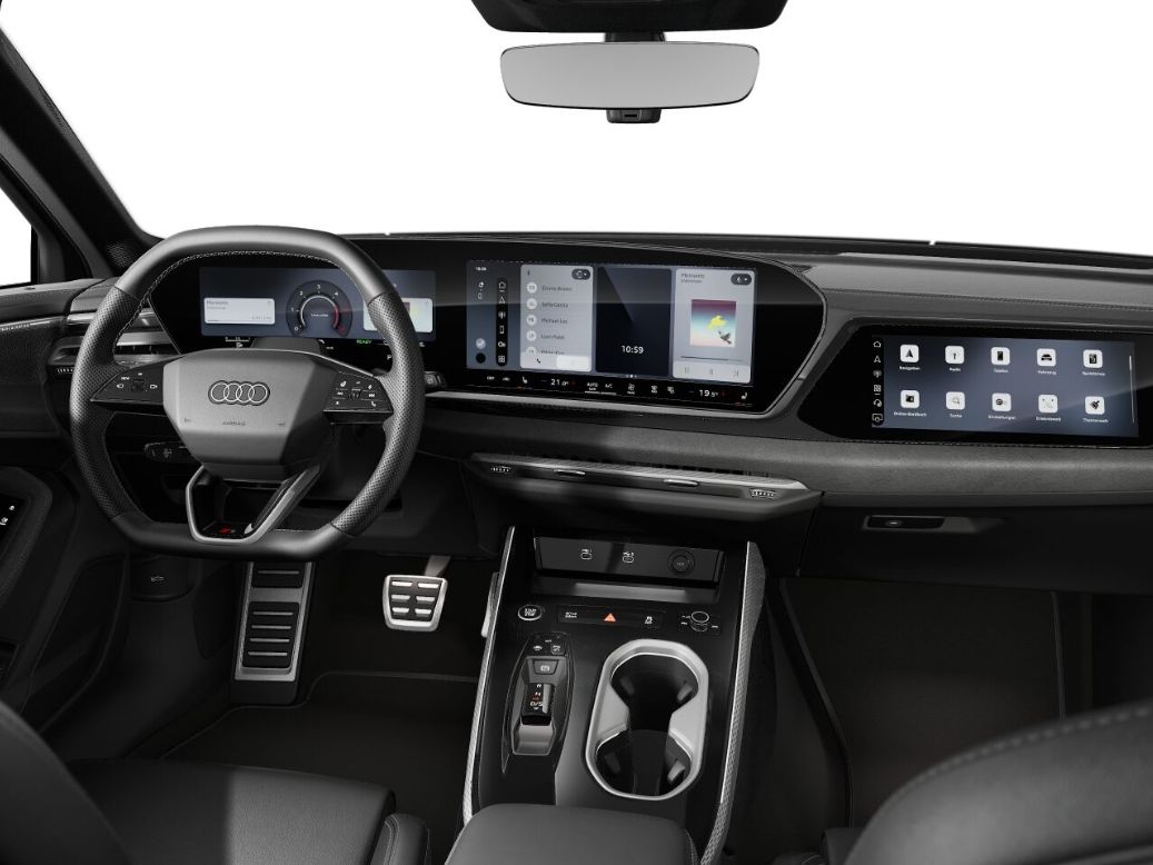 Stoff, L0L Linkslenker, 3CX Netztrennwand, 4L6 Innenspiegel automatisch abblendend, 3L5 Vordersitze elektrisch einstellbar, 9S9 Audi virtual cockpit plus, Q1D Sportsitze vorn, 4UF Airbags vorn Beifahrerairbag deaktivierbar, 6E3 Komfortmittelarmlehne vorn, 7P1 4-Wege-Lendenwirbelstütze für die Vordersitze, IU6 Audi Application Store und Smartphone-Interface, QJ1 Interieurapplikationen Aluminiumoptik, QQ2 Ambiente-Lichtpaket plus, K8D Variant/Avant, AI9 Lenkradheizung, 9AQ 4-Zonen-Komfortklimaautomatik