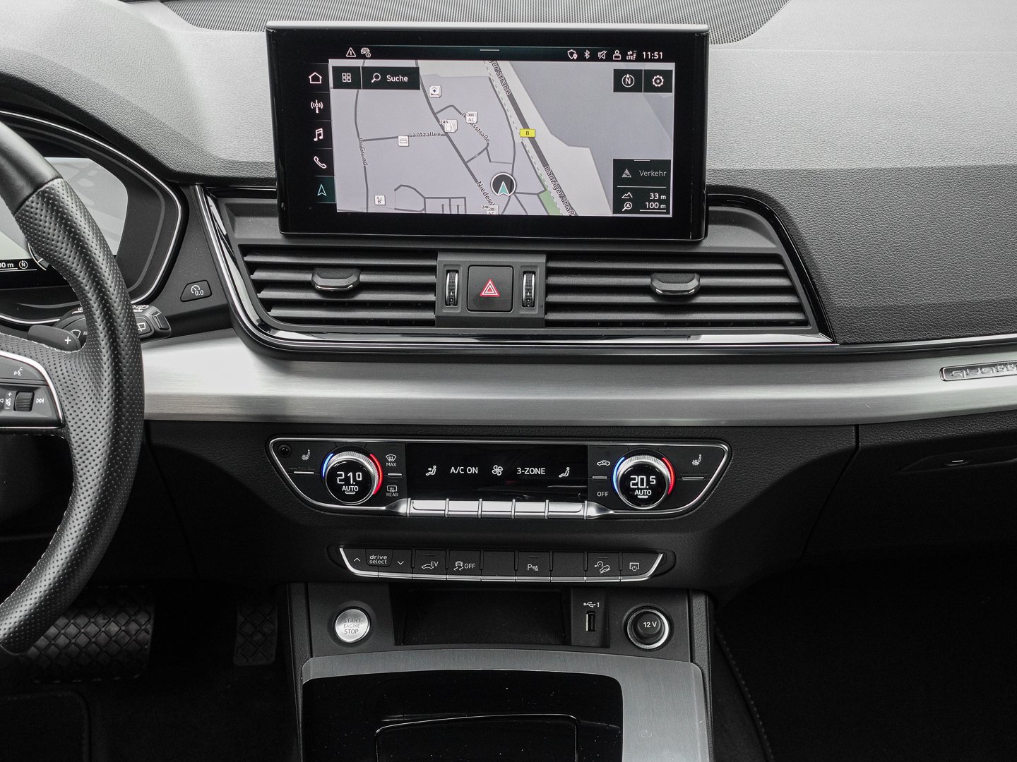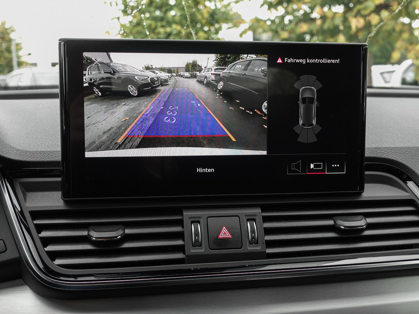 Klimaautomatik, KA2 Rückfahrkamera, 7K1 Reifendruck-Kontrollanzeige, QR9 Kamerabasierte Verkehrszeichenerkennung, 7X2 Einparkhilfe plus, UH2 Halteassistent, 6I1 Audi active lane assist, 8T8 Audi adaptive cruise control, 6K9 Audi pre sense city