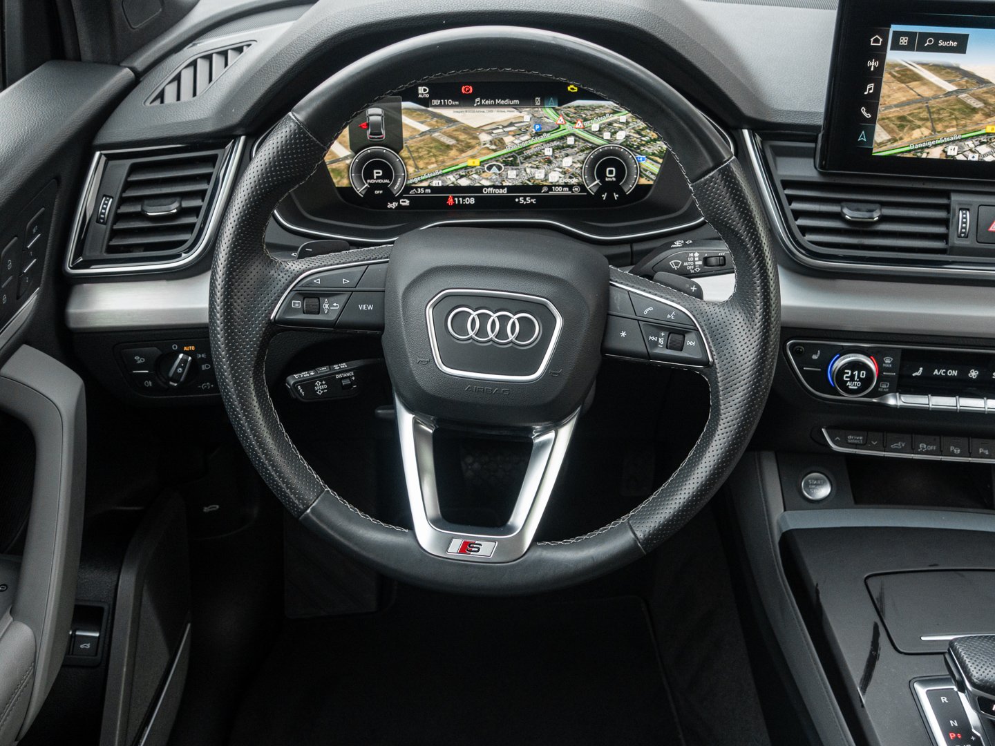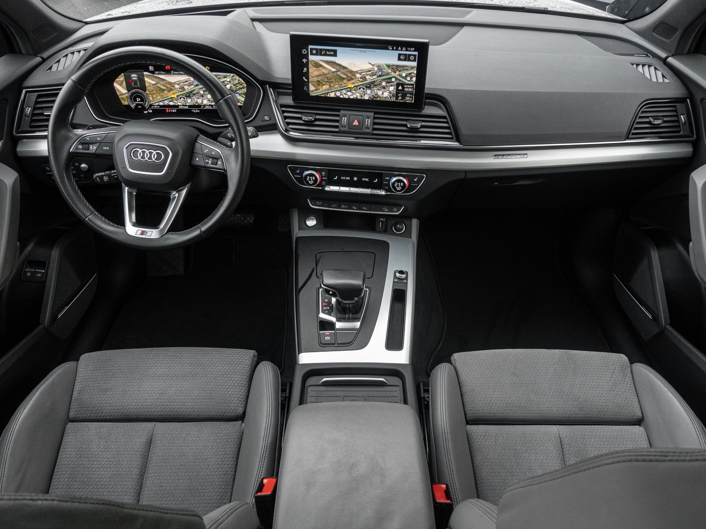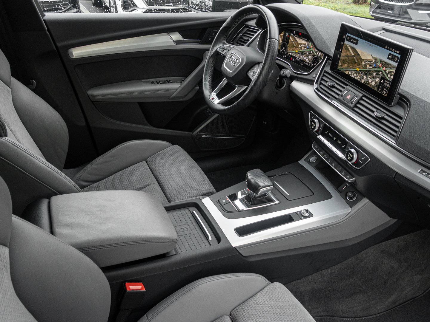 4GF Frontscheibe in Wärmeschutz- und Akustikverglasung, Q1D Sportsitze vorn, 4L6 Innenspiegel automatisch abblendend rahmenlos, 4UF Airbags vorn Beifahrerairbag deaktivierbar, 6E3 Komfortmittelarmlehne vorn, 7P1 4-Wege-Lendenwirbelstütze für die Vordersitze, L0L Linkslenker, QQ2 Ambiente-Lichtpaket plus, 9AQ 3-Zonen-Komfortklimaautomatik, 1XW Lederlenkrad 3-Speichen mit Multifunktion plus, VL1 Fußgängerschutzmaßnahmen erweitert, WQS Interieur S line, 3L4 Vordersitze elektrisch einstellbar mit Memory-Funktion für den Fahrersitz, 3CX Trennnetz, PV3 Vordersitze elektrisch einstellbar mit Memory-Funktion für den Fahrersitz und die Außenspiegel, N5K Mikrofaser Dinamica Frequenz/Leder- Kombination mit S-Prägung