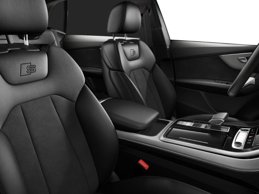 L0L Linkslenker, Teilleder, 3L5 Vordersitze elektrisch einstellbar, Q1D Sportsitze vorn, 4UF Airbags vorn Beifahrerairbag deaktivierbar, 7P1 4-Wege-Lendenwirbelstütze für die Vordersitze, 4L6 Innenspiegel automatisch abblendend rahmenlos, WQS S line Sportpaket, 1XP Lederlenkrad 3-Speichen mit Multifunktion Schaltwippen und Lenkradheizung, 3CX Trennnetz, 6E6 Komfortmittelarmlehne vorn, IU4 Audi Application Store und Smartphone-Interface, 4GF Wärmeschutzverglasung Frontscheibe, QQ1 Ambiente-Lichtpaket, 9AU 3-Zonen-Komfortklimaautomatik, N5K Mikrofaser Dinamica Frequenz/ Leder-Kombination mit S-Prägung, 3NE Rücksitzlehne geteilt umklappbar mit Lehnenneigungseinstellung