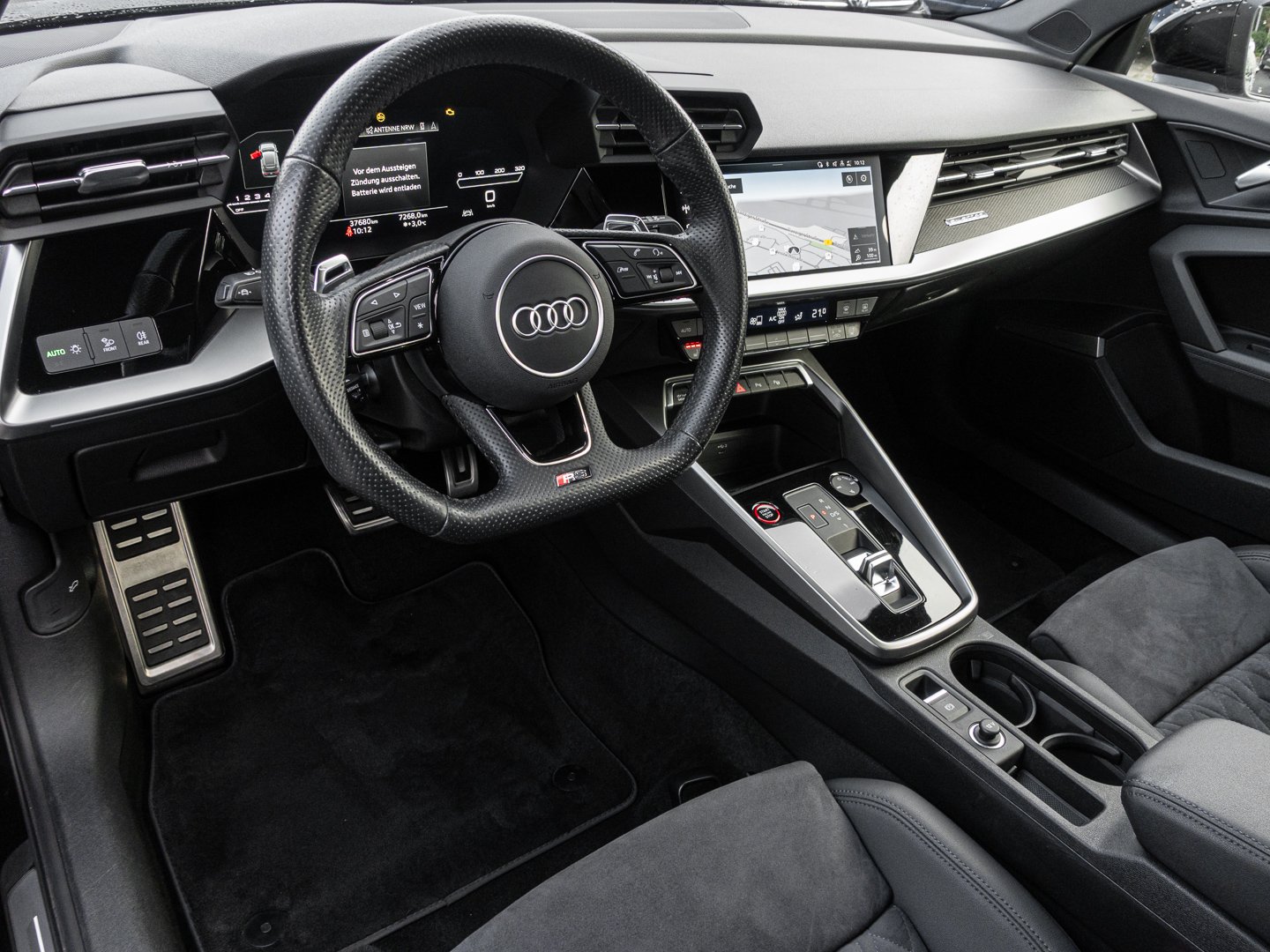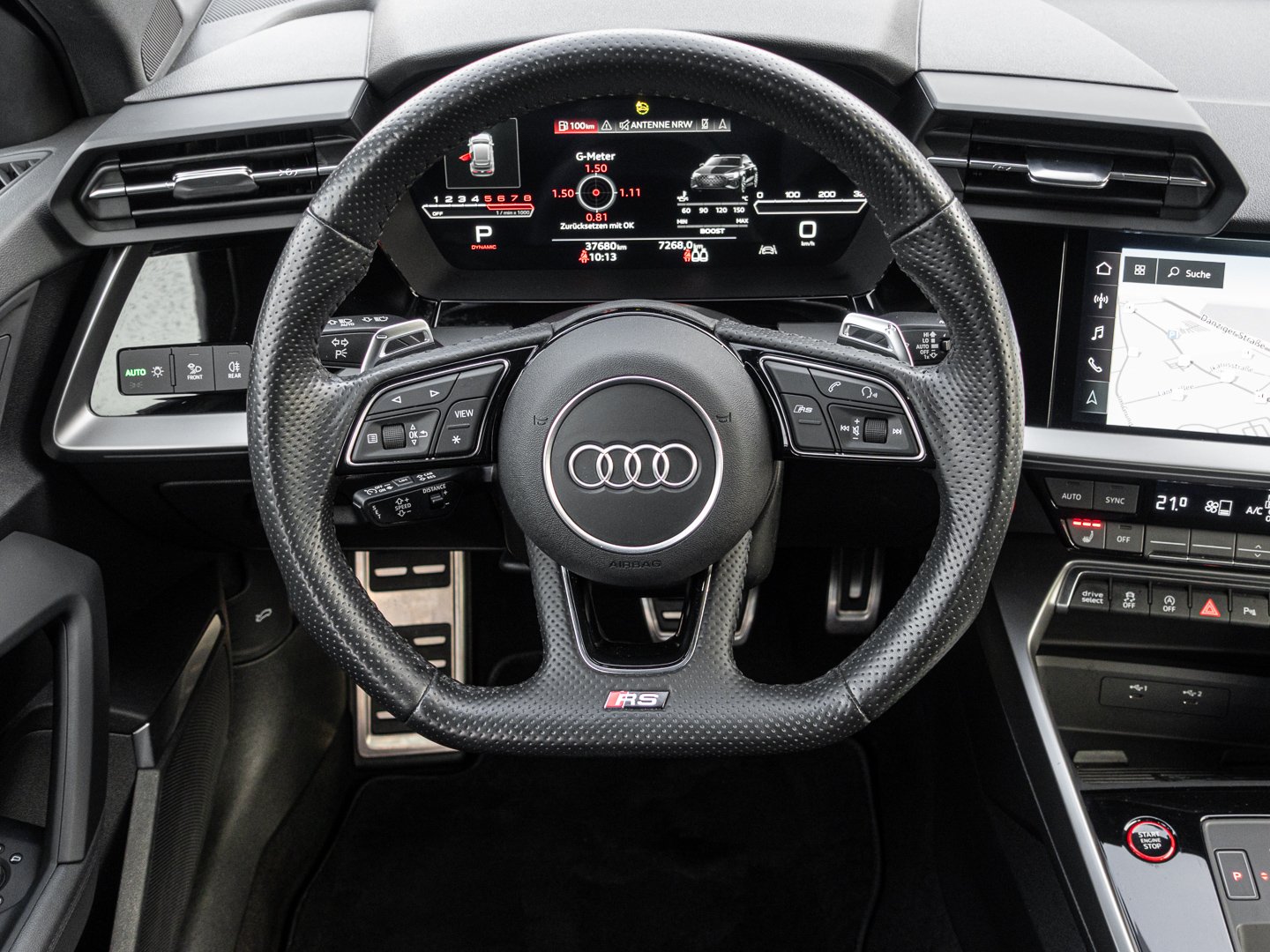 3L3 Vordersitze manuell einstellbar, 9AK 2-Zonen-Komfortklimaautomatik, Q1D Sportsitze vorn, 4L6 Innenspiegel automatisch abblendend rahmenlos, 4UF Airbags vorn Beifahrerairbag deaktivierbar, 7P1 4-Wege-Lendenwirbelstütze für die Vordersitze, L0L Linkslenker, QQ2 Ambiente-Lichtpaket plus, 3NT Rücksitzlehne geteilt umklappbar, 6E3 Mittelarmlehne vorn, 0P8 RS-Sportabgasanlage, 7J3 Audi virtual cockpit plus mit zusätzlichem RS-Layout, 4GH Frontscheibe in Akustikverglasung, 2PK Sportkontur-Lederlenkrad 3-Speichen unten abgeflacht mit Multifunktion plus und Schaltwippen, 5L1 RS-Exterieurumfänge in Schwarz matt, N7S Mikrofaser Dinamica/Kunstleder mono.pur 550-Kombination mit Rautensteppung und RS-Prägung