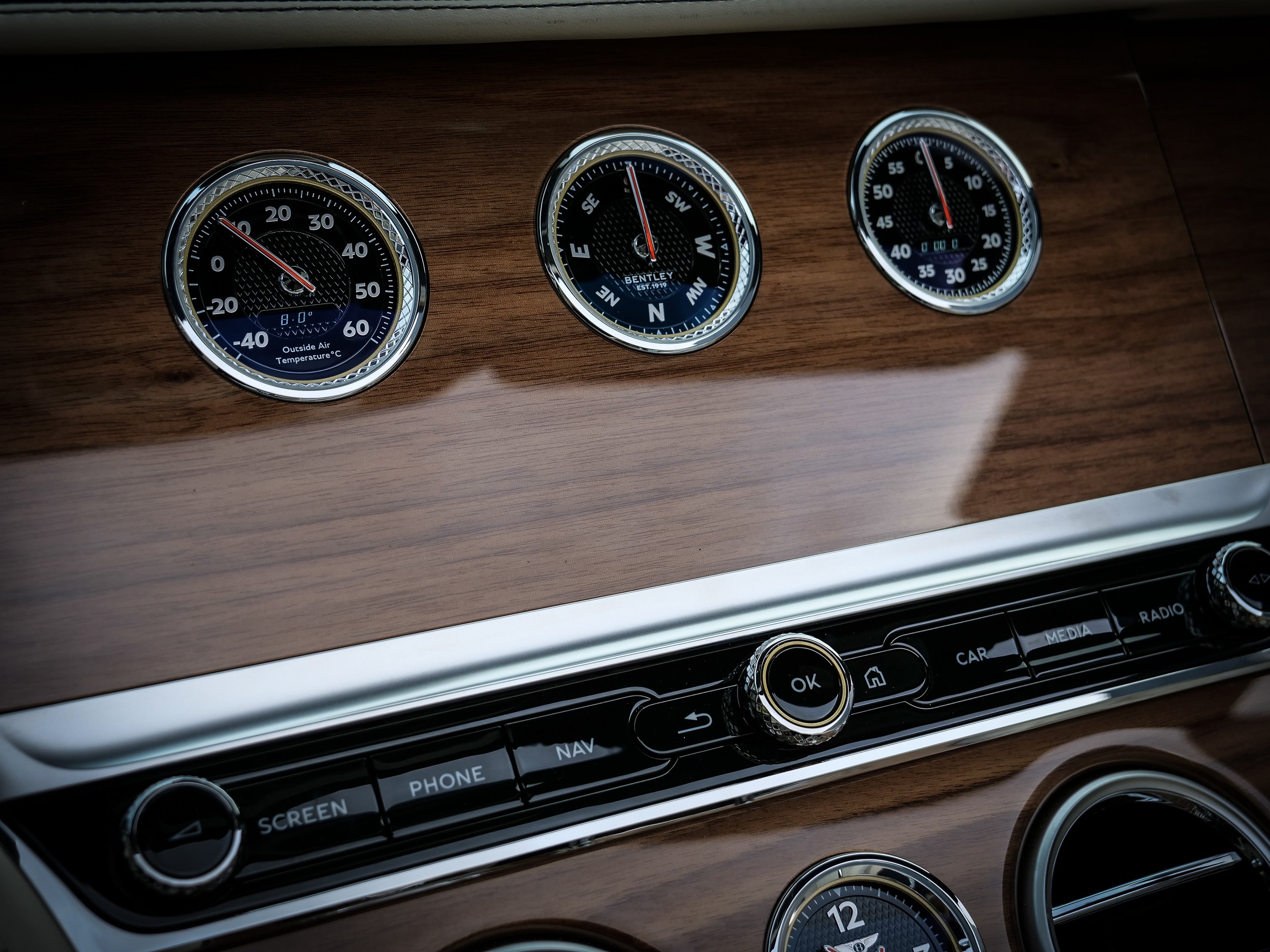 Aussenspiegel el. verstellbar und beheizbar, 360 Grad Kamera, Memorysitze (Fahrer+Beifahrer), Contrast Stitching and Seat Piping, Bentley Wings Welcome Lamps, Bang & Olufsen for Bentley, Bentley Rotating Display, Secondary Hide: Imperial Blue, Contrast Binding to Carpet Overmats - Contrast, Model Year 2026, Main Hide: Linen, Paint: Dark Sapphire