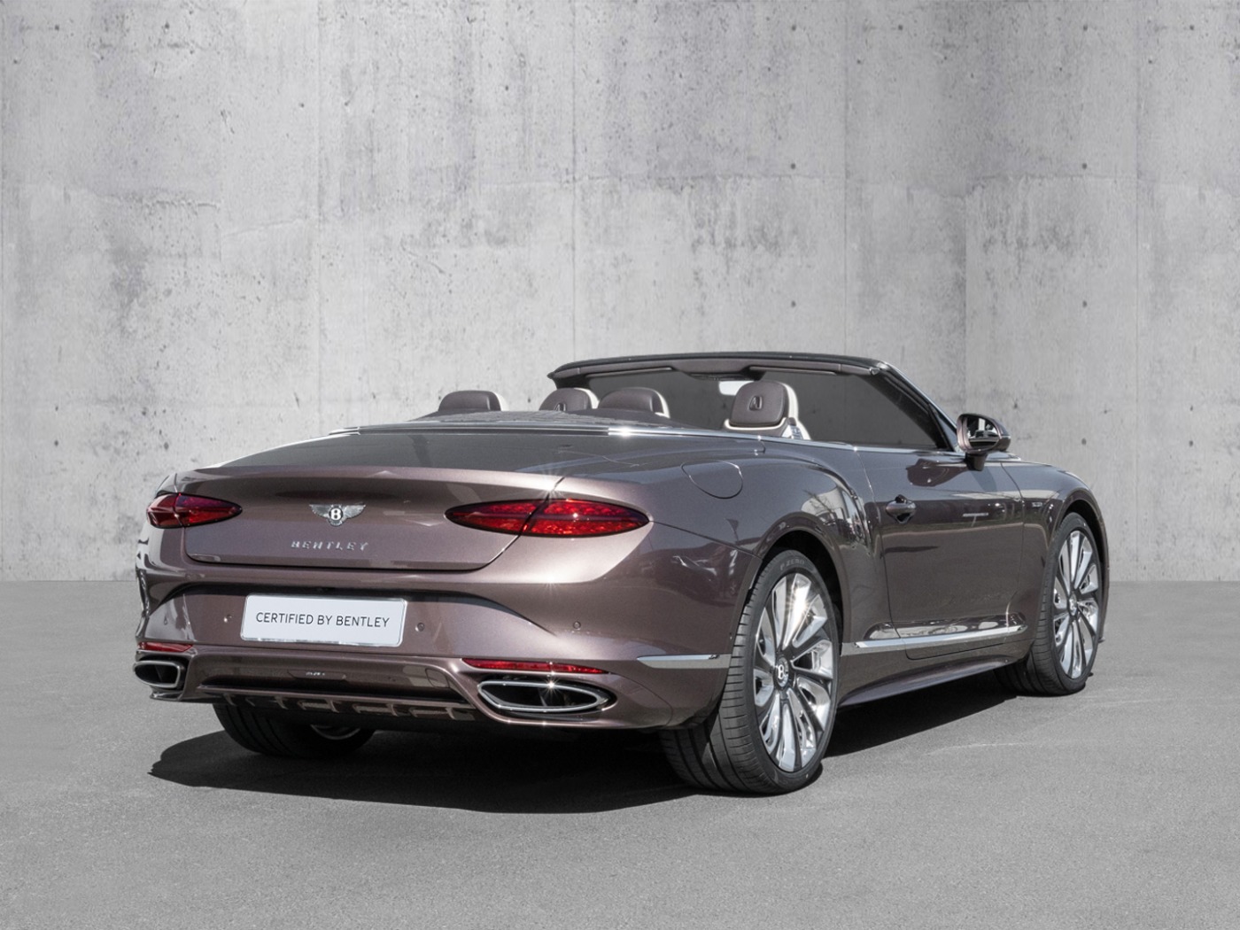 Model Year 2025, Naim for Bentley, Remote Controlled Garage Door Opener, Bright Chrome Diamond Knurling, Extended Range - Solid and Metallic, Main Hide: Linen, Mulliner Bespoke Interior, Secondary Hide: Burnt Oak, Main Colour: Arabica, Accent Colour: Portland, Roof - Tweed - Roof Exterior, Akrapovic exhaust gegen Aufpreis möglich