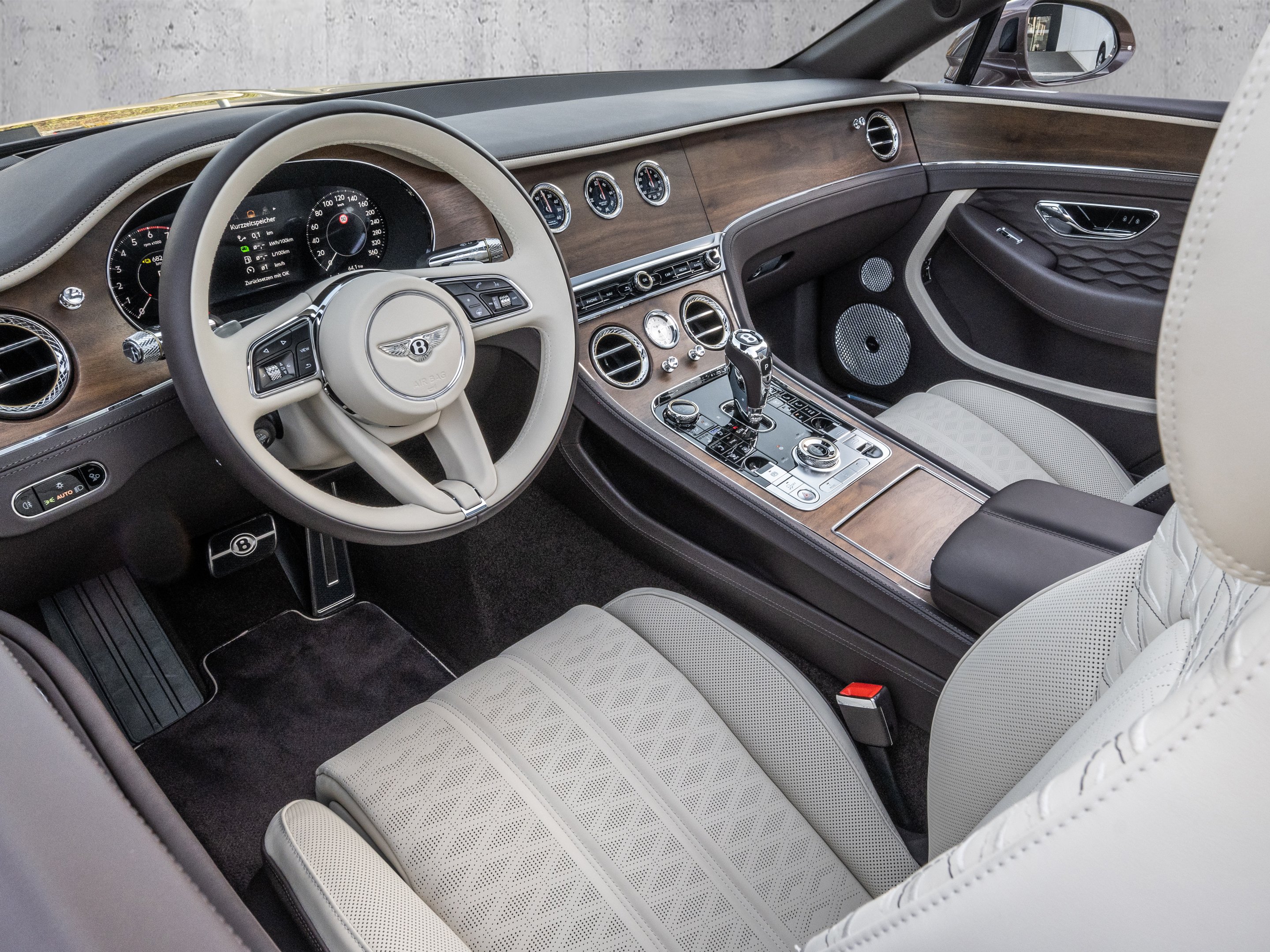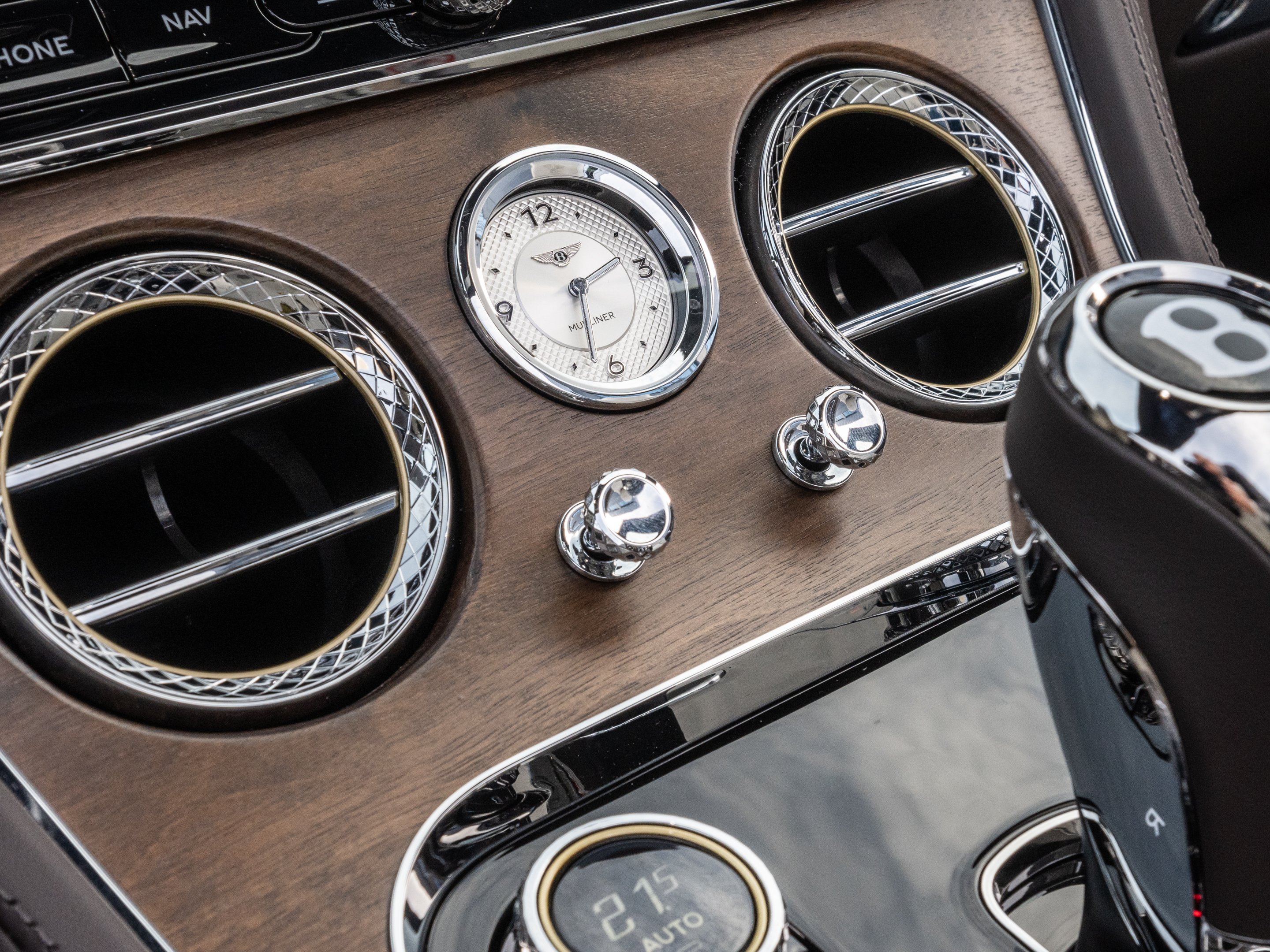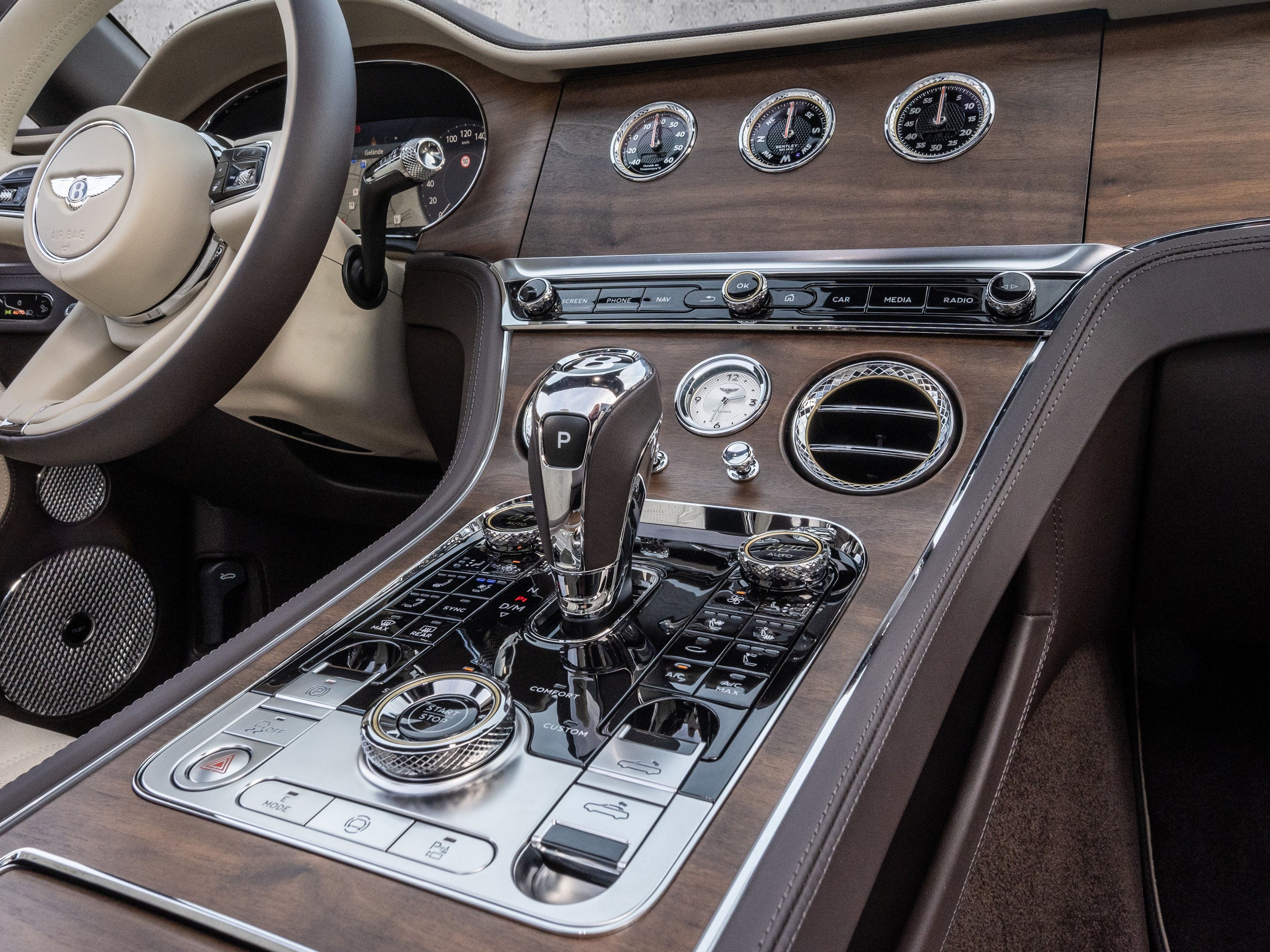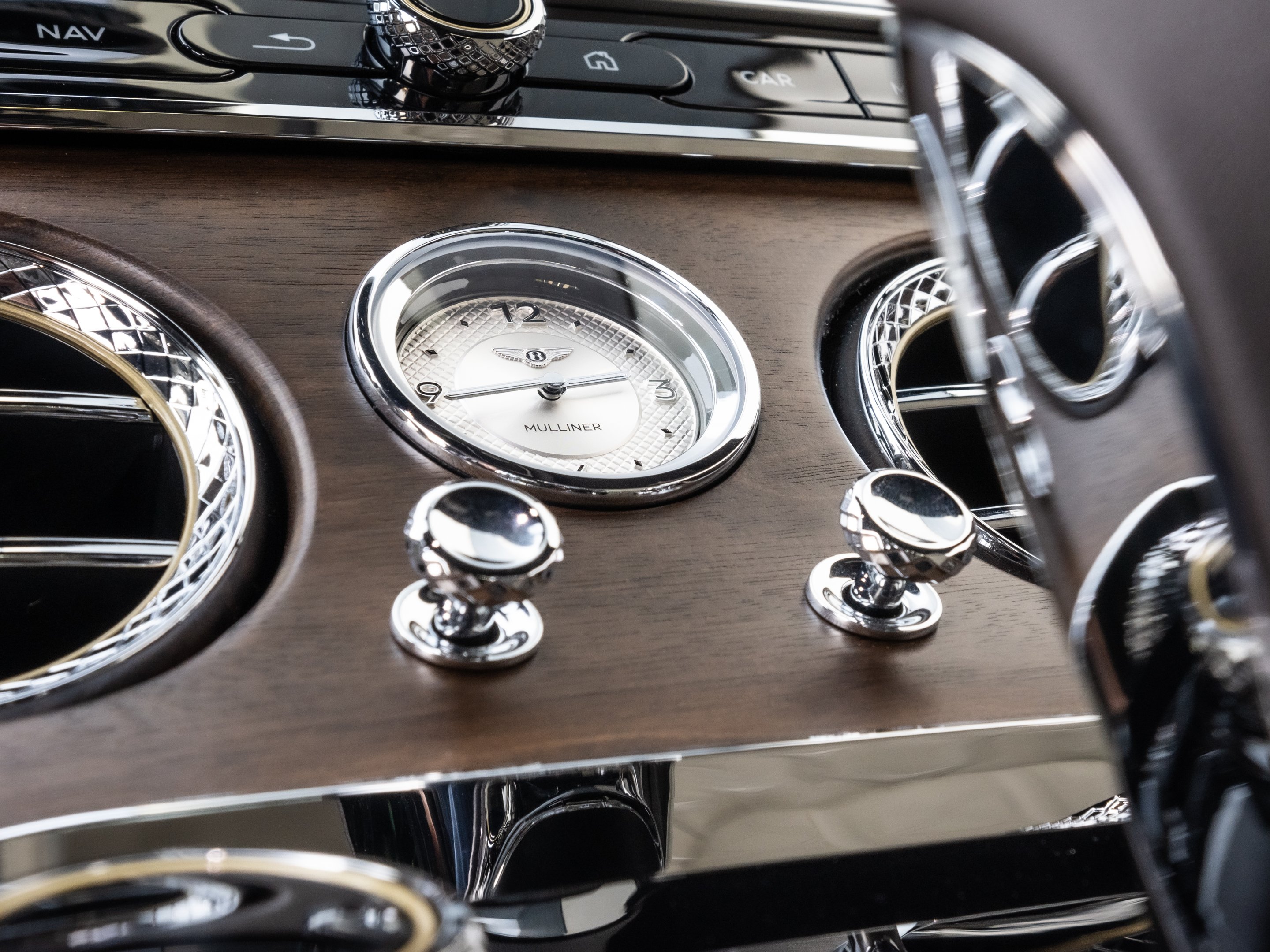 Naim for Bentley, Remote Controlled Garage Door Opener, Model Year 2025, Main Hide: Linen, Extended Range - Solid and Metallic, Bright Chrome Diamond Knurling, Mulliner Bespoke Interior, Secondary Hide: Burnt Oak, Main Colour: Arabica, Accent Colour: Portland, Roof - Tweed - Roof Exterior, Akrapovic exhaust gegen Aufpreis möglich