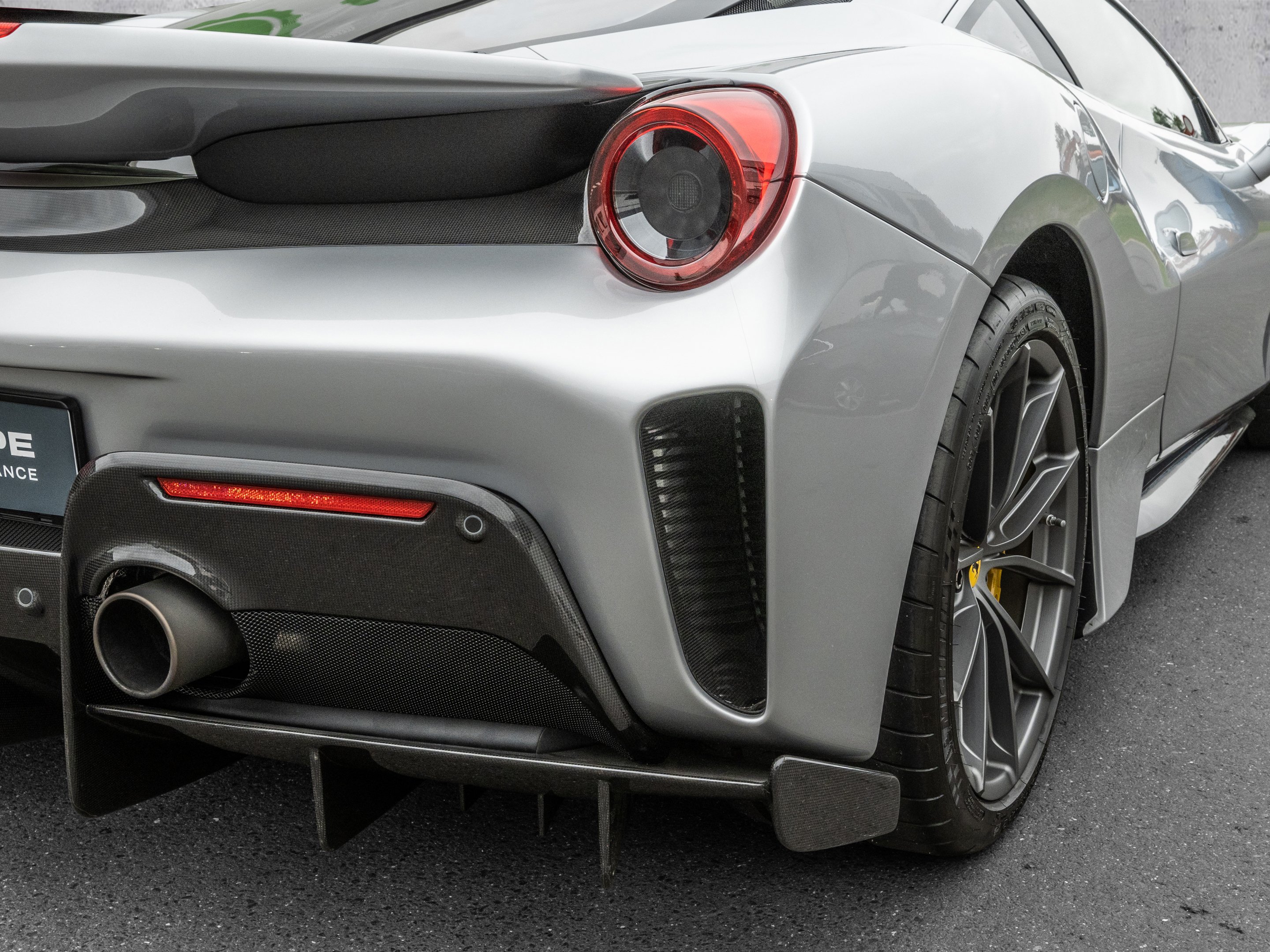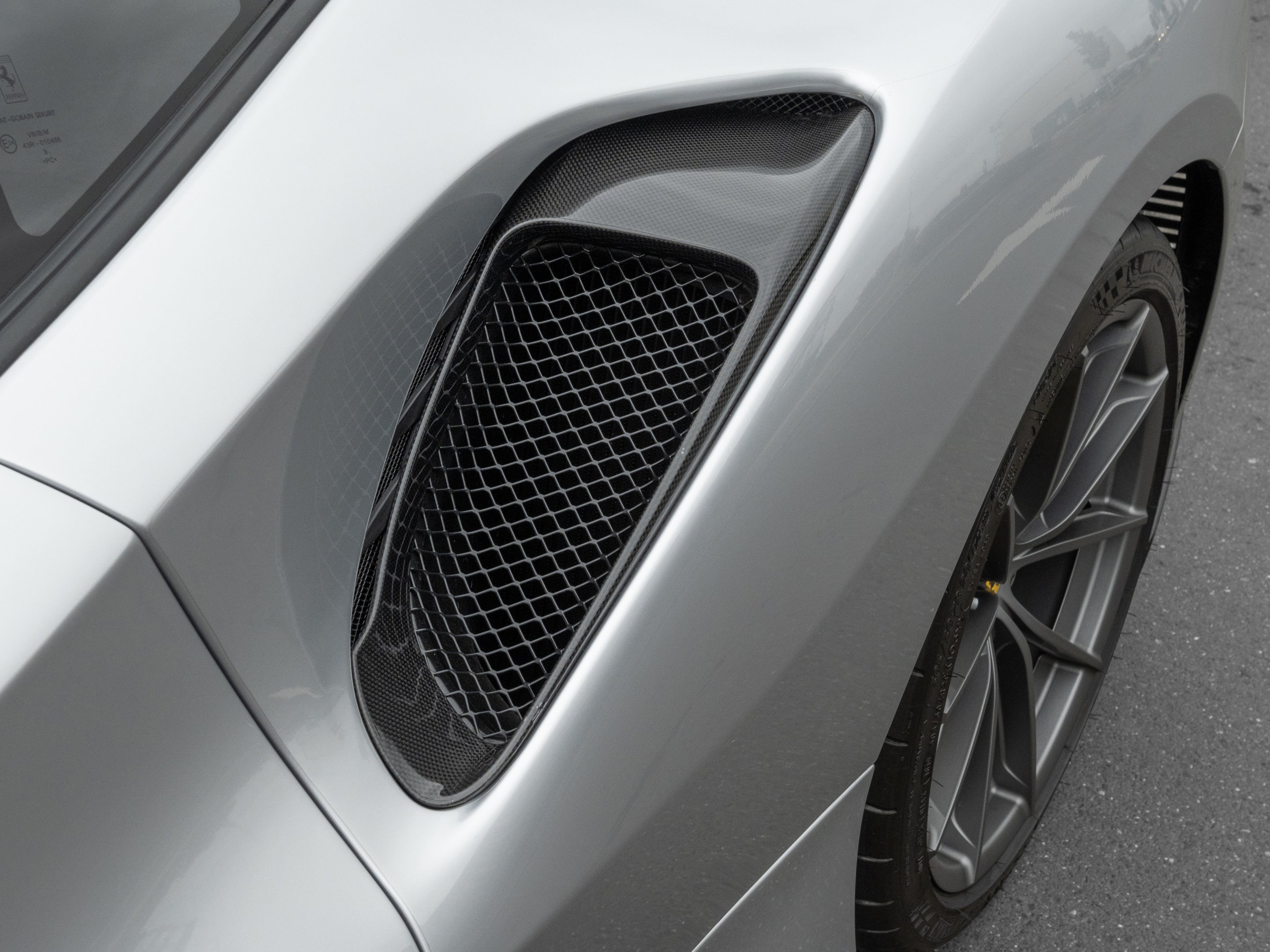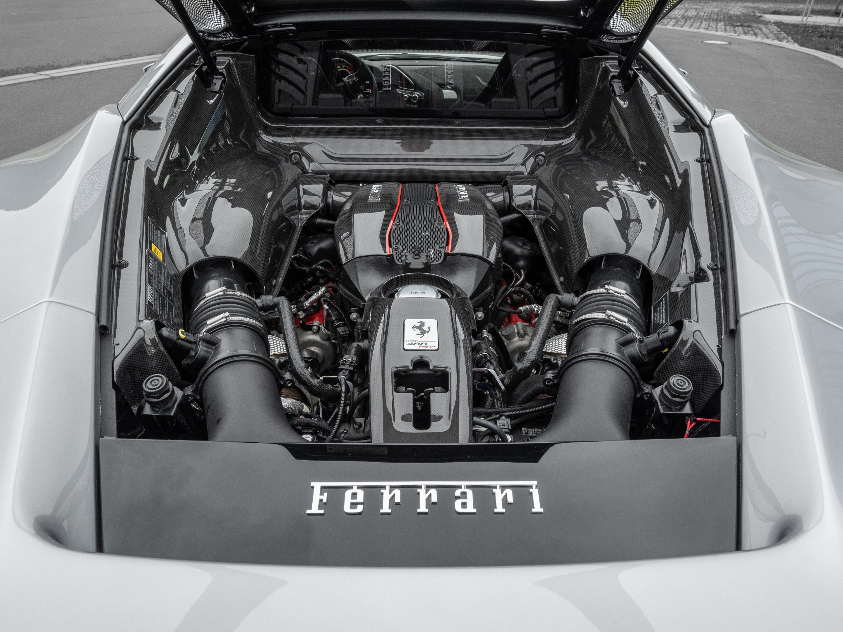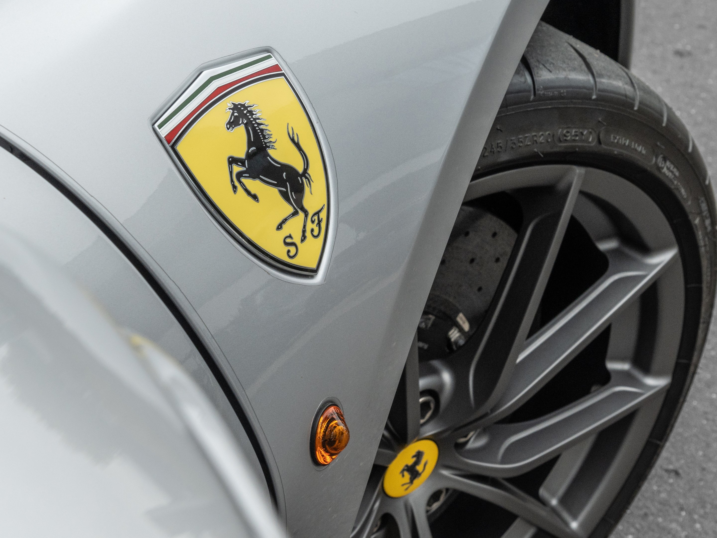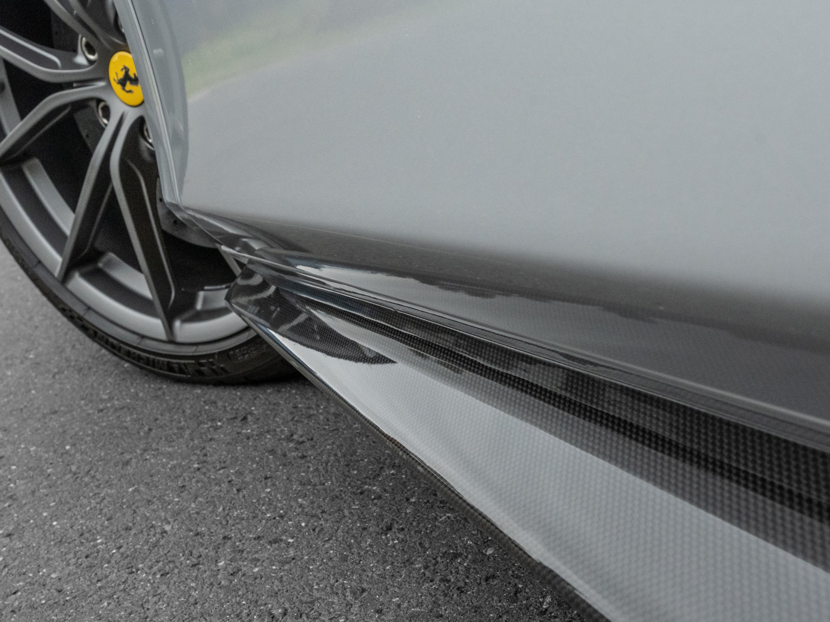 Hintere Parkkamera, Bremssättel in Giallo Modena, Spoiler und Klappen vorne aus Carbonfaser, Splitter seitliche Luftklappen aus Carbonfaser, Motorraum aus Carbonfaser, Diffusor aus Carbon, Seitliche Spoiler aus Carbonfaser, Schwellerverkleidung aus Carbonfaser, Auspuffrohre aus Titan, Hinterer Bereich aus Carbonfaser, Scuderia Ferrari Embleme auf den Kotflügeln, Äußere Einstiegsleiste aus Carbonfaser, Finish Carbonfaser oberer Tunnel, Coloured Innenraum-Details, CLDT in Pelle Extracampionaro, Farbe der Bodenverkleidung, Striscia Sedili Pelle Tricolore, Auf die Nackenstütze genahtes Cavallino Rampante, Fußmatten mit gesticktem Fahrzeuglogo, Volante con Cuciture Tricolore, Rennsitze aus Carbonfaser, Sondernähte Farbe nach Wahl, Lenkrad aus Leder in Farbe nach Wunsch, AFS (Adaptive Frontscheinwerfer), Front-Lift, Funktionelle Ausstattung (kein Navigationsgerät), HELE-System (High Emotion Low Emission), Satelliten-Navigationsgerät, Personalisierungspaket, Integriertes Audio-System