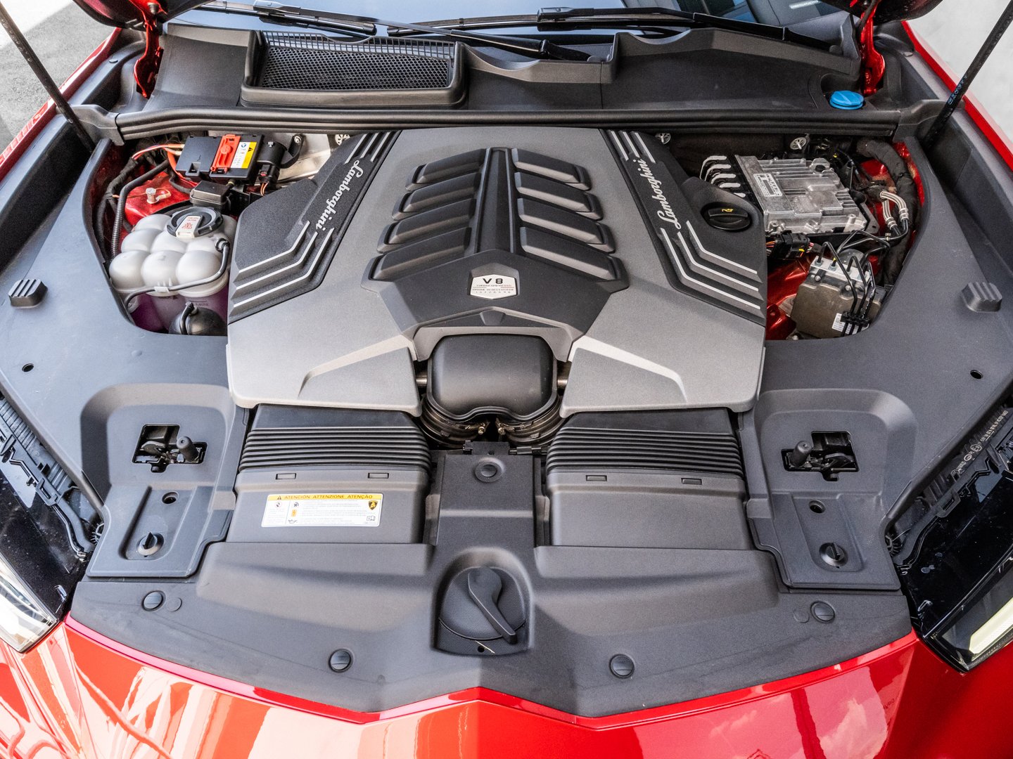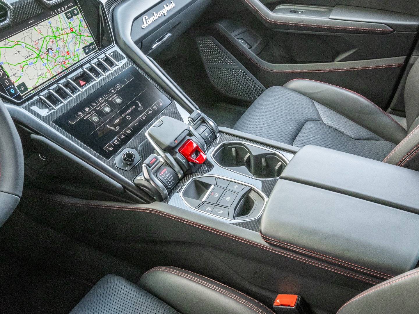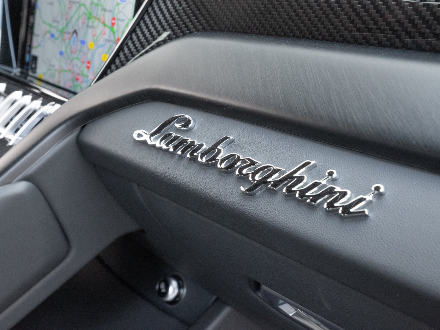 Rear Lamborghini Logo in High Gloss Black, Standard windscreen, Tempered side and rear glasses, DAB Radio Digital radio reception, Model Year 2023, Style Package in High Gloss Black with Front Splitter, Black Anodized Treatment on Aluminum Inserts, Hands Free Tailgate, Black Chrome Exhaust Tailpipes, Park Assistance Package with Remote Park Assist, Big Interior Carbon Package - Shiny, Main Paint: Rosso Efesto, Main Trim: Nero AdeContrast Stiching: Rosso Alala, Red Caliper, Bonnet Air Vents in Body Color, Preparation for VTS (Vehicle Tracking System), Standard fresh air intake system (activecarbon filter)