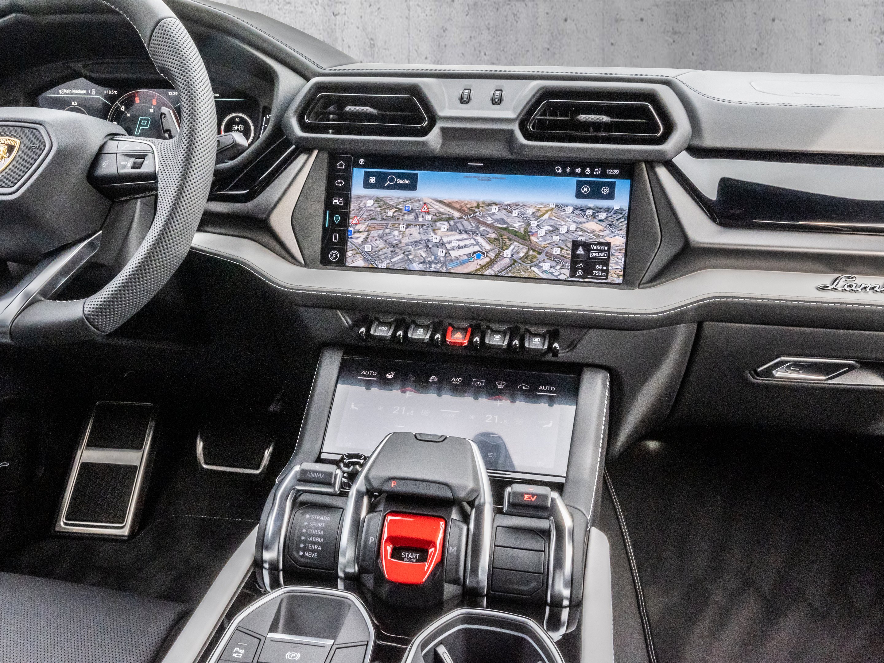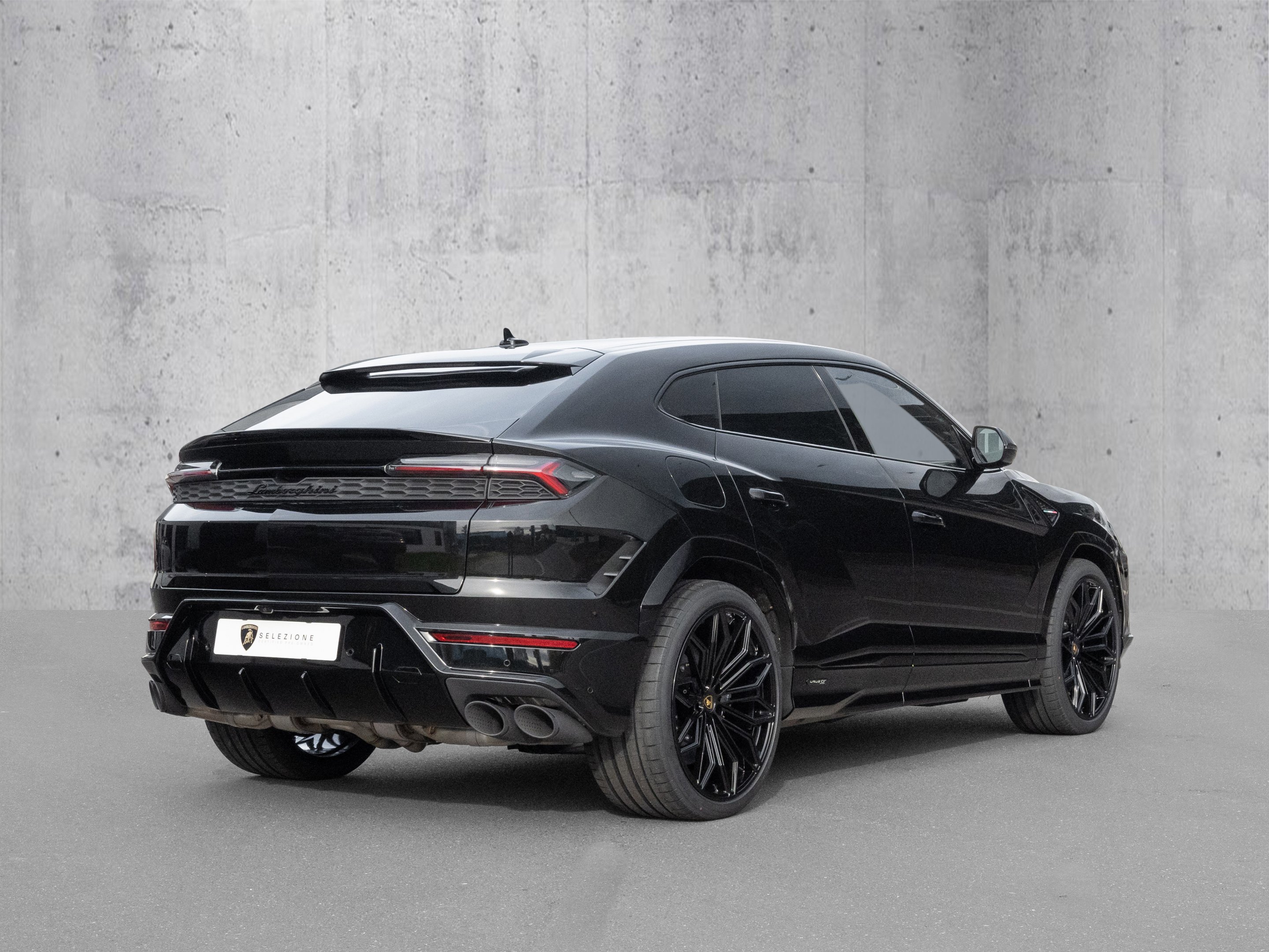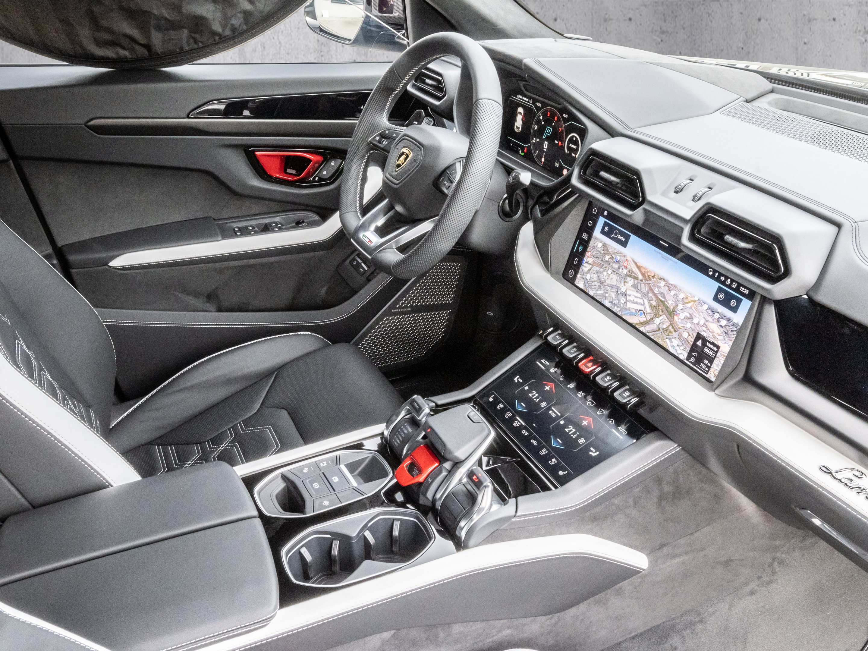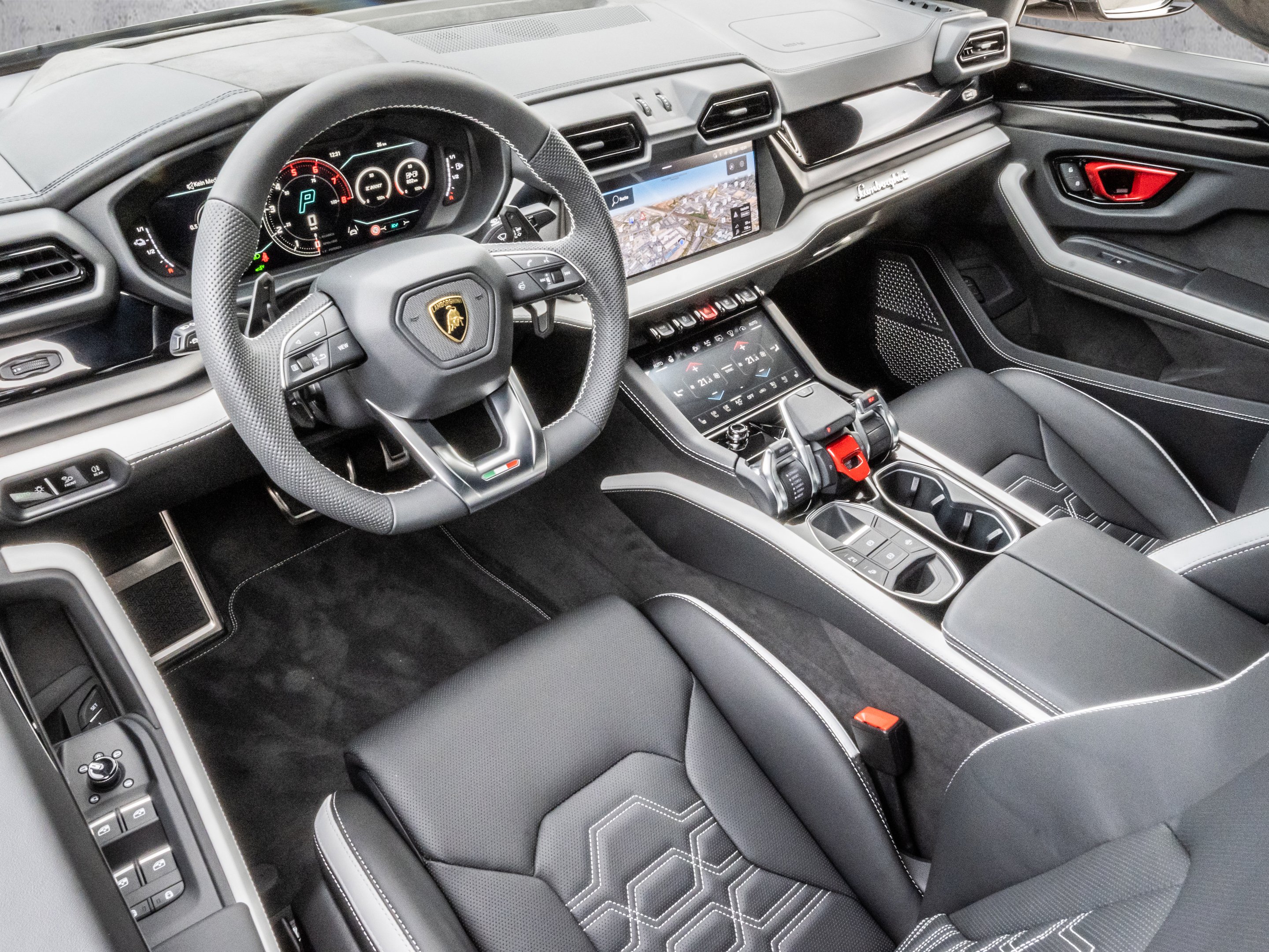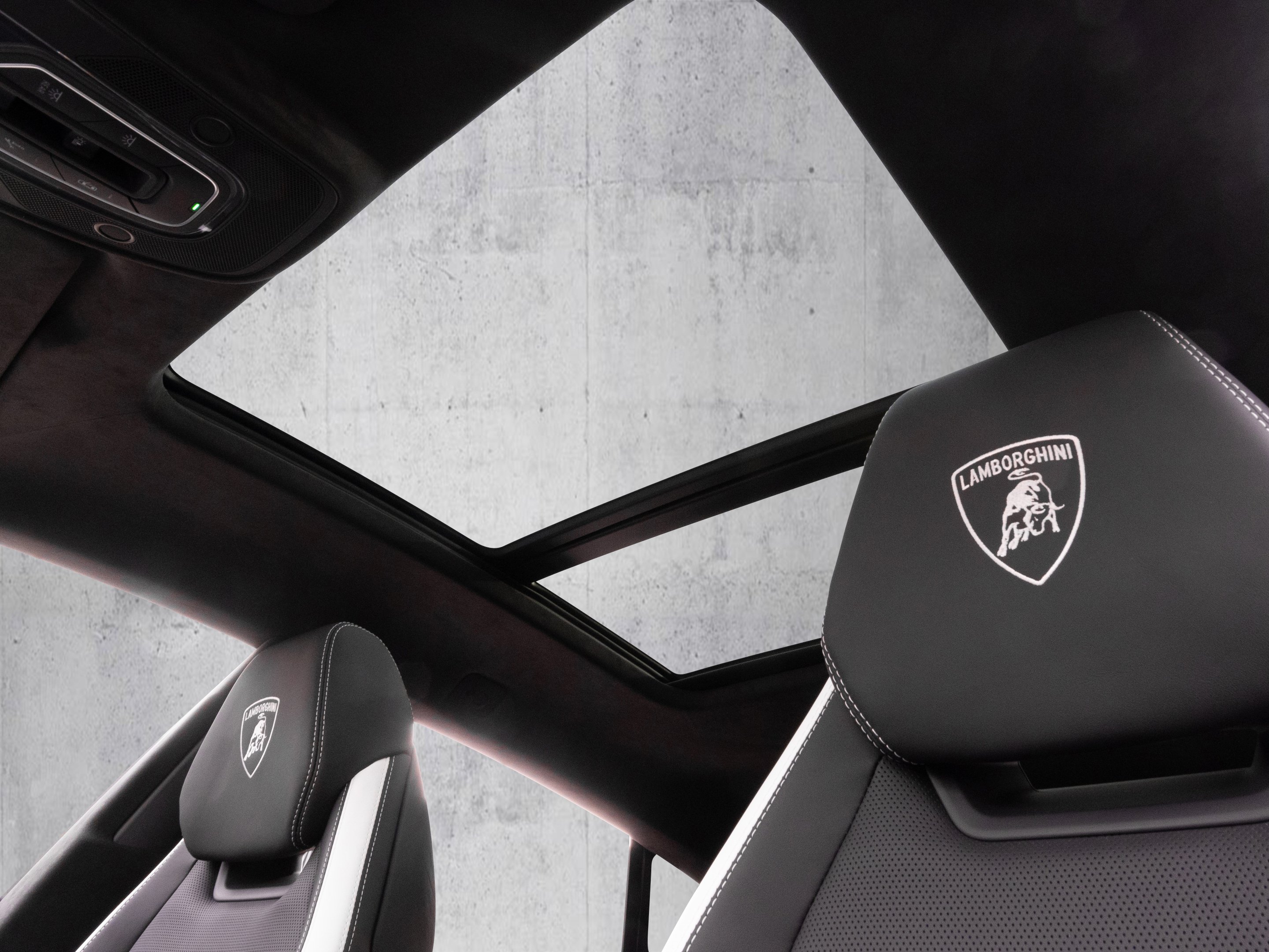 Model Year 2025, Park Assistance Package with Remote Park Assist, Premium air quality system, Wiper blades with integrated nozzles, Advanced 3D Bang & Olufsen Sound System, Style Package Full in Body Color, Rear Lamborghini Logo in high Gloss Black, Sunblinds Package, Interior Colour: Nero Ade / Bianco Leda, Rims Galanthus 23\\" Shiny Black, Sportivo leather interior with special Ad Personam trim, Stitching matched to contrast color, Multifunction steering wheel in perforated leather with X-stitching and heating, Stitching on steering wheel matched to contrast color, Seat belts: Nero Ade, Carpets matched to basic color, Stitching on floor mats matched to contrast color, 23\\" PZero 5 Elect tires 285/35 front, 325/30 rear, Mirror housings in shiny carbon fiber, Lamborghini ANIMA leather with off-road modes, Black anodized aluminum inserts, Interior door handles in Rosso Efesto, Rails and fixing set for luggage management, Hands-free tailgate