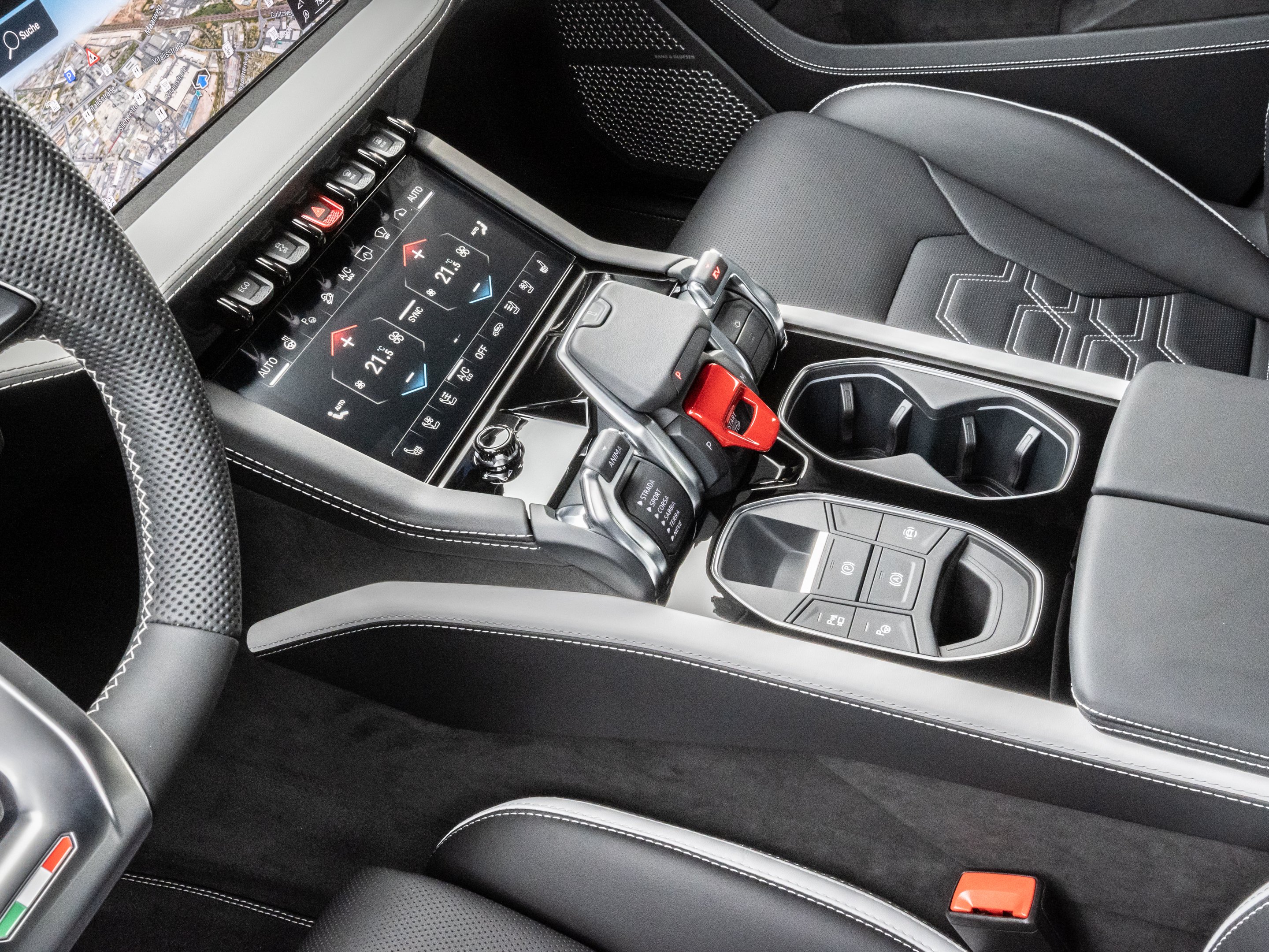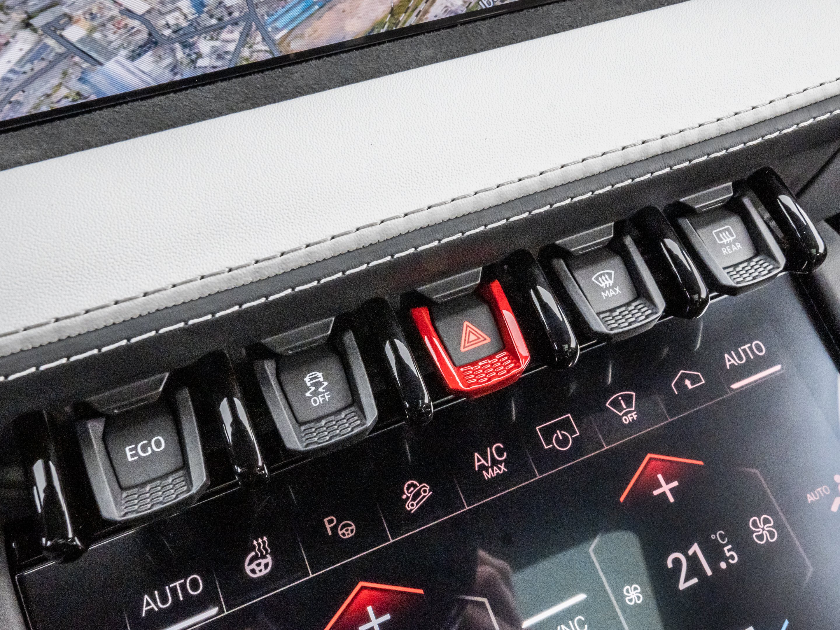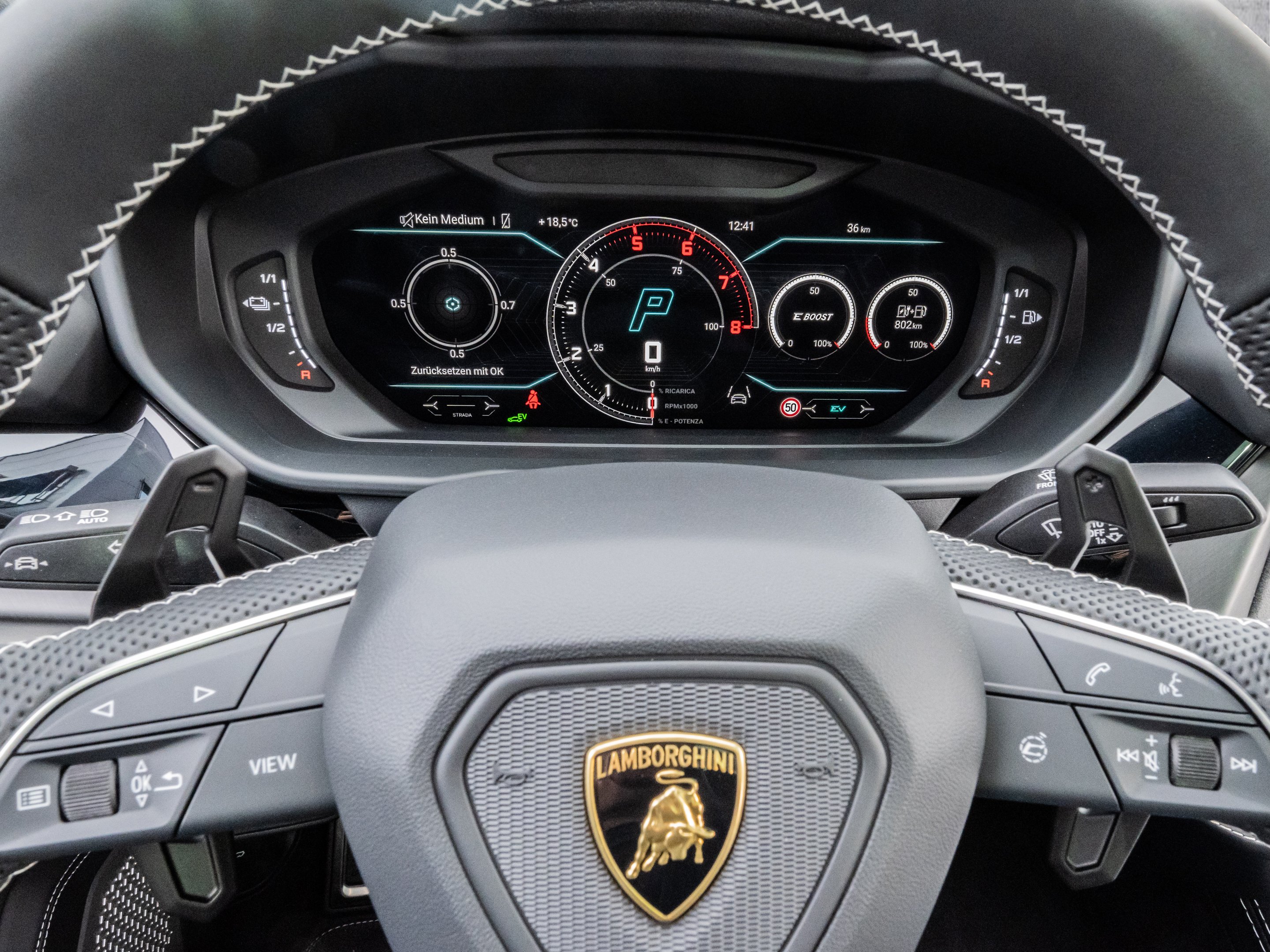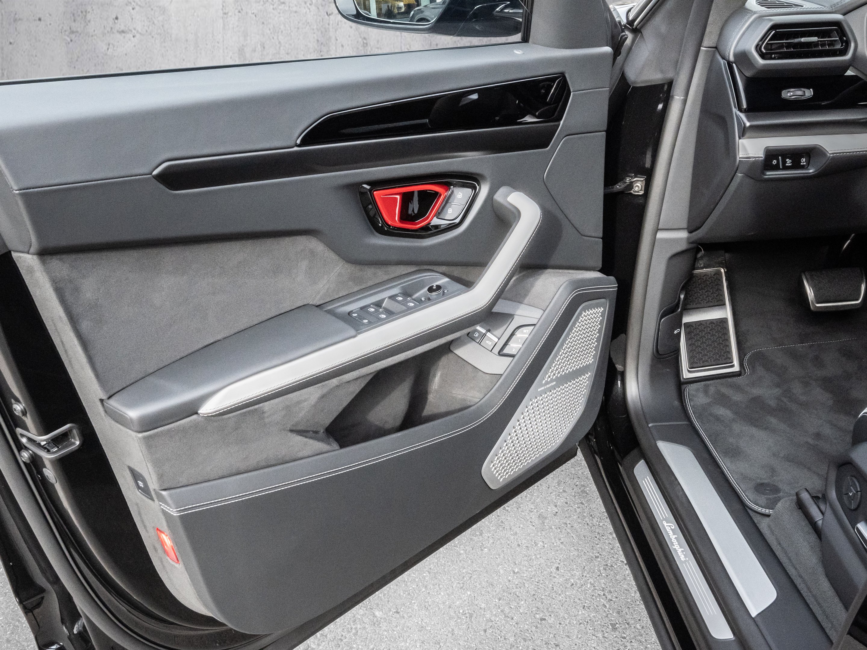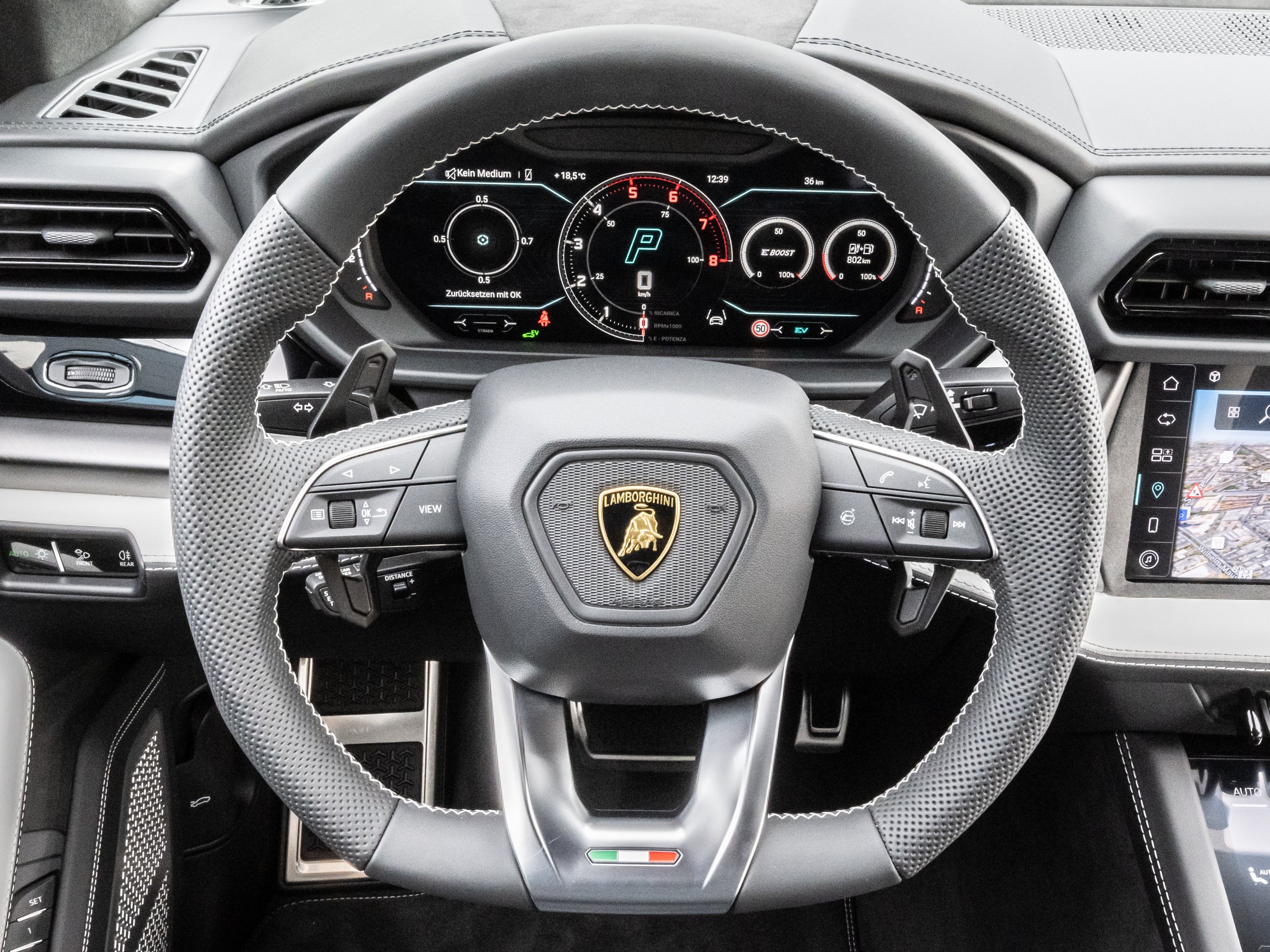 Model Year 2025, Park Assistance Package with Remote Park Assist, Premium air quality system, Wiper blades with integrated nozzles, Advanced 3D Bang & Olufsen Sound System, Style Package Full in Body Color, Rear Lamborghini Logo in high Gloss Black, Sunblinds Package, Interior Colour: Nero Ade / Bianco Leda, Rims Galanthus 23\\" Shiny Black, Sportivo leather interior with special Ad Personam trim, Stitching matched to contrast color, Multifunction steering wheel in perforated leather with X-stitching and heating, Stitching on steering wheel matched to contrast color, Seat belts: Nero Ade, Carpets matched to basic color, Stitching on floor mats matched to contrast color, 23\\" PZero 5 Elect tires 285/35 front, 325/30 rear, Mirror housings in shiny carbon fiber, Lamborghini ANIMA leather with off-road modes, Black anodized aluminum inserts, Interior door handles in Rosso Efesto, Rails and fixing set for luggage management, Hands-free tailgate