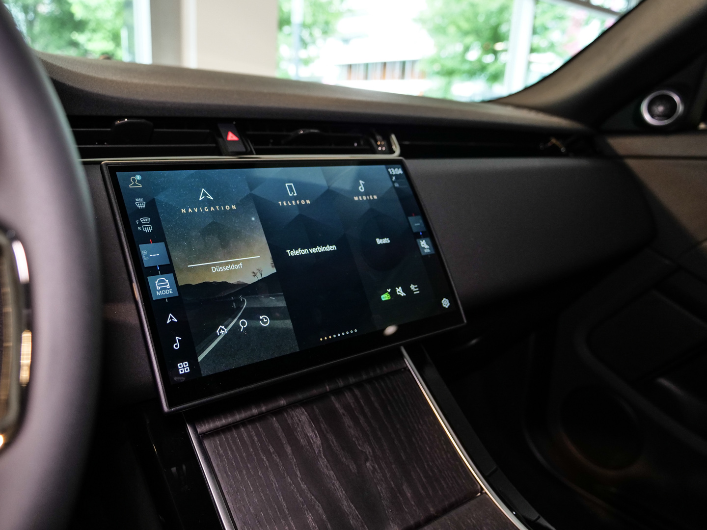 Smartphone Schnittstelle (Apple CarPlay & Android Auto), Radioempfang digital (DAB+), Touchscreen-Farbdisplay (11.4 Zoll), USB-Anschluss in Mittelkonsole, Bluetooth-Schnittstelle, Mobiltelefon Schnittstelle mit kabelloser Ladefunktion, Audiosystem: Meridian Sound-System (400 Watt - 13 Lautsprecher - Subwoofer)