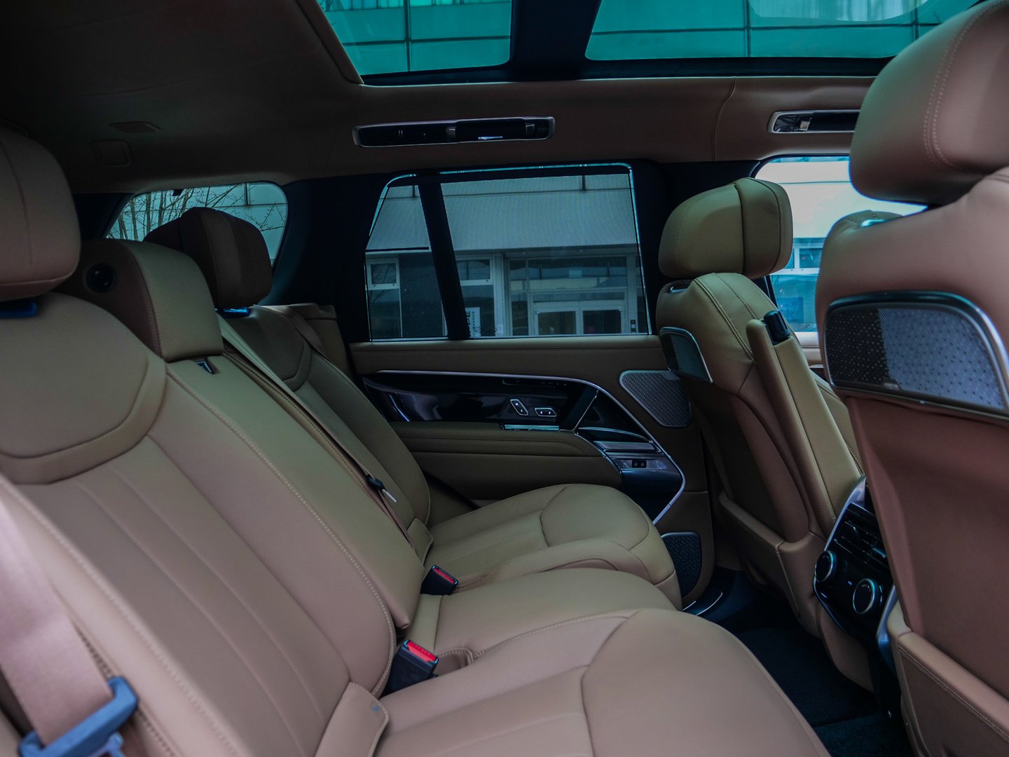 Vollleder, Ambiente-Beleuchtung, Klimaautomatik 4-Zonen, Interieur Ebony, Lenkrad heizbar, Lenkrad mit Schaltwippen/-tasten, Off-Road-Fahrprogramm, Frontscheibe wärmeabweisend, Verglasung hinten abgedunkelt (Privacy Glass), Kühlbox in Mittelkonsole integriert - vorn, All-Terrain Progress Control (ATPC), Türverkleidung (Mittelteil) in Windsor-Leder