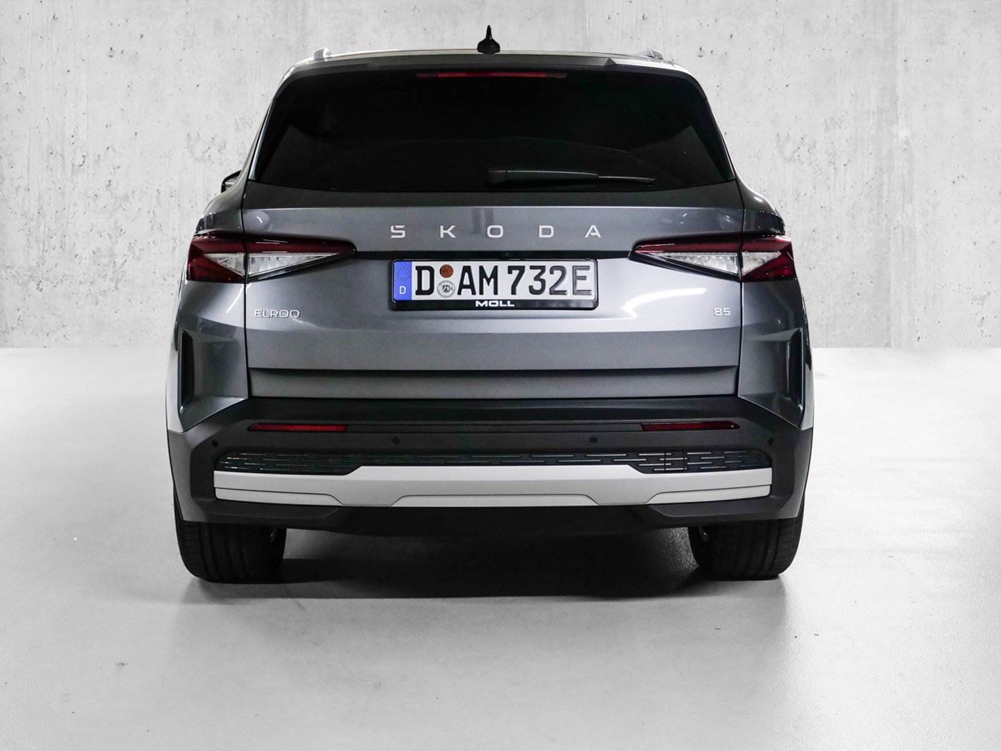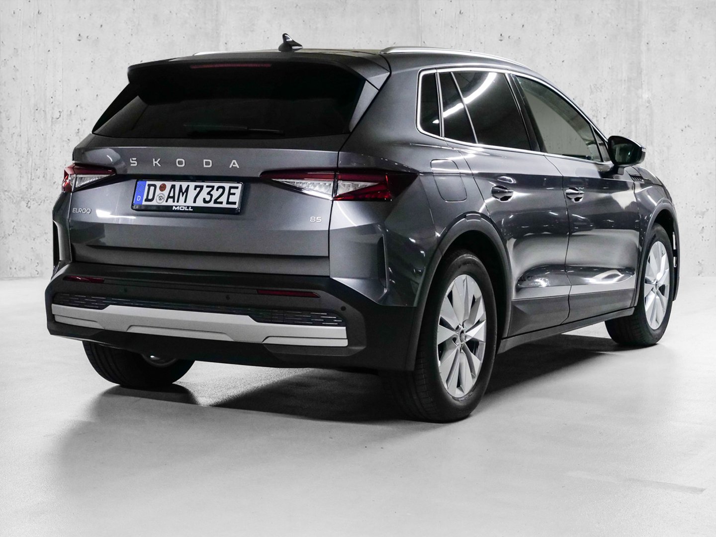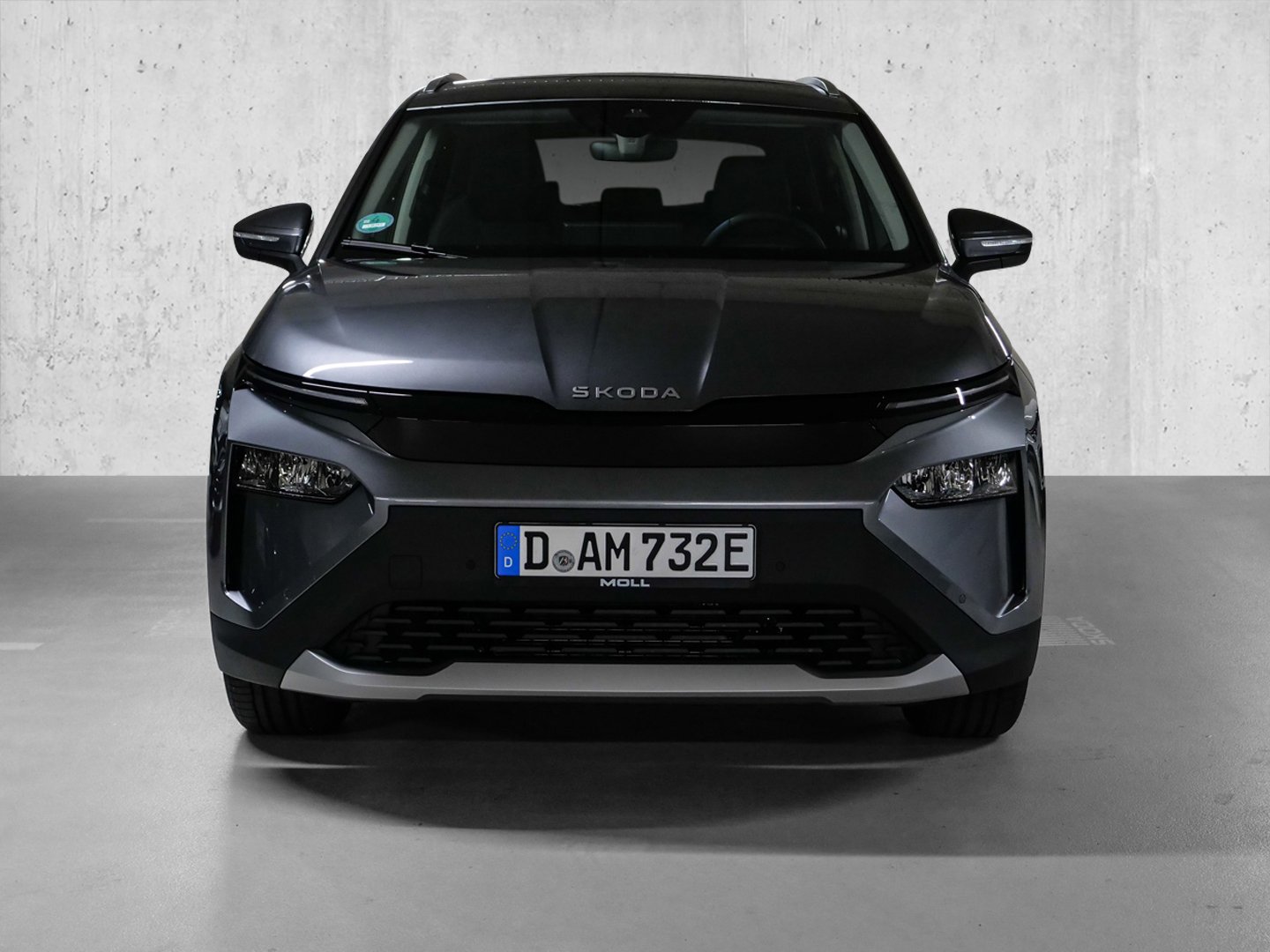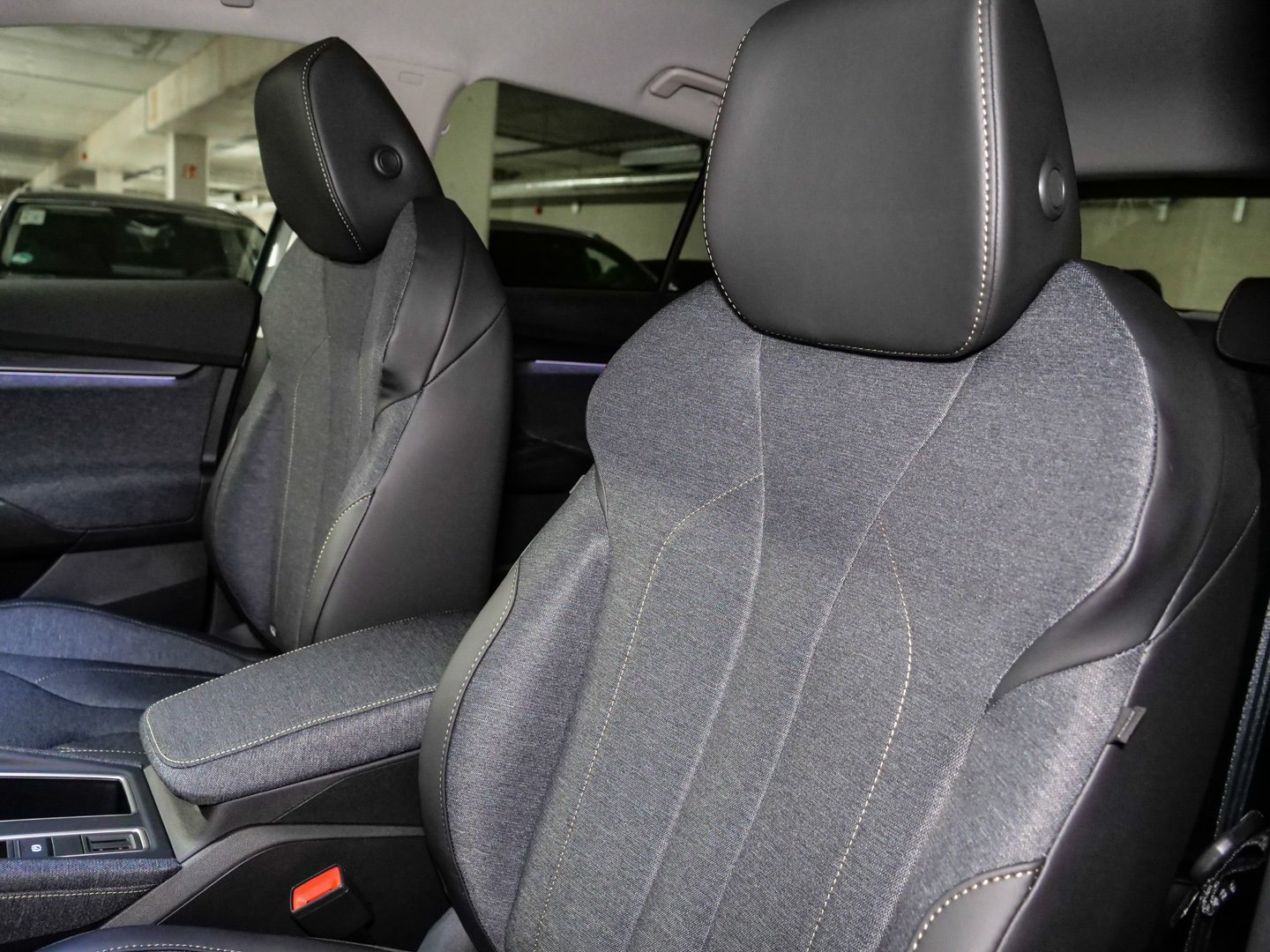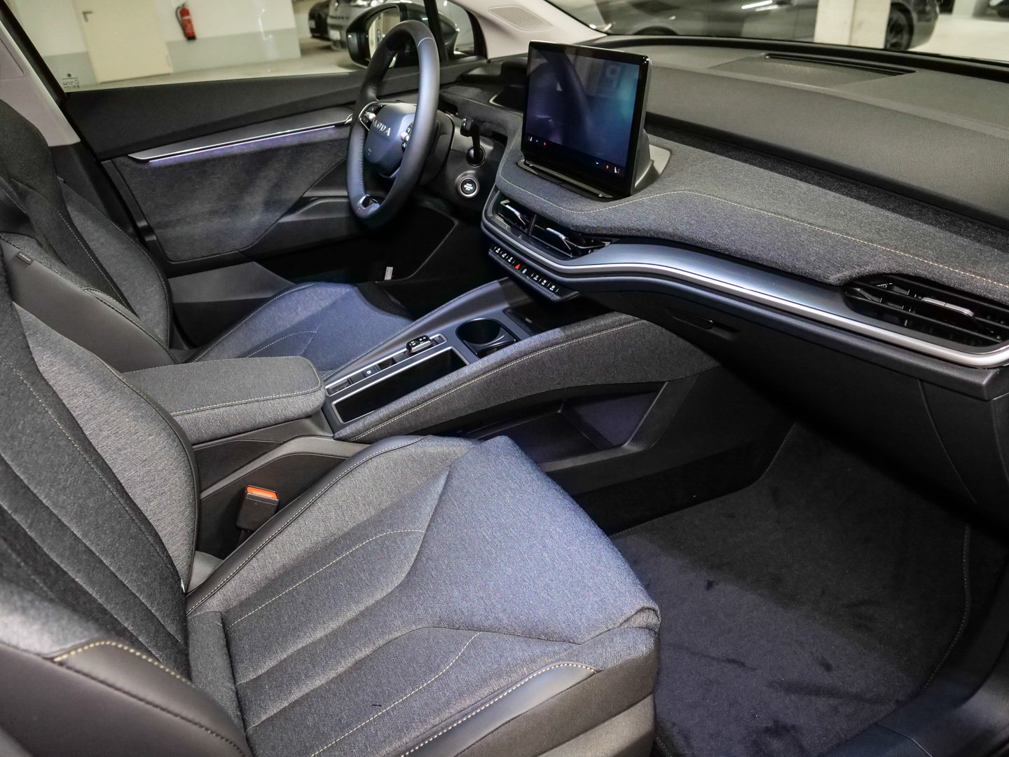 Vorbereitung für Alkohol-Wegfahrsperre (Alcolock), Audio-Navigationssystem mit Touchscreen-Farbdisplay, Induktionsladeschale für Smartphone 15 W, Infotainment-System mit 13 Display, Radstand Standard, Intelligente Geschwindigkeitsanpassung (ISA) inkl. Speed-Limiter, Ablagefächer (Gepäck-/Laderaum), Easy Start (Keyless Easy Entry), Elektromotor 210 kW (cont. 89 kW), Fensterzierleisten Unique Silver Chrome, HV-Batterie 82 kWh brutto / 77 kWh netto, Isofix-Aufnahmen für Kindersitz an Beifahrersitz und Rücksitze aussen (inkl. Top Tether), LM-Felgen 8x19 (Proteus), Rücksitz geteilt / klappbar (60:40) Mittelarmlehne und Durchladefunktion, SKODA Care Connect & Infotainment Online, Sitze vorn höhenverstellbar inkl. Lendenwirbelstütze verstellbar, Stossfänger vorn und hinten mit Unique Dark Chrom-Applikationen, Ausstattungs-Paket: Clever, Dekoreinlagen Anthrazit glanzlackiert, Dekoreinlagen Fairy Dust, Sitzbezug / Polsterung: Stoff/Kunstleder mit Kontraststeppung Grün