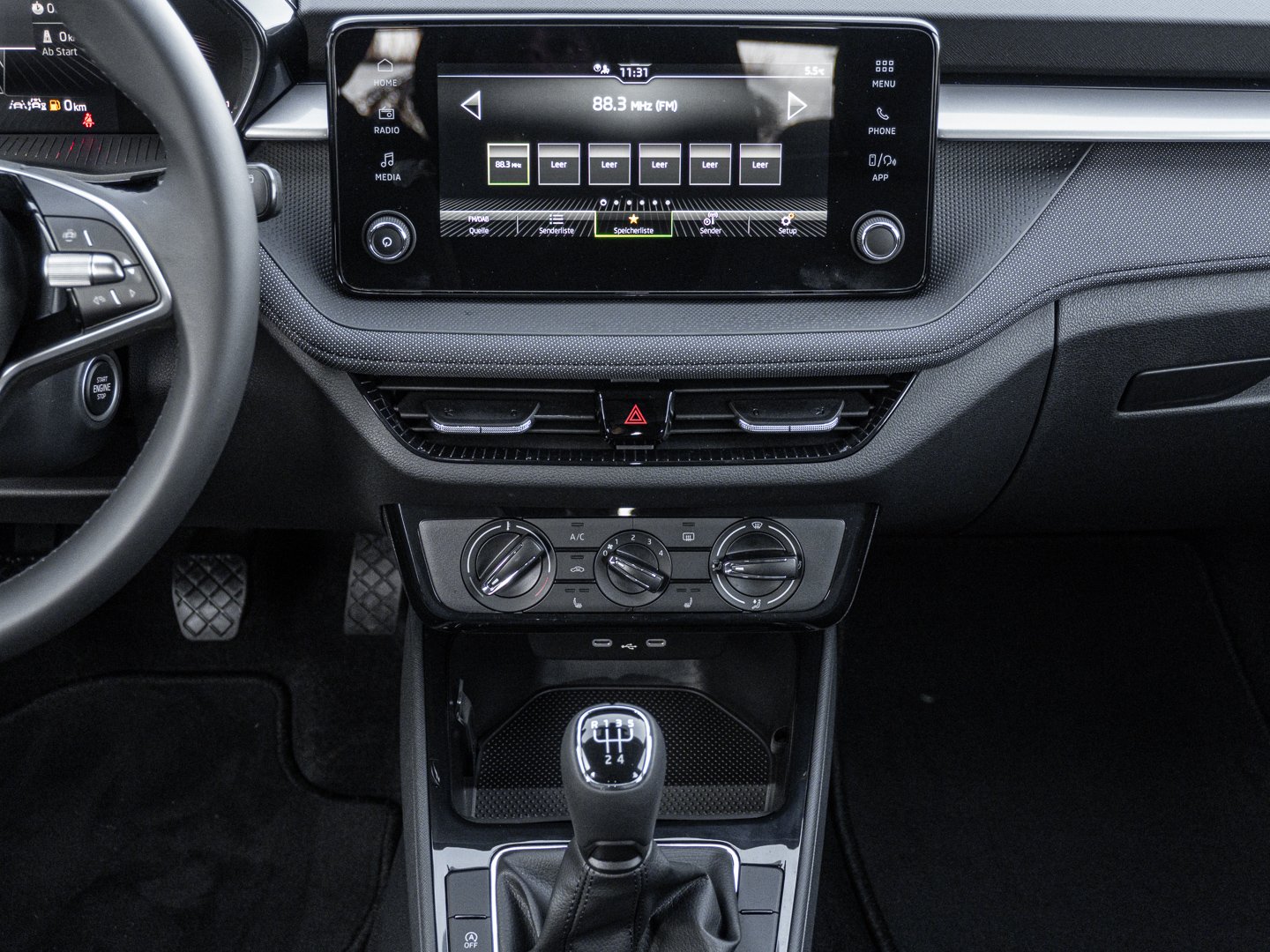 EM2 Aufmerksamkeits- und Müdigkeitserkennung, 8RL 4 Lautsprecher vorn + 2 hinten inkl. koda Surround, 8VG LED SBBR Low LED, 9P9 Gurtanlagesignalisation für die vorderenund hinteren Sitze, 9WJ SMARTLINK (wired and wireless connect), I8U KODA Infotainment, IN1 Steuerung Hinterachsgewicht, QK1 Multifunktionskamera (Für Fahrerassistenzsysteme), 3A2 ISOFIX-Verankerung auf dem Beifahrersitzund den äußeren Rücksitzen inklusive Top-Tether, 7P4 Einstellbare Lendenwirbelstützen in denVordersitzen, 42Z 15 Leichtmetallfelgen Rotare Aero, 6KL Verchromter Kühlergrillrahmen, DI6 10l TSI 70 kW / 95 PS, J90 Reifen 185/65 R15, K8G Karosserievariante Kurzheck, 0I0 40l Kraftstofftank, 1G2 15 Stahlreservenotrad 185/65 R15, 2C5 Lenksäule horizintal- und vertikal einstellbar, 3N6 Cargoelement im Kofferraum, 3NZ Rücksitzlehne 60:40 geteilt umlegbar, 4I7 Zentralverriegelung inklusive im Schlüssel integrierter Funkfernbedienungund Easy Start, 4VN Emissionsnorm EU6e (EB), 5MB Dekorleiste in Grey-Metallic, 5XR Sonnenblenden mit Spiegel auf Fahrerseite, 6K2 Frontradarassistent (Front Assist), 6SJ Gepäckraumwendematte - Zweiseitiger Bodenbelag (Teppich/gummiert), 7L6 Start-Stopp-Automatik mit Rekuperation (Bremsenergierückgewinnung), PJA 15 Stahlreserverad, T0M 10l TSI (3-Zylinder Ottomotor), YOK Care Connect (3 Jahr Laufzeit)