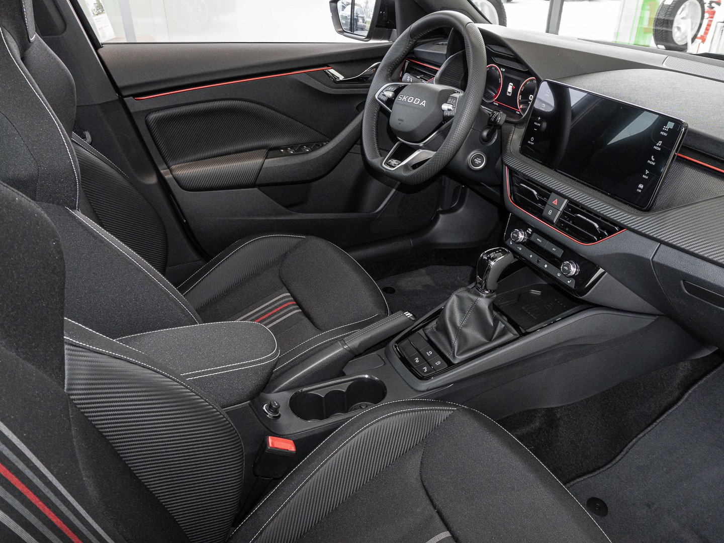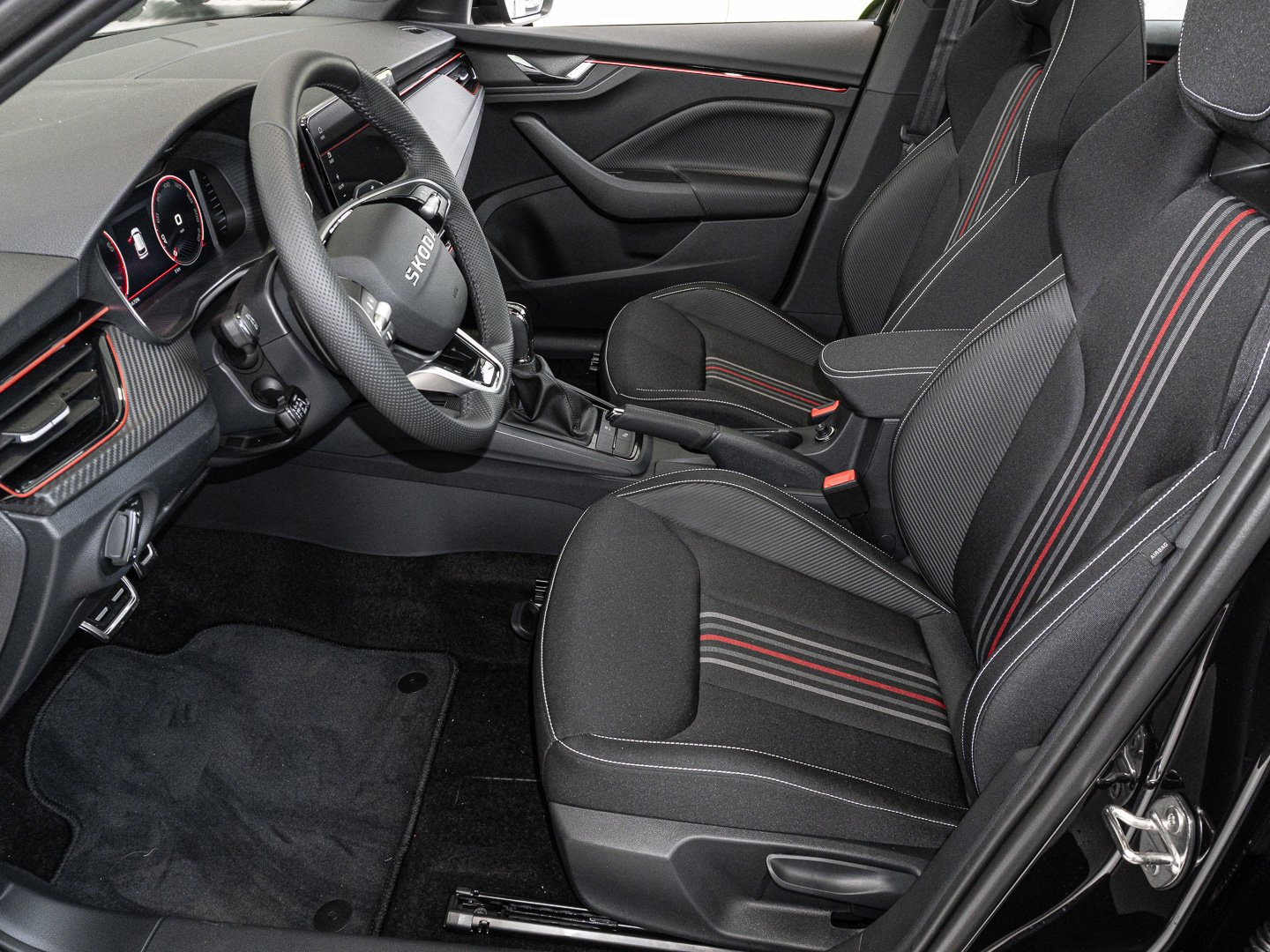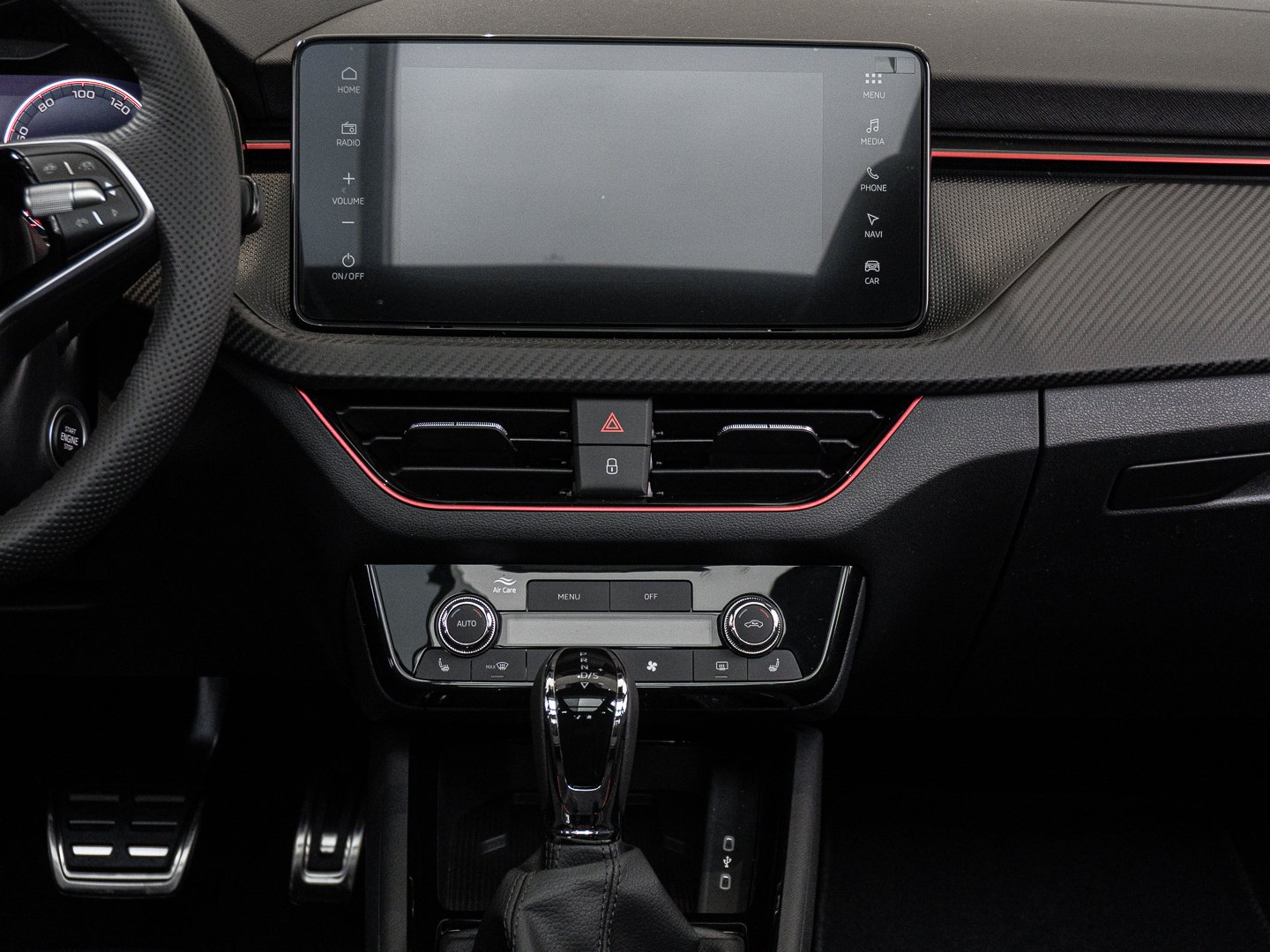 Audio-Navigationssystem mit Touchscreen-Farbdisplay, Schadstoffarm nach Abgasnorm Euro 6e, Infotainment-System mit 8.2 Display, Lenkrad mit Freihanderkennung (kapazitives Lenkrad / Hands Off Detection - HOD), Ambiente-Beleuchtung LED in Rot, Interieur-Design-Paket Monte Carlo, Interieurleisten Schwarz / Rot, Luftausströmer Rot, Schriftzug schwarz, Stossfängerabdeckung vorn und hinten - schwarz glänzend, LM-Felgen 6.5x17 (Kajam AERO - schwarz - glanzgedreht)