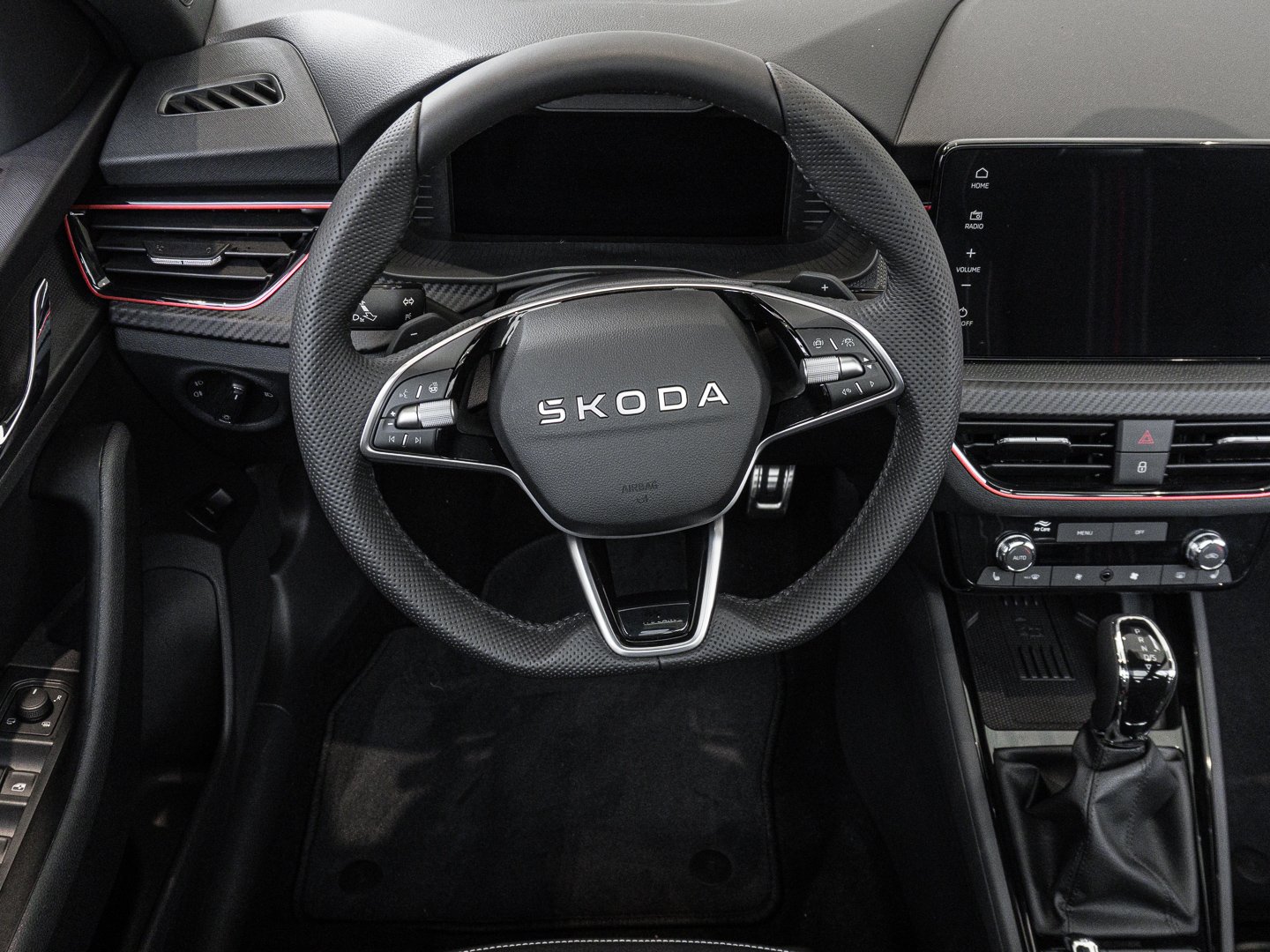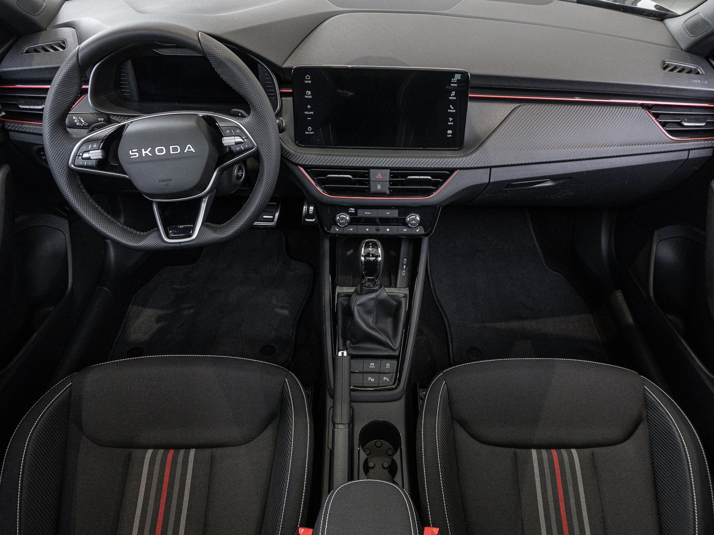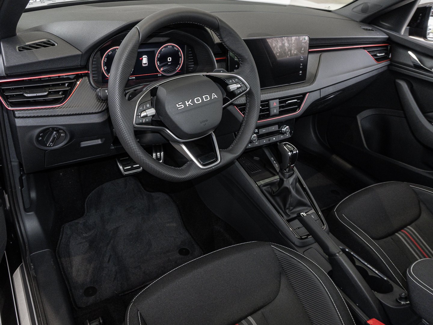 Audio-Navigationssystem mit Touchscreen-Farbdisplay, Schadstoffarm nach Abgasnorm Euro 6e, Infotainment-System mit 8.2 Display, Lenkrad mit Freihanderkennung (kapazitives Lenkrad / Hands Off Detection - HOD), Ambiente-Beleuchtung LED in Rot, Interieur-Design-Paket Monte Carlo, Interieurleisten Schwarz / Rot, Luftausströmer Rot, Schriftzug schwarz, Stossfängerabdeckung vorn und hinten - schwarz glänzend, LM-Felgen 6.5x17 (Kajam AERO - schwarz - glanzgedreht)