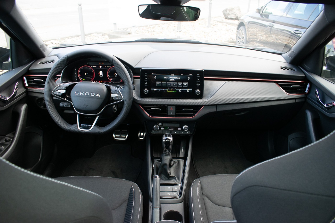 Schadstoffarm nach Abgasnorm Euro 6e, Infotainment-System mit 8.2 Display, Lenkrad mit Freihanderkennung (kapazitives Lenkrad / Hands Off Detection - HOD), Ambiente-Beleuchtung LED in Rot, Infotainment-Paket Basic, Interieur-Design-Paket Monte Carlo, Interieurleisten Schwarz / Rot, Luftausströmer Rot, Schriftzug schwarz, Stossfängerabdeckung vorn und hinten - schwarz glänzend, LM-Felgen 6.5x17 (Kajam AERO - schwarz - glanzgedreht)