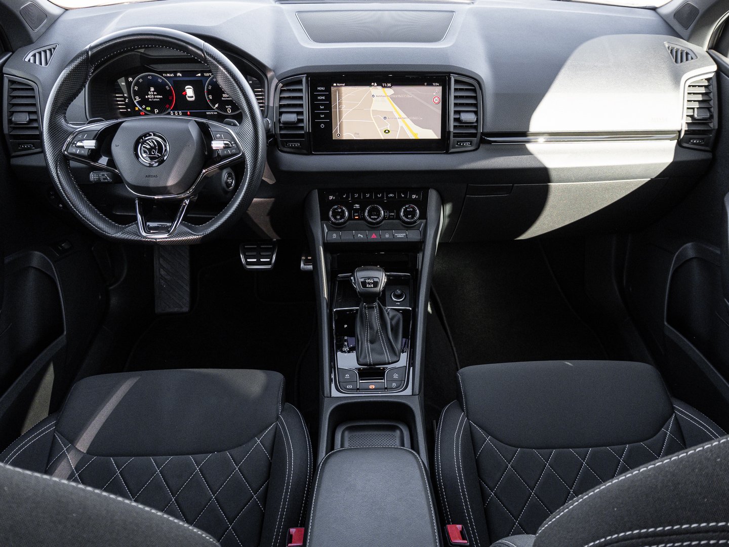 L0L Linkslenker, 3CX Netztrennwand, Q4H Sportsitze vorn, 6E3 Mittelarmlehne vorn, 4GF Wärmeschutzverglasung Frontscheibe, 3NU Rücksitzbank ungeteilt Lehne geteilt umlegbar mit Mittelarmlehne, 4L6 Innenspiegel automatisch abblendbar, 9S0 Digitales Kombiinstrument, EL5 Infotainment Online, 9AK Klimaanlage Climatronic (2-Zonen) mit Allergenfilter & Geruchsfilter, QQ9 LED-Ambientebeleuchtung, 2FU Lederlenkrad im Sportdesign mit Multifunktionstasten und Schaltwippen