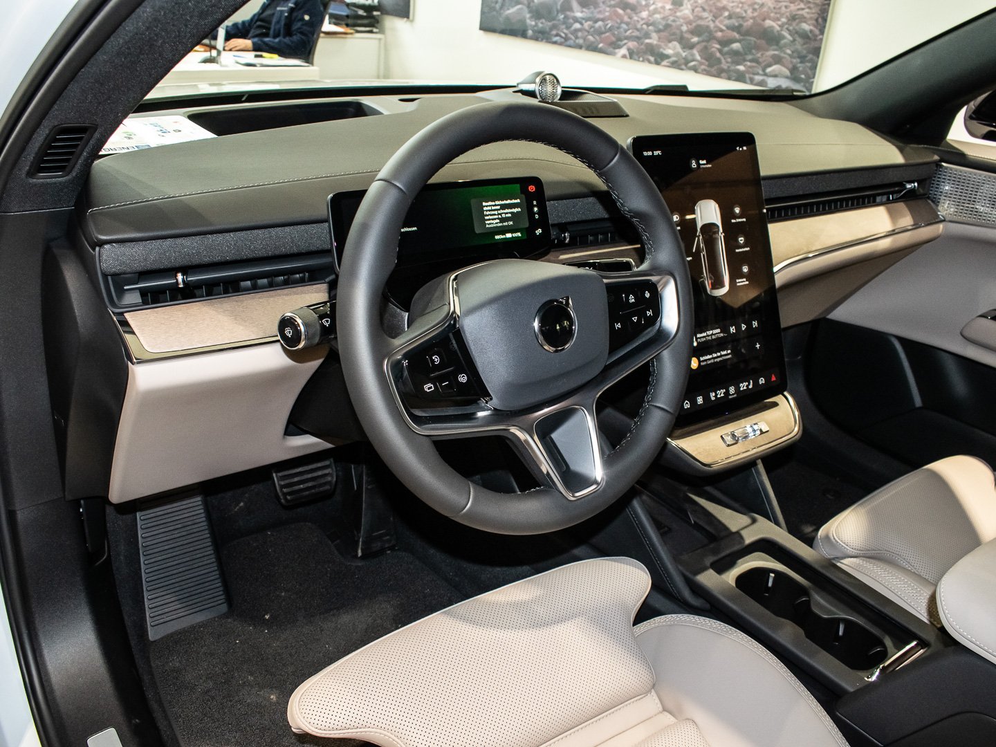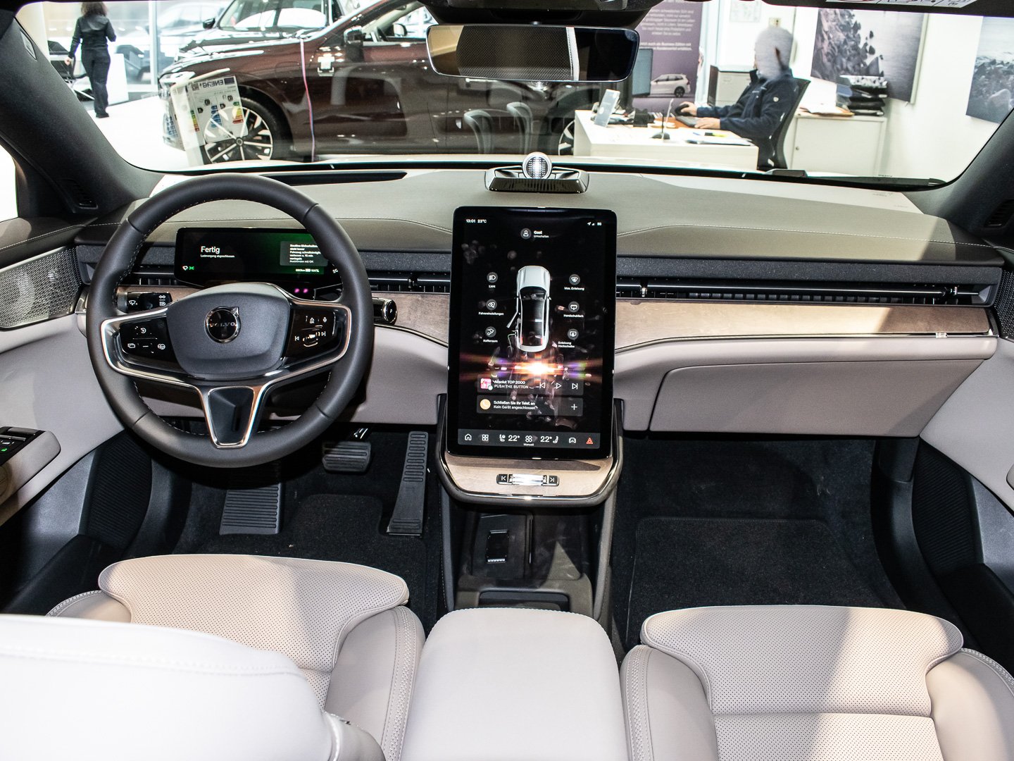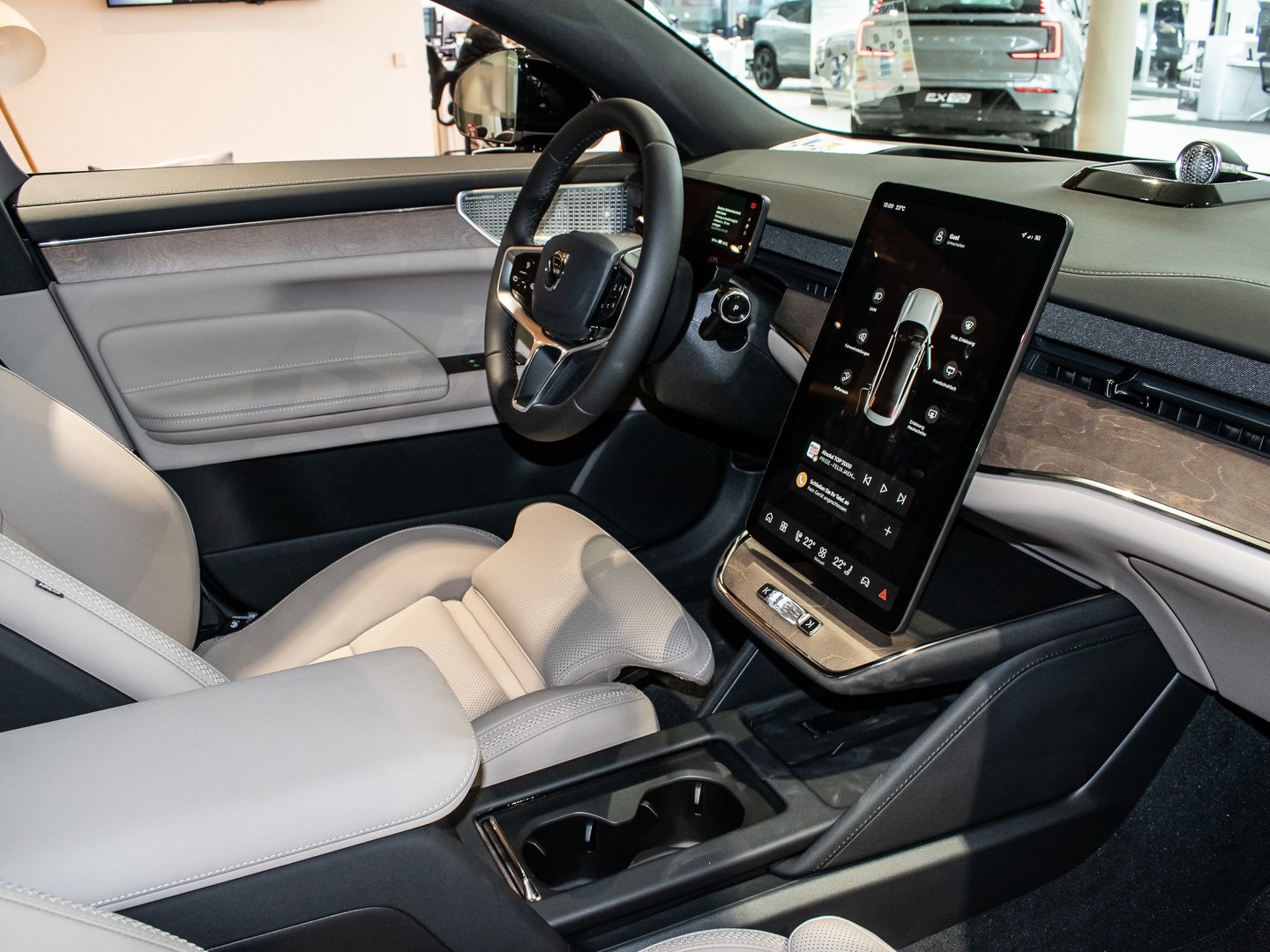 Einparkhilfe vorn und hinten (hinten mit Bremsfunktion), Innenraumfilter: Pollenfilter, Emergency Stop Assist, Google Services, Pilot Assist, Alarmanlage mit Bewegungssensor und Neigungsüberwachung, Android (DAB+), Frontstaufach / Frunk (Kofferraum - vorn), Isofix-Aufnahmen für Kindersitz (Beifahrersitz - Rücksitz), Ladekabel (6.0 m) mit Typ 2-Stecker (Mode 3), One Pedal Drive (elektronisches Gaspedal), Pixel-LED-Scheinwerfer inkl. Fernlichtassistent mit adaptiver Lichtverteilung (ALH), Standheizung elektrisch, Ausstiegswarnung (Safe Exit Assist - SEA), Dekoreinlagen Echtholz Birch, Kollisionswarnsystem Heck (Door Opening Alert), Lenkrad (Sport/Kunstleder) mit Multifunktion, Mediendrehknopf in Kristallglas-Optik, NFC Schlüsselkarte (Keycard), Pilot-Assist-Paket, Safe Space Technology, Sitzbezug / Polsterung: Ledernachbildung Nordico - Anthrazit, Adaptives Fahrwerk an der Hinterachse mit Four-C-Technologie, Digital Key Plus, Digitale Instrumentierung 9-Display 3. Generation, Elektromotor 245 kW (cont. 140 kW), Fahrer-Informations-System (IDIS), HV-Batterie 92 kWh brutto / 88 kWh netto (Lithium-Ionen), LM-Felgen vorn/hinten: 8.5x22 / 9.5x22 (5-Y-Speichen Design - Diamantschnitt / Hochglanz-Schwarz), Mittelarmlehne hinten Komfortausstattung, Panoramadach fest (Glas) dimmbar (Elektrochromatisches Panorama-Glasdach), Volvo Car Connect, Volvo Car Connect Plus