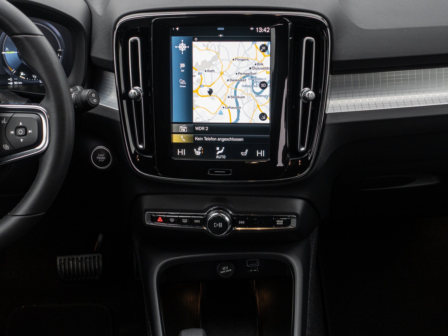 Google Services, Ready to Drive Notification, Luftqualitäts-Überwachungssystem erweitert (Clean Zone Interior Package CZIP), LED-Scheinwerfer Thors Hammer, Reifendruckkontrollsystem (mit reifenindividueller Druckverlustmeldung), Road Sign Information - Verkehrszeichenerkennung, Rücksitze im Verhältnis 40/60 oder komplett umlegbar, 5-Sitzer 12-Volt-Anschluss im Gepäckraum, Außenspiegel elektrisch einklappbar, ISOFIX-Aufnahmen für die äußeren Fondsitze, Klimaautomatik mit 2-Zonen-Temperaturregelung Vorbelüftung und Nachheizen des Innenraums bei abgeschaltetem Motor per Volvo Cars App (optional) oder Menü, Ladekabel SchuKo/Typ 2 (Mode 2) 7 m Länge 1-phasig 10A Ladekabel SchuKo/Typ 2 (Mode 2) 7 m Länge 1-phasig 10A, Induktives Smartphone-Ladesystem, Dachreling aus Aluminium (integriert), Keyless Drive mit sensorgesteuerter Heckklappe Blinkleuchten (LED) in Außenspiegeln integriert, Lane Keeping Aid (LKA) - Aktiver Spurhalteassistent, Belt minder all seats EU logic, First aid kit DIN 13164 Warning Triangle, Lendenwirbelstürze (4-Wege) für Fahrer- und Beifahrersitz, Parkassistenz-Paket[Einparkhilfe vorn und hinten Rückfahrkamera], Winter-Paket[Sitzheizung vorn Lenkradheizung], Automatische Verriegelung der Türen (deaktivierbar) Two step unlocking OFF, Kindersicherung für die hinteren Türen (elektrisch), Geschwindigkeitsbegrenzung (variabel) Innen- und Außenspiegel mit Abblendautomatik, Beifahrersitz höhen- und längenverstellbar, Beinauflage einstellbar manuell für Fahrer- und Beifahrersitz, Einstiegsleisten aus Aluminium mit Recharge Schriftzug vorn, Hochvolt-Kühlmittelheizung (HVCH), Lenkradheizung Kleine Ablage vorn Lenkradheizung, Mech. driver seat with height / lenght and tilt adjustment, Mittelarmlehne hinten mit zwei integrierten Getränkehaltern, Sport-Lenkrad, TRailer Module Preparation, With Exterior Sound Unit + speaker, 2 USB Connectors Front, 5 volt outlet (2 USB) in rear/lower tunnel consol, Automatikgetriebe 7-DCT 2WD, Drive mode settings, Einparkhilfe vorn und hinten Einparkhilfe vorn und hinten, Rückfahrkamera Rückfahrkamera, Seitenfensterzierleiste in Chrom (unten), TRANSMISSION: 2 wheel drive Automatikgetriebe, Volvo Cars App, CHARCOAL/GREY MELANGE/TEXTILE/CITY BLOCK, Hybrid 155 kW (Motor 15 Ltr. - 95 kW), LM-Felgen 75x18 (5-Speichen Diamantschnitt / schwarz)