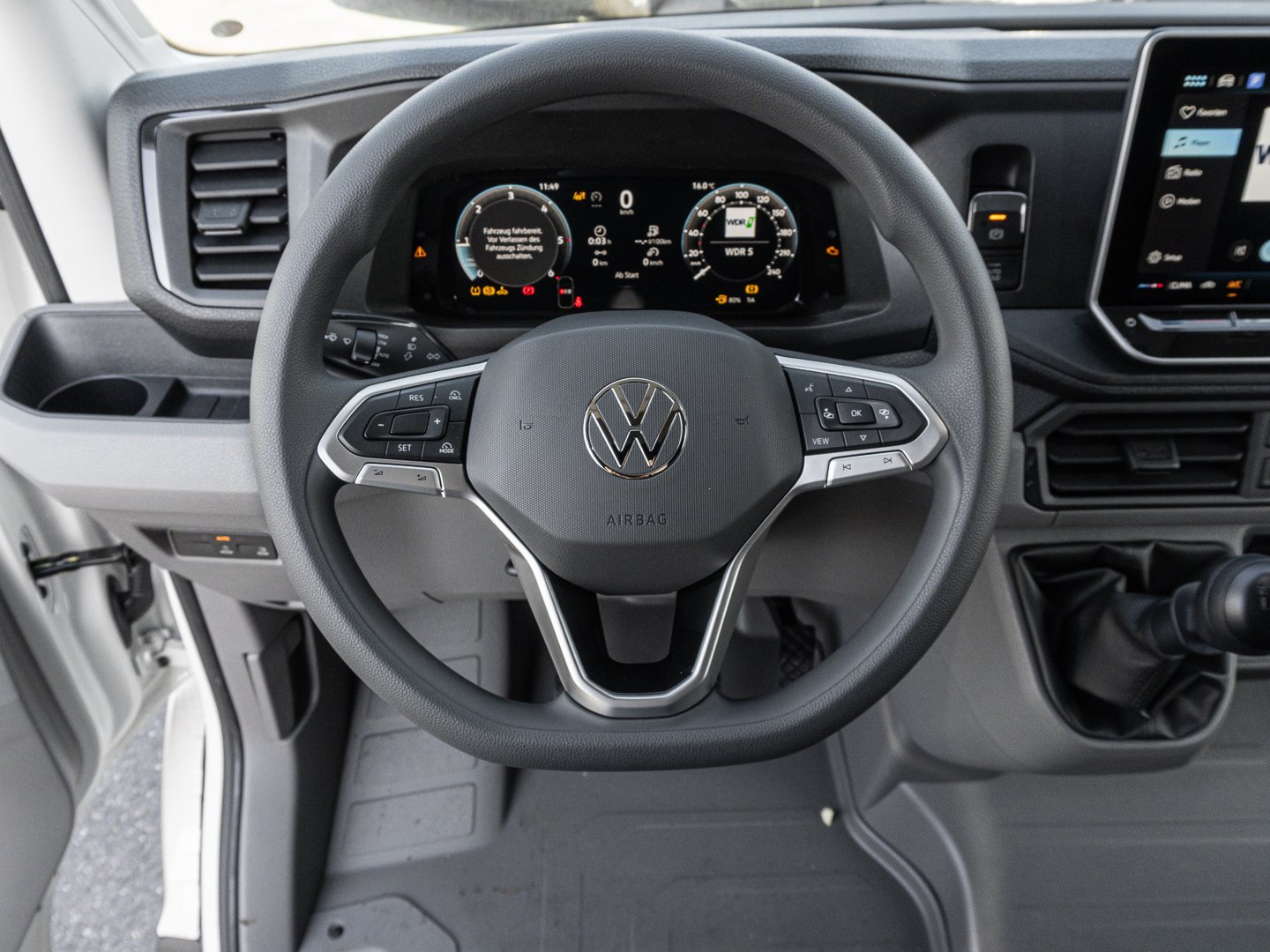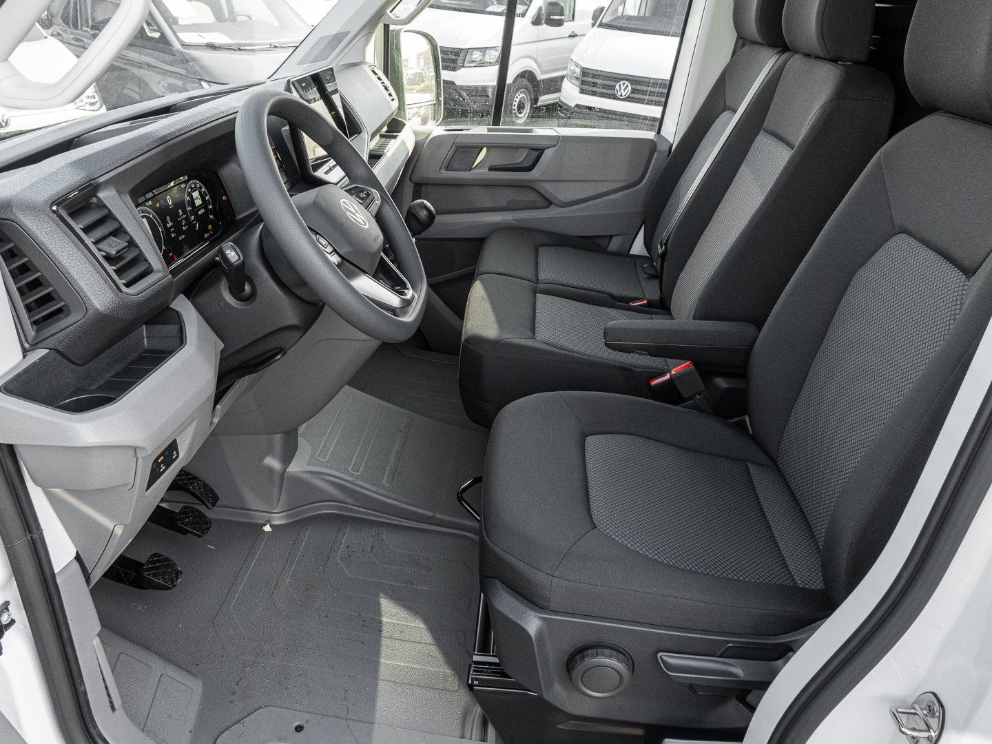 Stoff, U5A Instrumenteneinsatz (km/h) Anzeigen für Geschwindigkeit Gesamt-/Tagesstrecke Drehzahl Kraftstoffvorrat und Uhrzeit, L0L Linkslenker, 4GF Verbundglas-Frontscheibe in Wärmeschutzverglasung, 2FB Multifunktionslenkrad, 7J2 Digital Cockpit Pro, 3SJ Beifahrerdoppelsitzbank rechts mit Ablagefach, KH6 Klimaanlage mit manueller Regelung im Fahrerhaus, 3CF Trennwand, QL7 Seitenscheiben vorn und hinten und Heckscheibe in Wärmeschutzglas (sofern vorhanden), 6L6 C-Schienen an den Seitenwänden im Laderaum