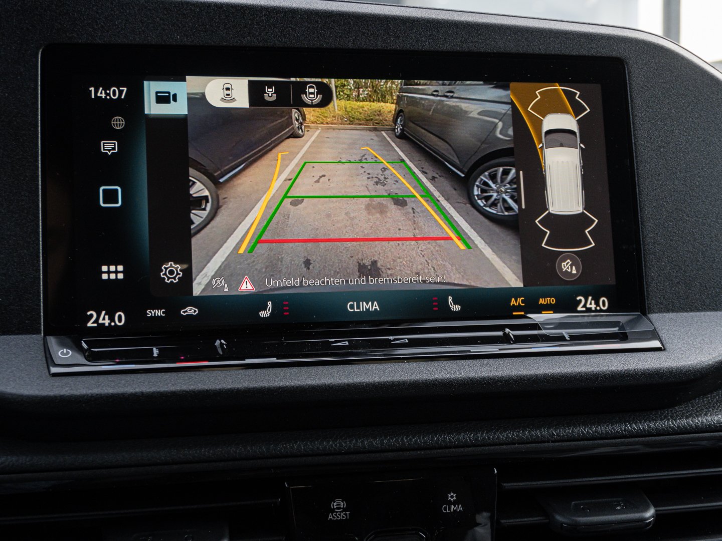 Klimaautomatik, 7X2 Einparkhilfe im Front- und Heckbereich, KA2 Rückfahrkamera Rear View, 7K1 Reifenkontrollanzeige (nach EU Typprüfung), 8J3 Notbremsassistent Front Assist mit Fußgänger- und Radfahrererkennung, 8X7 Waschwasserstand-Anzeige mit vergrößertem Waschwasserbehälter, QR9 Verkehrszeichenerkennung, 8T3 Automatische Distanzregelung, 8G1 Fernlichtregulierung Light Assist, 9I5 Fahrlichtschaltung automatisch mit Tagfahrlicht sowie Begrüßungs- und Verabschiedungslicht