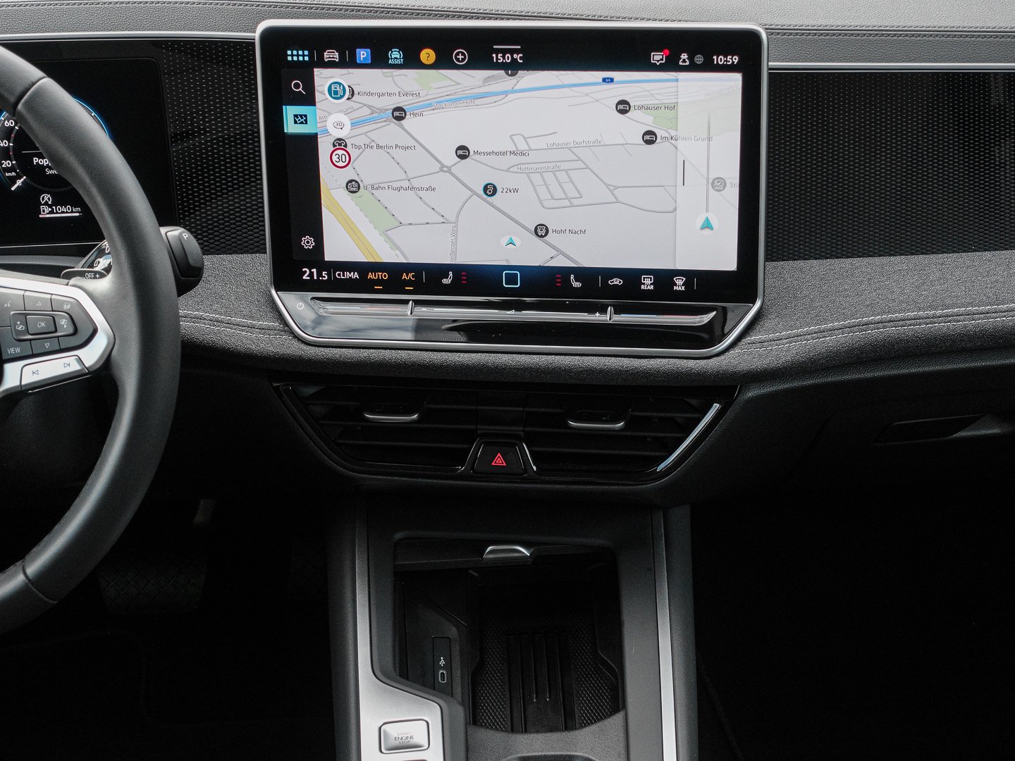 7UY Navigationssystem, QH3 Sprachassistent IDA und elektronische Sprachverstärkung, 9WJ App-Connect Wireless für Apple CarPlay und Android Auto, QV3 Digitaler Radioempfang DAB+, U9E 2 USB-C-Schnittstellen vorn 2 USB-C-Ladebuchsen an der Mittelkonsole hinten Ladeleistung bis zu 45 W, 9ZQ Telefonschnittstelle Comfort mit induktiver Ladefunktion, 8DG Infotainment-System mit 32.7 -cm-Display (12.9 Zoll), YOS Vorbereitet für VW Connect und VW Connect Plus, RBN Infotainment-Paket Discover