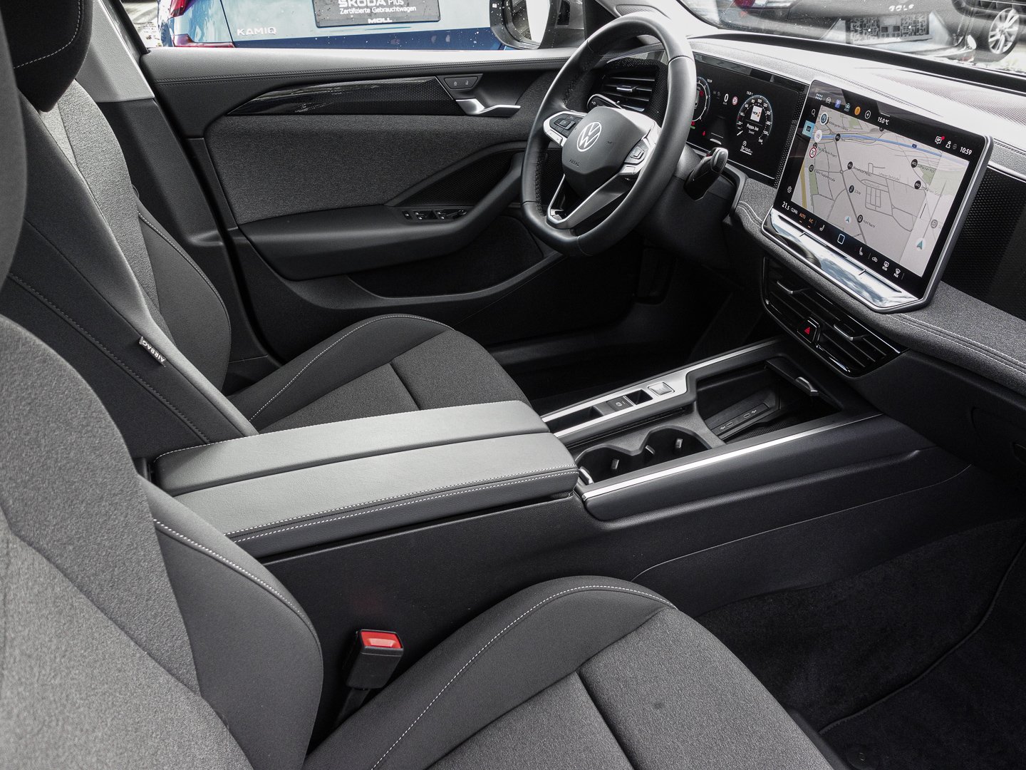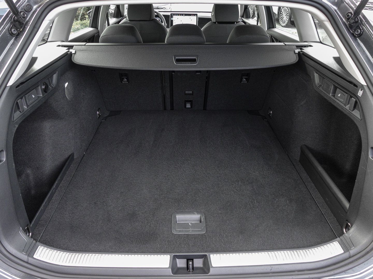 L0L Linkslenker, 7J2 Digital Cockpit Pro mehrfarbig verschiedene Info-Profile wählbar, 2FT Multifunktionslenkrad in Leder beheizbar mit Schaltwippen, 3CX Netztrennwand, 3GM Gepäckraumboden in 2 Höhen einstellbar für ebene Ladefläche, 4A3 Vordersitze beheizbar Sitzfläche und -lehne getrennt einstellbar, 4GF Frontscheibe in Verbundsicherheitsglas wärmedämmend, 4KC Wärmeschutzverglasung grün seitlich und hinten, 8IY LED-Scheinwerfer, N4C Sitzmittelbahnen der Vordersitze und der äußeren Rücksitzplätze in Stoff Passat