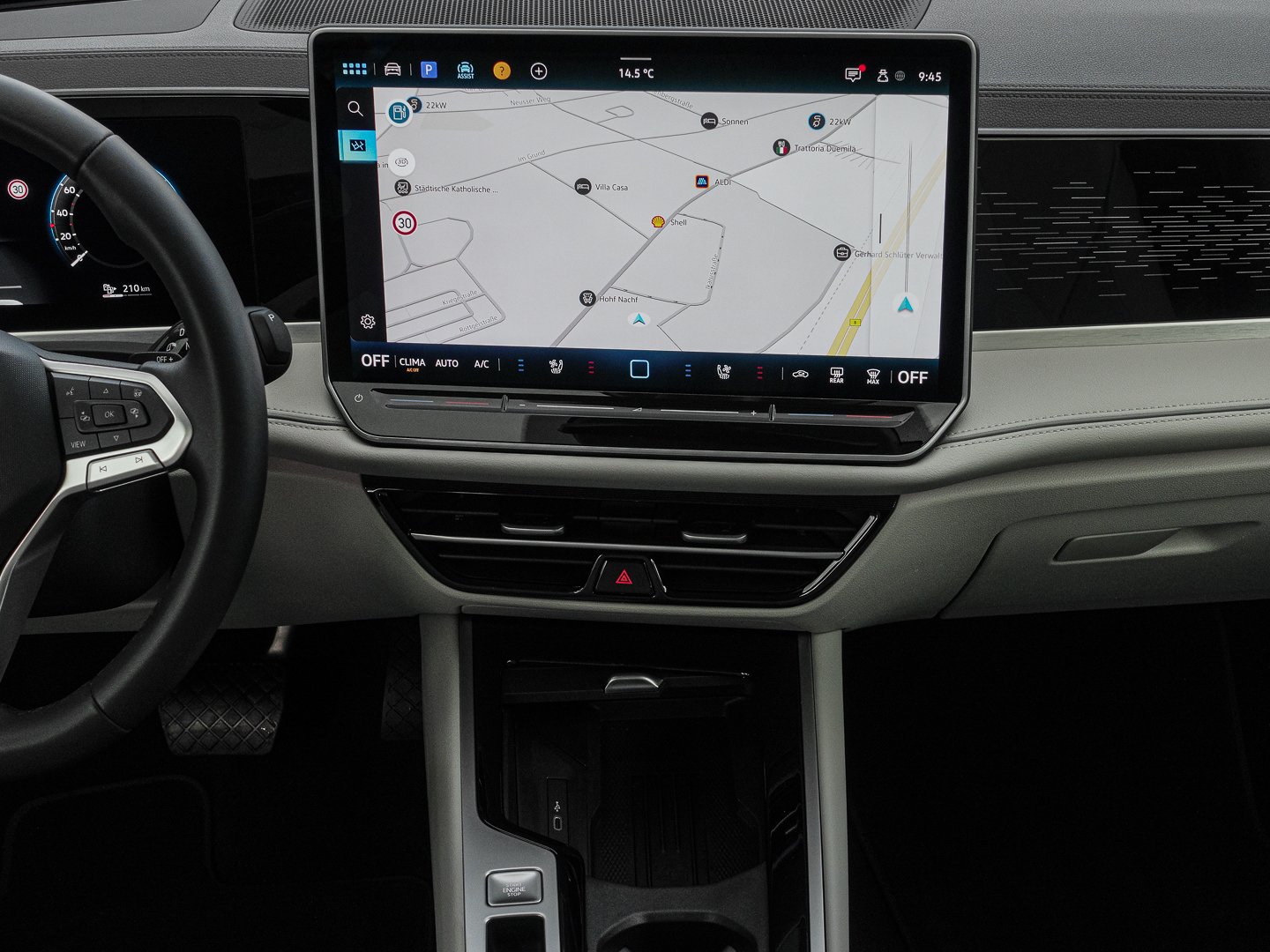 Klimaautomatik, QR9 Verkehrszeichenerkennung, KA2 Rückfahrkamera Rear View, 8T3 Automatische Distanzregelung ACC stop & go, 79H Spurwechselassistent Side Assist Ausparkassistent und Ausstiegswarnung, 8G5 Dynamischer Fernlichtassistent Dynamic Light Assist, 8Q5 Leuchtweitenregulierung dynamisch mit dynamischem Kurvenfahrlicht, UH2 Elektronische Parkbremse inkl. Auto-Hold-Funktion, 7K1 Reifenkontrollanzeige, 8J5 Notbremsassistent Front Assist mit Fußgänger- und Radfahrererkennung, FT4 Memory-Funktion für Parkassistent, LT2 Geschwindigkeitsbegrenzer mit vorausschauender Regelung, 6I2 Spurhalteassistent Lane Assist und Stauassistent, 9I5 Fahrlichtschaltung automatisch mit LED-Tagfahrlicht sowie Begrüßungs- und Verabschiedungslicht