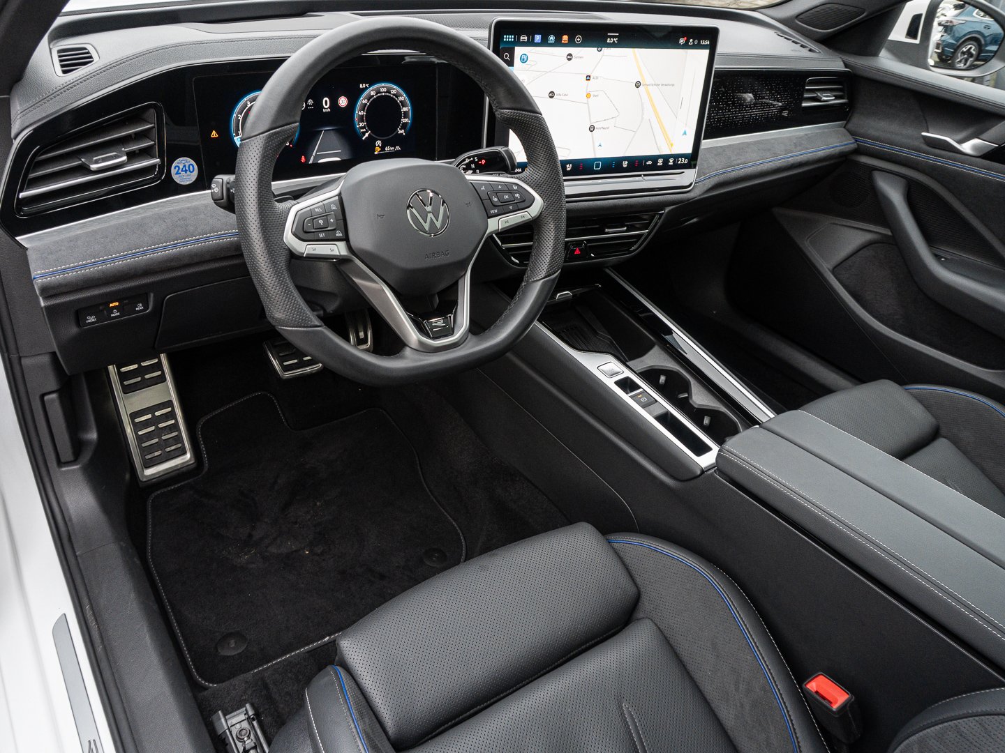 L0L Linkslenker, 4D5 Vordersitze mit Massageprogrammen und aktiver Klimatisierung, 7J2 Digital Cockpit Pro mehrfarbig verschiedene Info-Profile wählbar, 3CX Netztrennwand, 3U7 Gepäckraumabdeckung auszieh- und herausnehmbar mit elektrischer Öffnung, 4A3 Vordersitze beheizbar Sitzfläche und -lehne getrennt einstellbar, 4L6 Innenspiegel automatisch abblendend, 6D8 Mittelarmlehne hinten verschiebbar mit Becherhaltern und Ablagemöglichkeit für Handy/Tablet, 8I6 Lendenwirbelstützen vorn pneumatisch einstellbar, 4GF Frontscheibe in Verbundsicherheitsglas wärmedämmend, A9I R-Line Ausstattung, Q4P Sportsitze vorn, 2PT Multifunktions-Sportlenkrad in Leder beheizbar mit Schaltwippen, QQ9 Ambientebeleuchtung, 3GN Gepäckraumboden in 2 Höhen einstellbar für ebene Ladefläche mit Fixierstange, 2JX Stoßfänger im R-Line -Styling