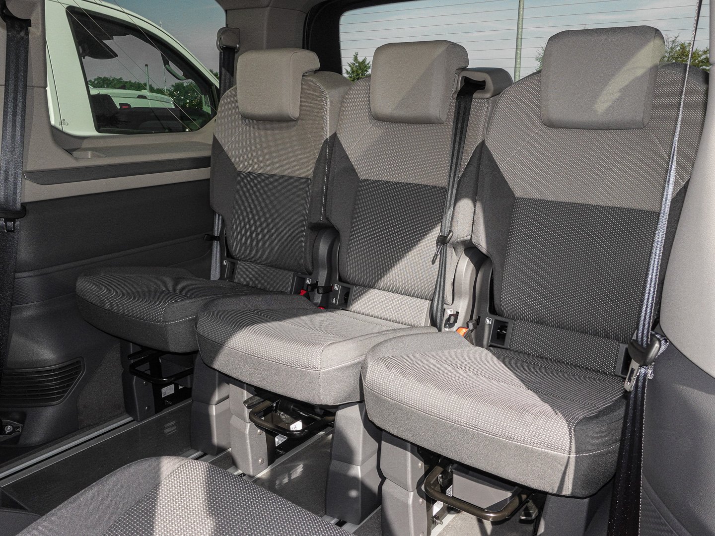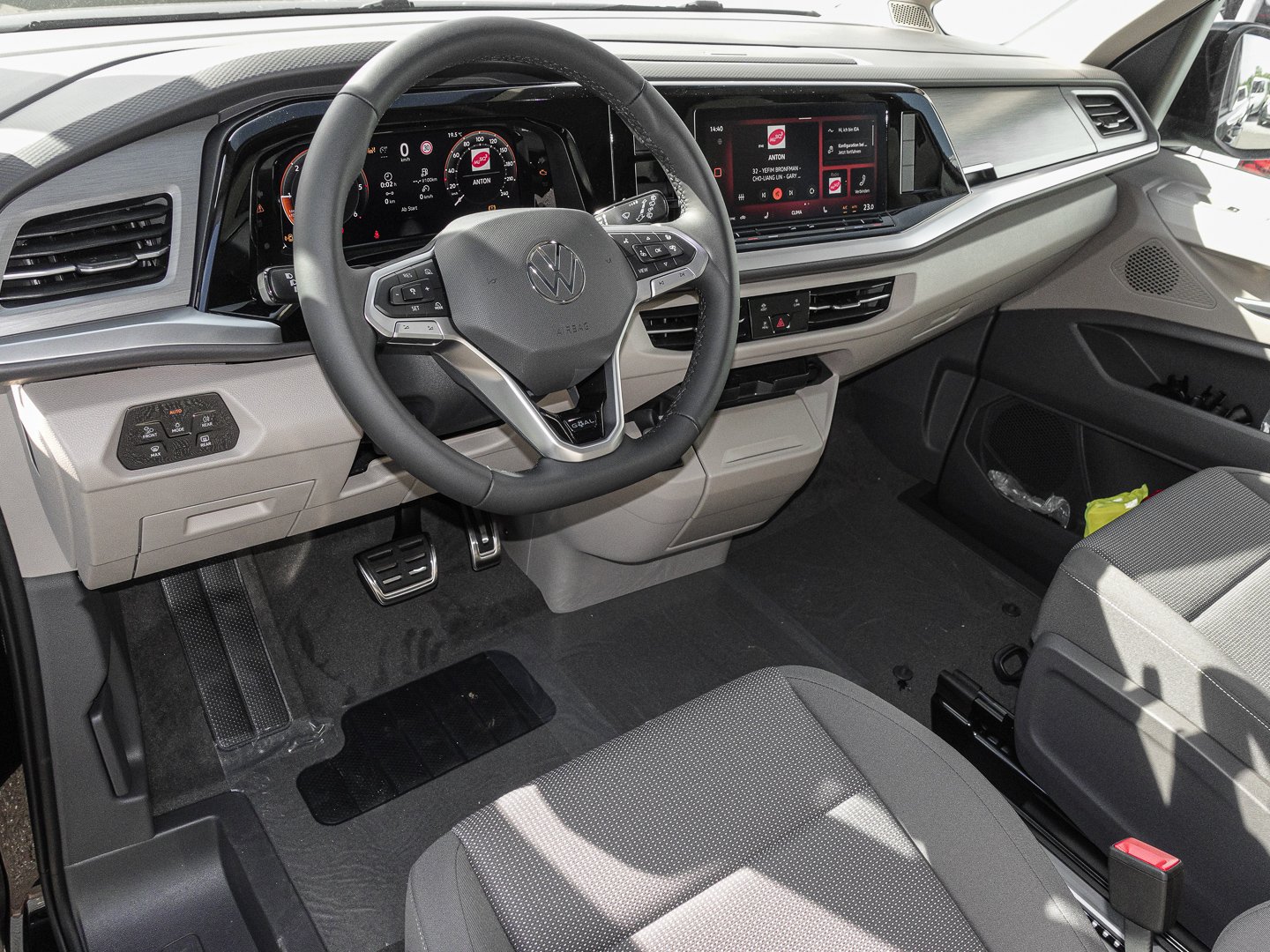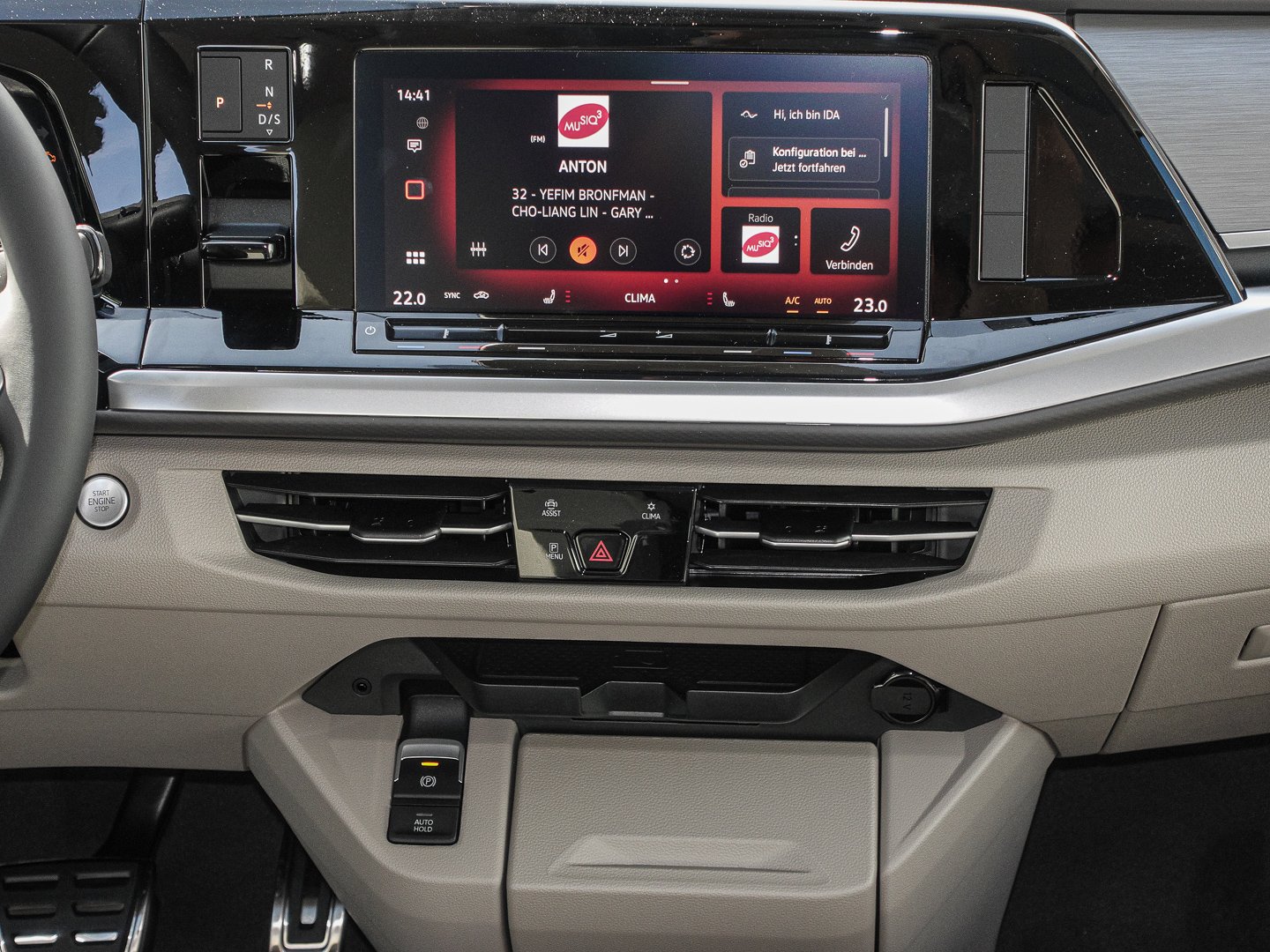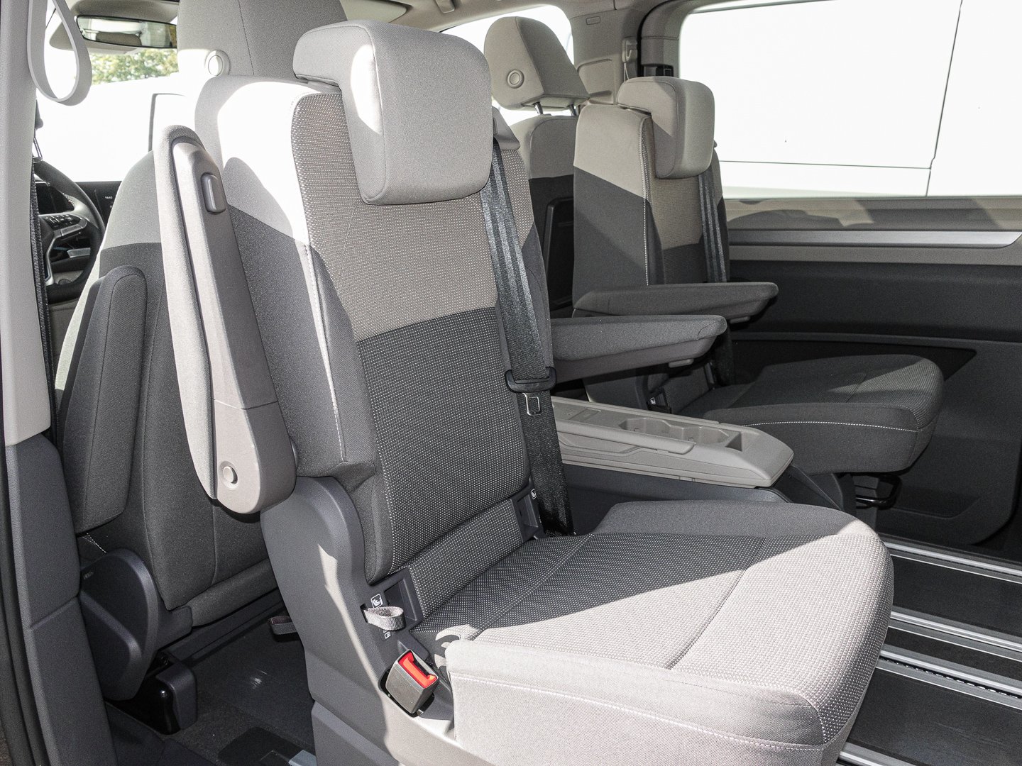 EL5 Vorbereitet für Online Dienste, EM2 Ablenkungs- und Müdigkeitserkennung, NI1 Mit UNECE CS&SU, QH3 Sprachassistent IDA und elektronische Sprachverstärkung, 1M6 Anhängevorrichtung anklappbar mit elektrischer Entriegelung (einschließlich Gespannstabilisierung), 3QH Dreip.Automatikgurte vorn mit Gurtund Endbeschlagstraffer und Höheneinstellung, 3U4 Laderaumunterteilung (Belastbarkeit 20 kg) mit Taschenhaken zwei Gepäcknetzen und Klappbox, 4C6 2 Einzelsitze entgegen der Fahrtrichtung (Vis-a-Vis-Ansicht) in der 2. Sitzreihe, 4S1 Armlehnen für Fahrer- und Beifahrersitz beidseitig mit elektrischer Lendenwirbelstütze und Klapptisch, 8DF Optionsinfotainment (MIB3 MP) Ausf.1, 9TJ Umfeldbeleuchtung im Türbereich mit Logoprojektion der Modell Silhouette (bei Edition: mit Edition Schriftzug), DN4 EU6 4-Zylinder-Turbodiesel 2.0 l R4 110 kw (150 PS) TDI (EA288), E0S GOAL, F89 4 Leichtmetallräder Dundrod 6.5 J x 17 in Schwarz Oberfläche glanzgedreht, J2D Batterie 380 A (68 Ah), LT2 Geschwindigkeitsbegrenzer und Intelligent Speed Assist, 8VH LED-Rückleuchten abgedunkelt, NZ2 Notrufsystem eCall Voraussetzung: Verfügbarkeit benötigter Mobilfunknetze, 9AH 3-Zonen Klimaanlage Air Care Climatronic mit zusätzlichem Bedienteil im Fahrgastraum (nicht beim Beach), 7UX Radio Ready 2 Discover mit 25.4 cm (10) Touch-Farbdisplay inklusive Streaming & Internet, ZBR 7 Sitzer-Paket = 2-2-3 Vis-a-Vis mit 4 Armlehnen beidseitig an 2.SR, ZEB Heckklape elektrisch (öffnend/schließend), JX1 Mit Kreuzungsassistent, 5P1 Personenerkennung nur Anzeige, P2G Parkpaket Advanced, QQ3 Ambientebeleuchtung 30-farbig inklusive Fußraumbeleuchtung für die 2. Sitzreihe (nicht bei California mit Drehsitzen), Z3H Sondermodell Goal, Z4G Umfeldbeleuchtung an der Heckklappe und Ambientebeleuchtung 30-farbig inklusive Fußraumbeleuchtung für die 2. Sitzreihe