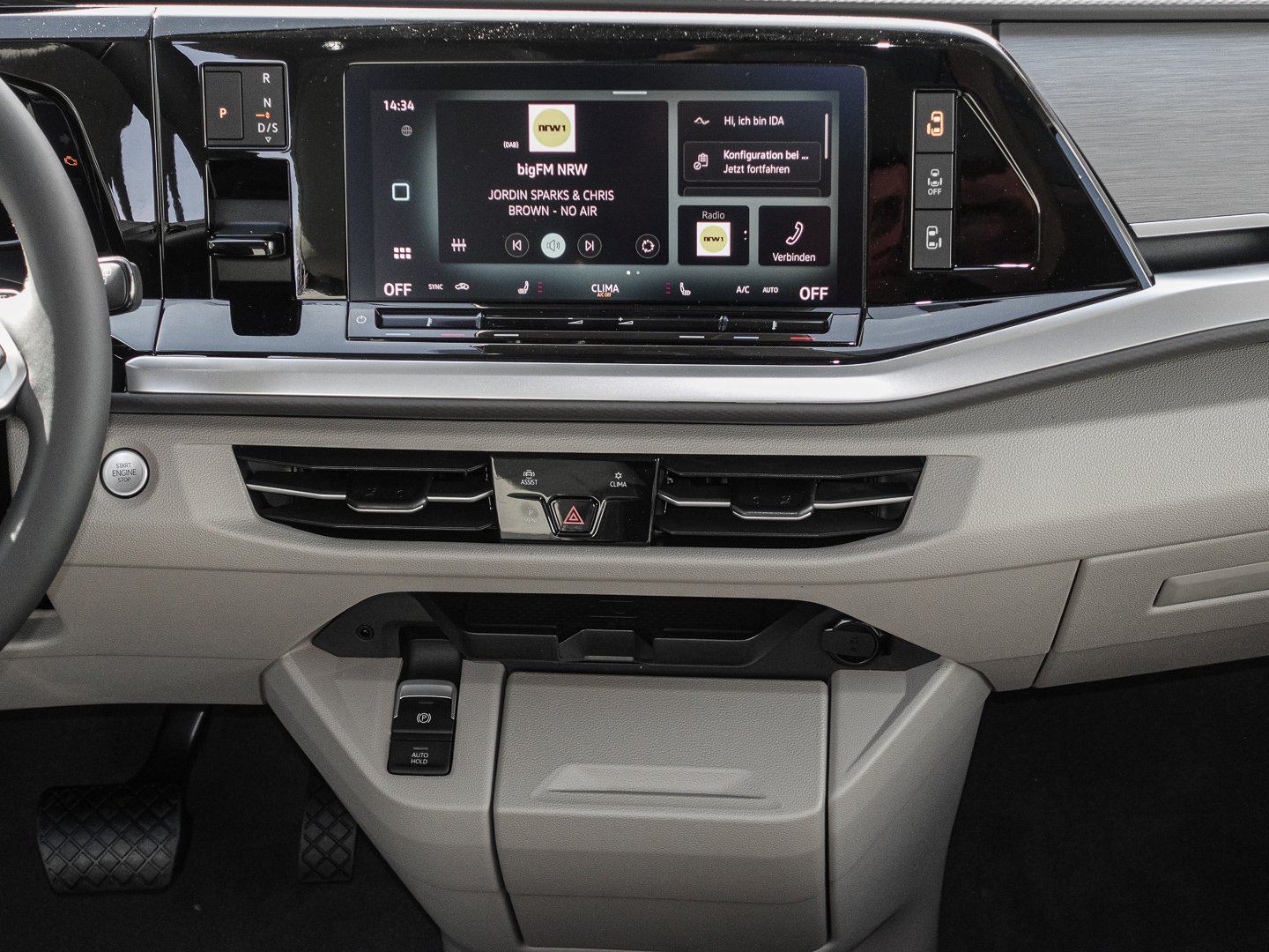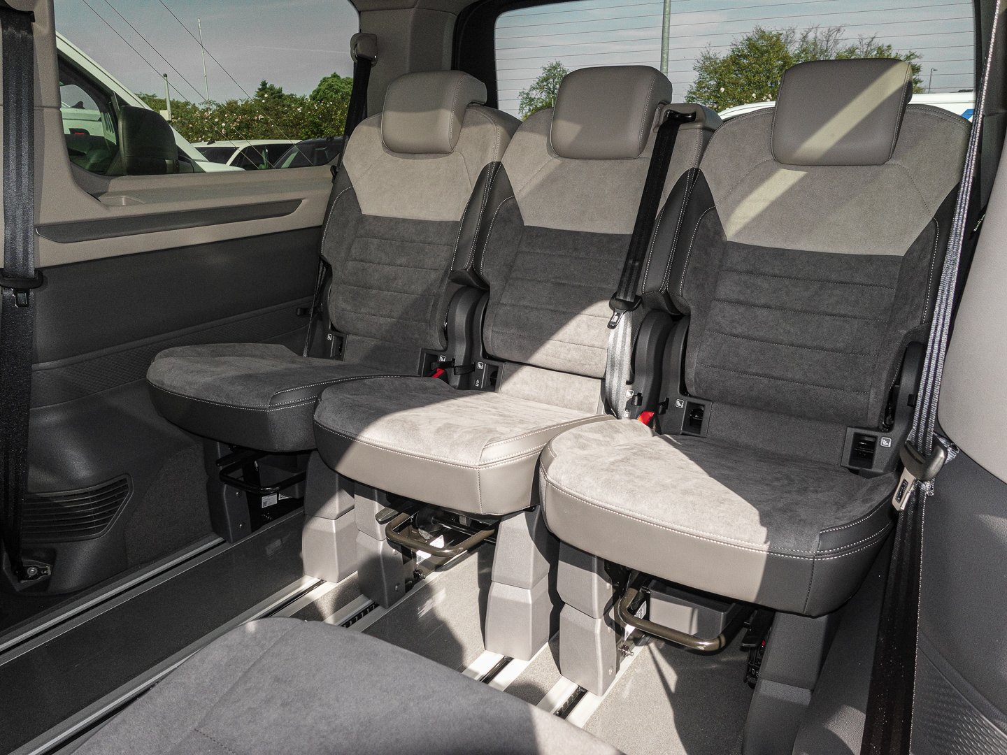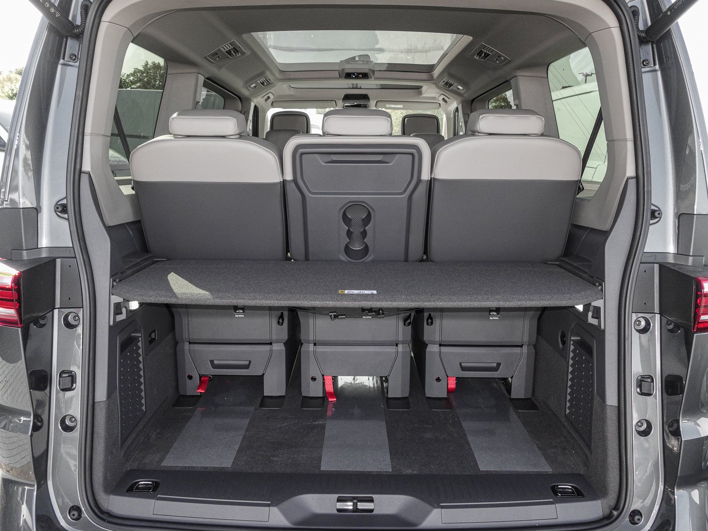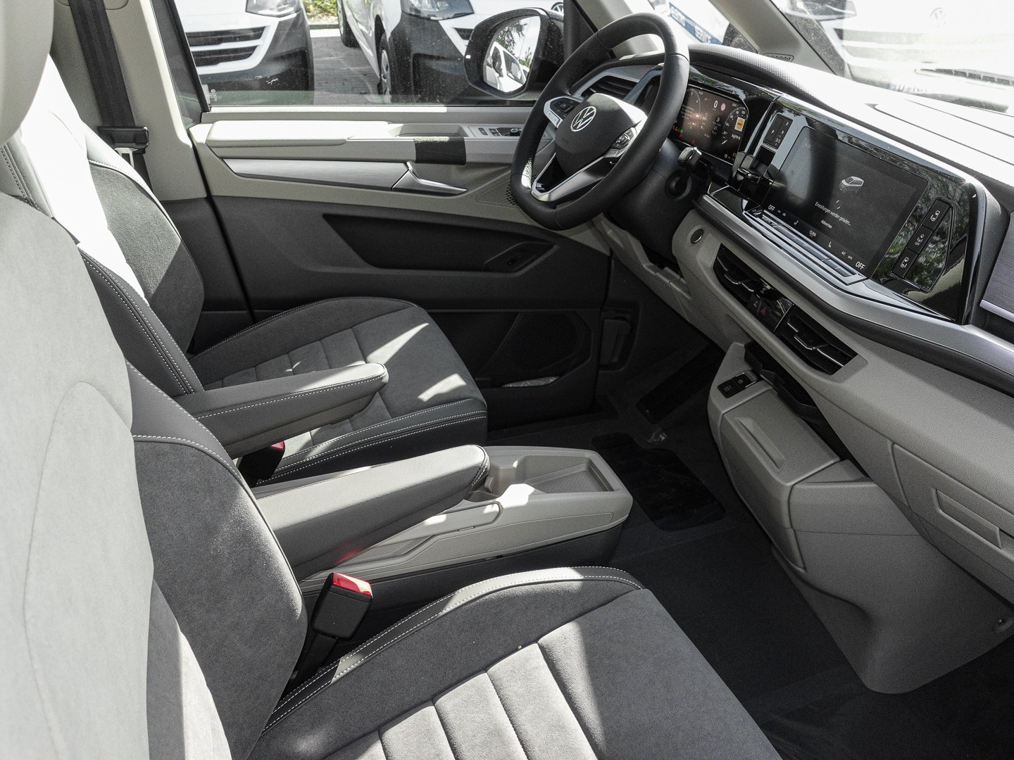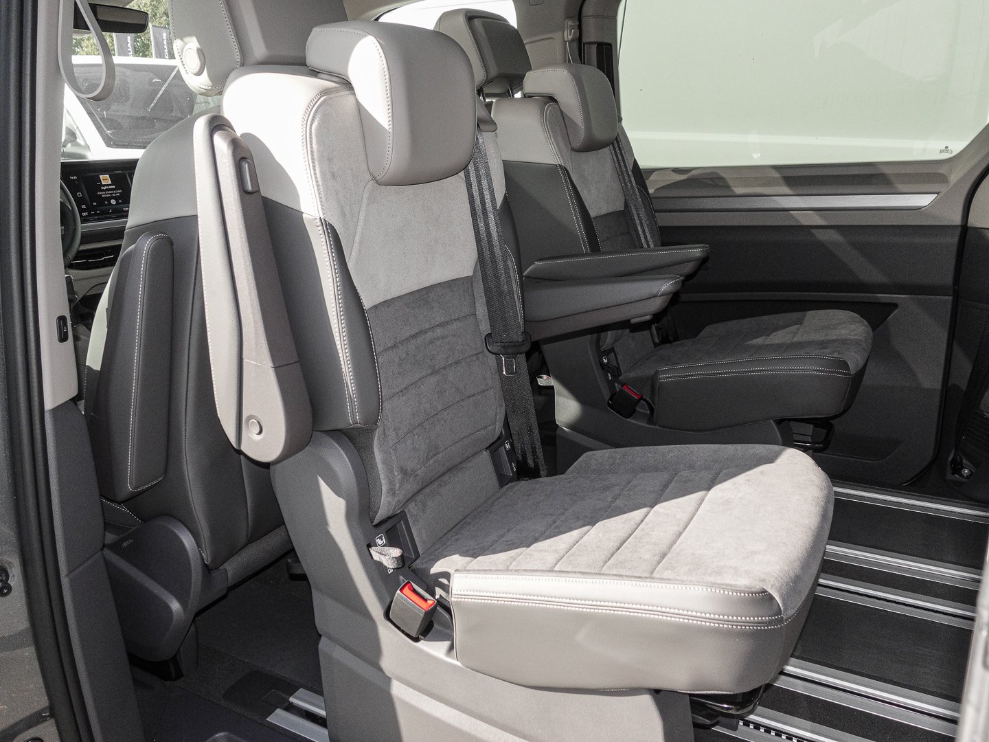 EL5 Vorbereitet für Online Dienste, EM2 Ablenkungs- und Müdigkeitserkennung, NI1 Mit UNECE CS&SU, QH3 Sprachassistent IDA und elektronische Sprachverstärkung, 00B Überhang hinten lang, 1M6 Anhängevorrichtung anklappbar mit elektrischer Entriegelung (einschließlich Gespannstabilisierung), 3QH Dreip.Automatikgurte vorn mit Gurtund Endbeschlagstraffer und Höheneinstellung, 3U4 Laderaumunterteilung (Belastbarkeit 20 kg) mit Taschenhaken zwei Gepäcknetzen und Klappbox, 4C6 2 Einzelsitze entgegen der Fahrtrichtung (Vis-a-Vis-Ansicht) in der 2. Sitzreihe, 4S1 Armlehnen für Fahrer- und Beifahrersitz beidseitig mit elektrischer Lendenwirbelstütze und Klapptisch, 8DF Optionsinfotainment (MIB3 MP) Ausf.1, J2D Batterie 380 A (68 Ah), LT2 Geschwindigkeitsbegrenzer und Intelligent Speed Assist, 5Q8 Schiebetür links elektrisch mit easy open- und easy close Funktion, 5R8 Schiebetür rechts elektrisch mit easy open- und easy close Funktion, N2S Bi-Color Sitzbezüge Sitzmittelbahnen in Mikrovlies ArtVelours Sitzwangen in Glattlederoptik, NZ2 Notrufsystem eCall Voraussetzung: Verfügbarkeit benötigter Mobilfunknetze, J16 Reifen 235/50 R 18 101H xl rollwiderstandsoptimiert, 9AH 3-Zonen Klimaanlage Air Care Climatronic mit zusätzlichem Bedienteil im Fahrgastraum (nicht beim Beach), DN4 EU6 4-Zylinder-Turbodiesel 2.0 l R4 110 kw (150 PS) TDI, 7UX Radio Ready 2 Discover mit 25.4 cm (10) Touch-Farbdisplay inklusive Streaming & Internet, ZBR 7 Sitzer-Paket = 2-2-3 Vis-a-Vis mit 4 Armlehnen beidseitig an 2.SR, JX1 Mit Kreuzungsassistent, 5P1 Personenerkennung nur Anzeige, P2G Parkpaket Advanced, PT3 Easy Open Paket Basic