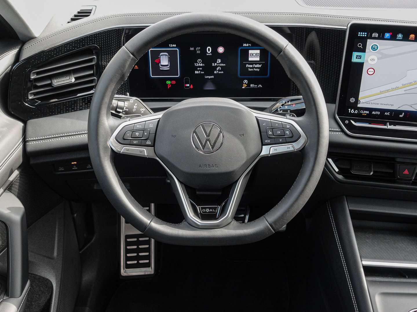 9WJ App-Connect Wireless für Apple CarPlay und Android Auto, EM2 Ablenkungs- und Müdigkeitserkennung, KH7 Klimaanlage Air Care Climatronic mit Aktiv-Kombifilter Bedienelementen hinten und 3-Zonen-Temperaturregelung, LT2 Geschwindigkeitsbegrenzer mit vorausschauender Regelung, 8A2 Parkassistent Park Assist Plus inkl. Einparkhilfe, NI1 Mit UNECE CS&SU, NZ4 Notruf-Service Laufzeit 10 Jahre ab Erstauslieferung Voraussetzung: Verfügbarkeit benötigter Mobilfunknetze, 1M9 Anhängevorrichtung anklappbar mit elektrischer Entriegelung inkl. Anhängerrangierassistent Trailer Assist, 4A3 Vordersitze beheizbar Sitzfläche und -lehne getrennt einstellbar, E0S GOAL, 3D2 Mittelkonsole gepolstert, 6XT Außenspiegel elektrisch einstell- anklapp- und beheizbar auf Fahrerseite abblendend Memory-Funktion, 9ZQ Telefonschnittstelle Comfort mit induktiver Ladefunktion für 2 Smartphones Ladeleistung bis zu 15 W, QJ3 Spiegeleinstell- und Fensterheberschalter mit Applikationen in Chrom-Optik, VW5 Verbundsicherheitsglas geräuschdämmend für Türscheiben Heck- und Seitenscheiben hinten abgedunkelt, U9E 2 USB-C-Schnittstellen vorn 2 USB-C-Ladebuchsen an der Mittelkonsolehinten Ladeleistung bis zu 45 W, 6C4 Kopf- und Seitenairbags vorn und hinten, 8DG Infotainment-System mit 32.7 -cm-Display (12.9 Zoll), YOS Vorbereitet für VW Connect und VW Connect Plus, PAB Anhängevorrichtung inkl. Anhängerrangierassistent Trailer Assist, 8VJ 3D-LED-Rückleuchten, 3GG Gepäckraumboden in 2 Höhen einstellbar für ebene Ladefläche, 45N 4 Leichtmetallräder Napoli 7.5 J x 18 in Schwarz Oberfläche glanzgedreht, H8X Ganzjahresreifen 235/55 R 18, PJN Napoli 7.5 J x 18 in Schwarz / glanzgedreht Reifen 235/55 R 18, QQ8 Ambientebeleuchtung 10-farbig in der Instrumententafel sowie in den Türen, RBF Infotainment-Paket Discover, 5KR Rücksitzbank längs verschiebbar -lehne asymmetrisch geteilt umklappbar Neigungeinstellbar mit Durchlademöglichkeit