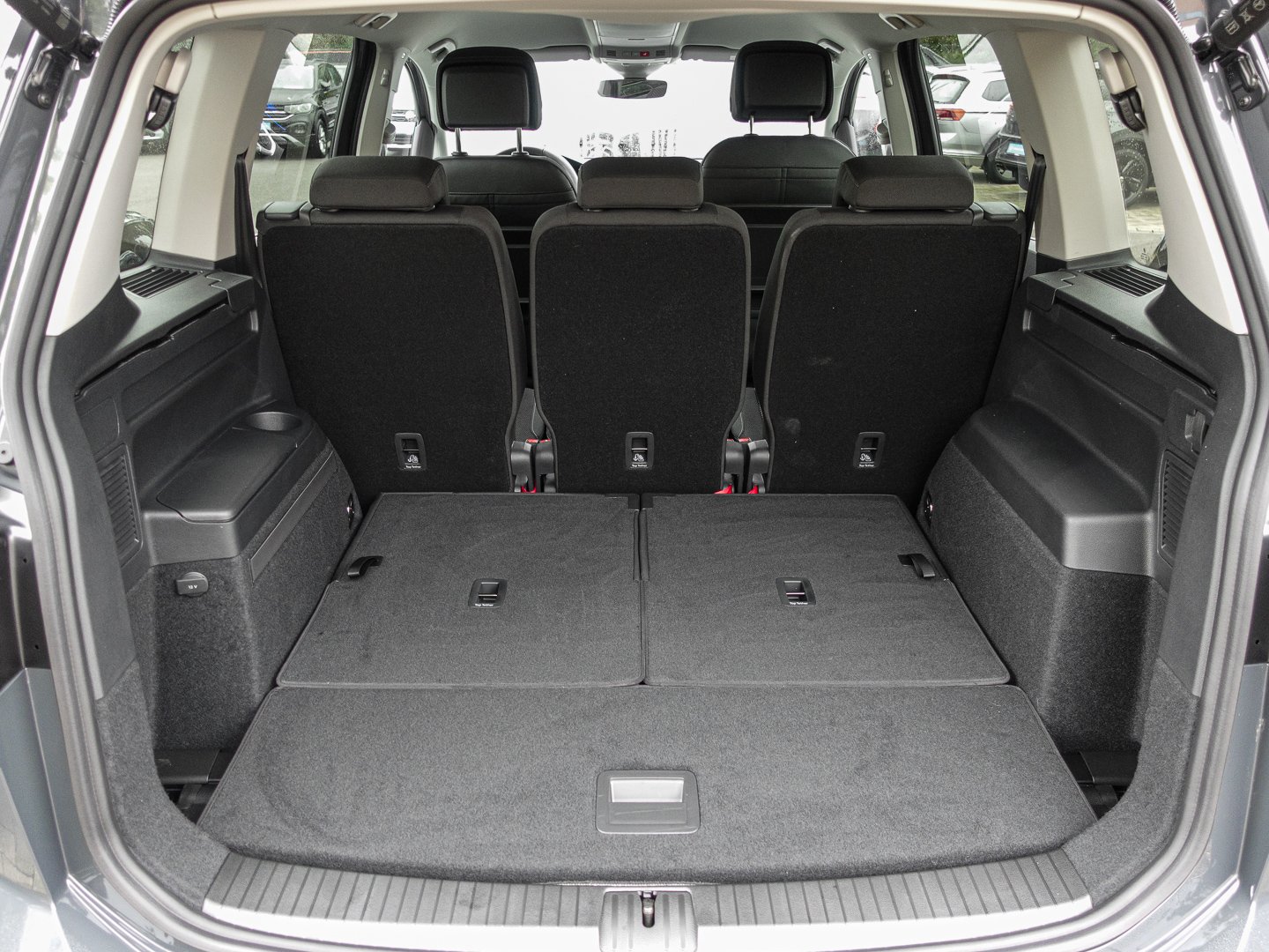 L0L Linkslenker, 4L6 Innenspiegel automatisch abblendend, 7P4 Lendenwirbelstützen vorn, 7J1 Digital Cockpit mehrfarbig verschiedene Info-Profile wählbar, 2FD Multifunktionslenkrad in Leder, 5MJ Dekoreinlagen New Brushed Design für Instrumententafel und Türverkleidungen vorn, 6E3 Mittelarmlehne vorn höhen- und längseinstellbar mit herausnehmbarer Ablagebox 2 Ausströmer hinten, 3H2 Beifahrersitzlehne komplett umklappbar mit Tisch- und Durchladefunktion, PGA 2 Einzelsitze in der 3.Sitzreihe im Gepäckraumboden versenkbar