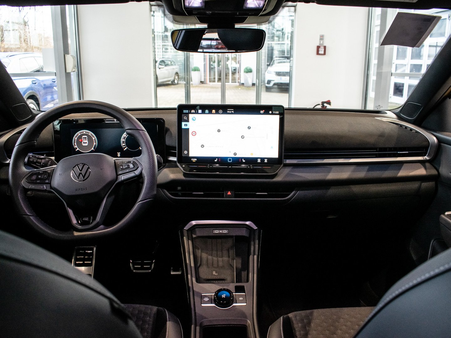 Kunstleder, L0L Linkslenker, Q4H Sport-Komfortsitze vorn, 4L6 Innenspiegel automatisch abblendend, 8I6 Lendenwirbelstützen vorn pneumatisch einstellbar, 3GN Gepäckraumboden in 2 Höhen einstellbar für ebene Ladefläche, 2PT Multifunktions-Sportlenkrad in Leder beheizbar mit Schaltwippen, 6E3 Mittelarmlehne vorn, QQ9 Ambientebeleuchtung 30-farbig, 7J2 Digital Cockpit Promehrfarbig, KH7 Klimaanlage Air Care Climatronic mit Aktiv-Kombifilter, wärmedämmend, 3NT Rücksitzbank ungeteilt, Insert in Kunstleder, 2JX Stoßfänger im R-Line -Styling